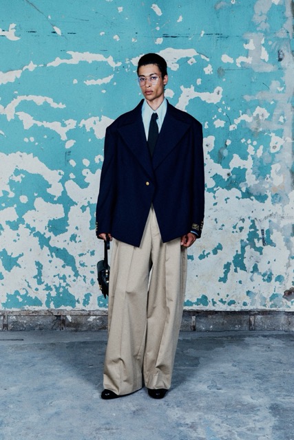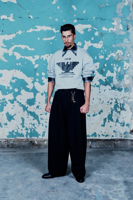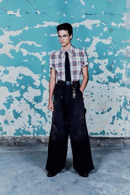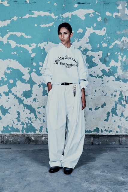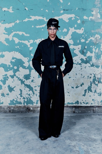 Willy Chavarria’s “América,” is a powerful exploration of identity and heritage. The collection is divided into three parts: Fine Fashions, Willy Produce, and Community Center, each reflecting Chavarria’s unique vision. Key elements include workwear-inspired pieces, with exaggerated silhouettes and functional details such as dangling keys, a nod to the American working class.