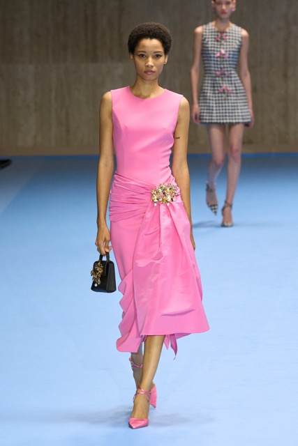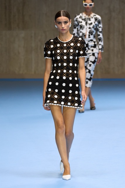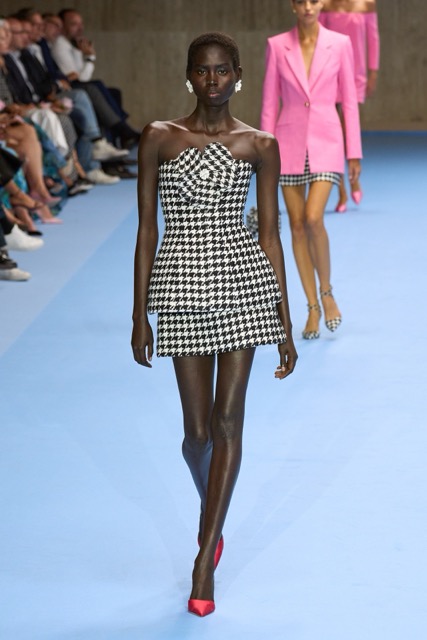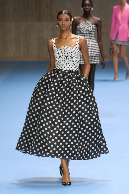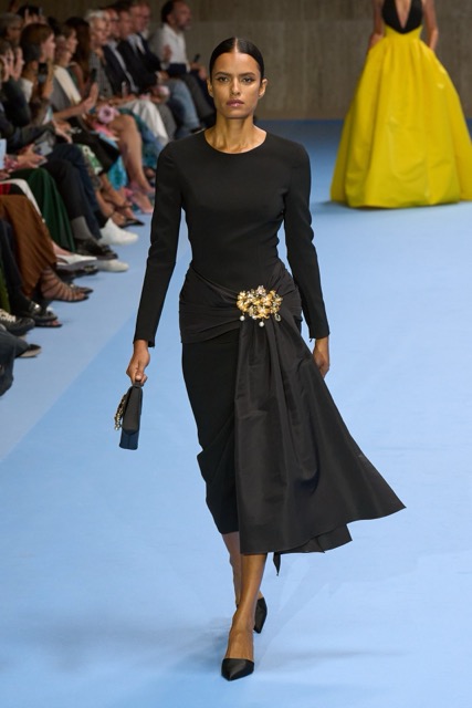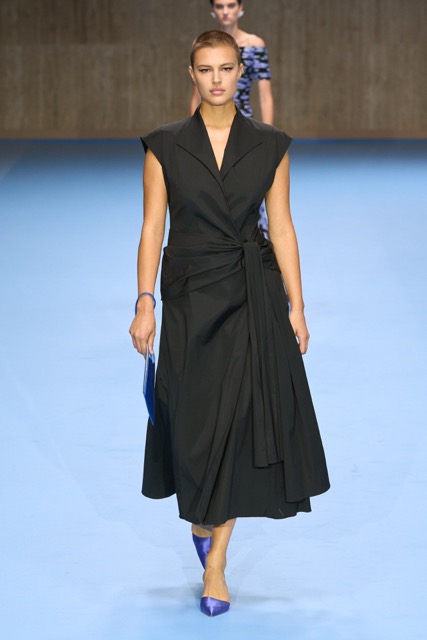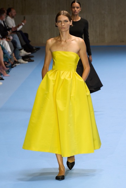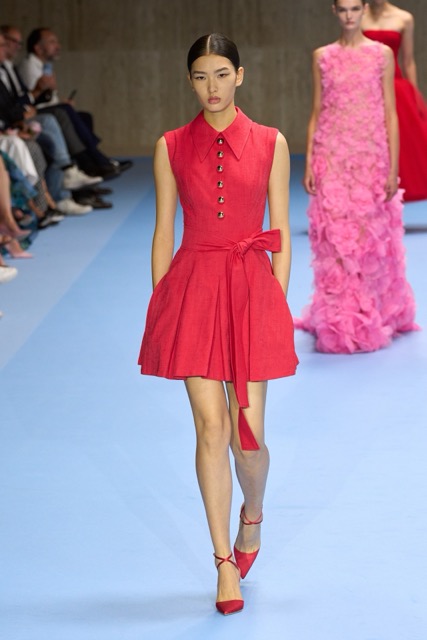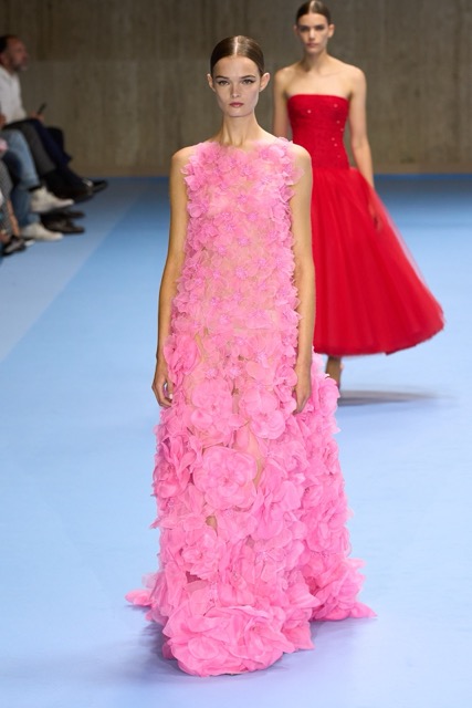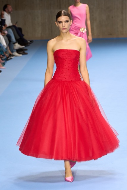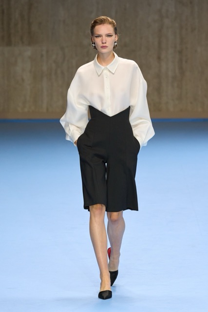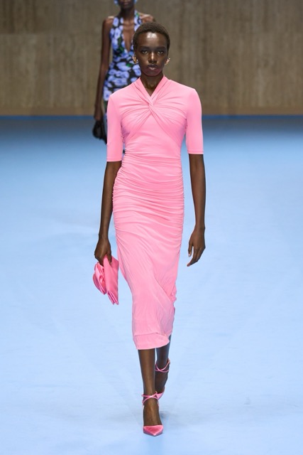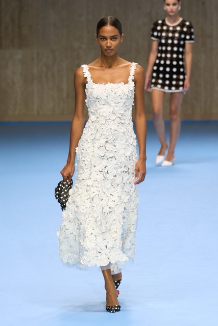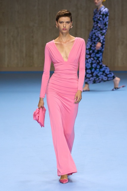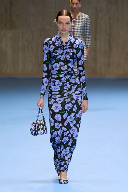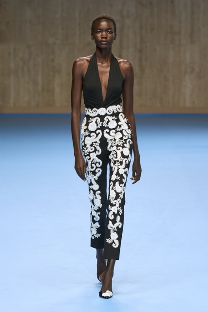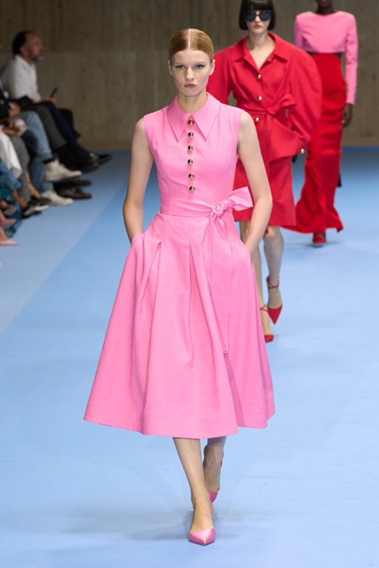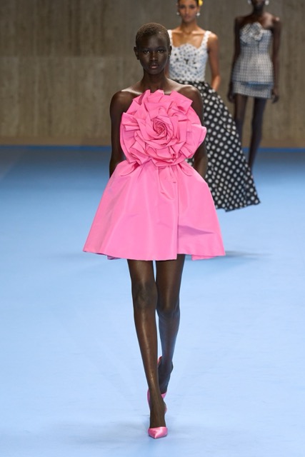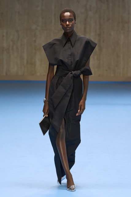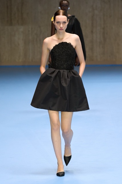 The Collina Strada show, titled “Touch Grass,” offered a refreshing blend of playful theatrics and presented a more subdued take on the brand’s usual whimsical aesthetic. Designer Hillary Taymour cited the overwhelming news cycle and global events as inspiration for a collection that offered a sense of peace and grounding through fashion.Held in the Marble Cemetery in the East Village, the atmosphere was a perfect balance of whimsy and serenity. Models moved down the runway with graceful, earthy gestures, adorned in ruffled, airy pieces and intricate shell tops, blending femininity with a modern edge. The prints ranged from vibrant, saturated hues to sun-bleached tones, capturing a sense of natural wear and weathering. The show’s soundtrack added a playful touch, with a bossa nova remix of Ashlee Simpson’s “Pieces of Me” reimagined to sing about vegetables. Hillary Taymour’s collection felt like a gentle commentary on the chaotic energy of the world, encouraging reconnection with nature. The event’s charm, coupled with its toned-down maximalism, created a creative escape.