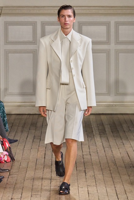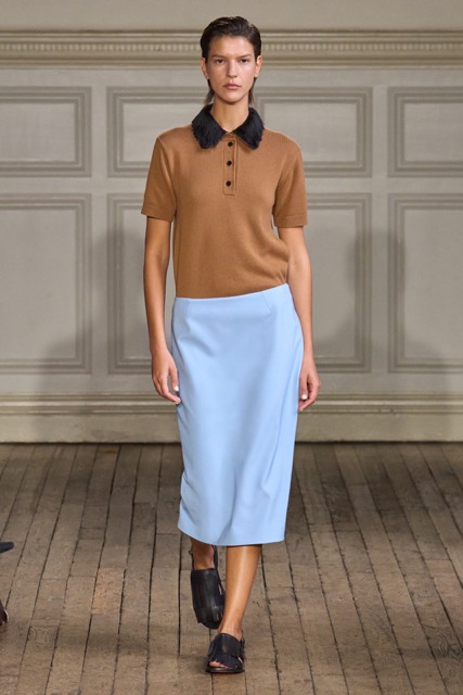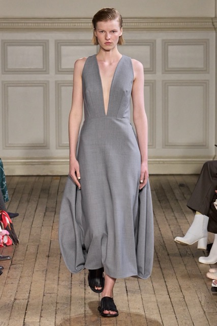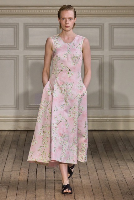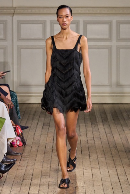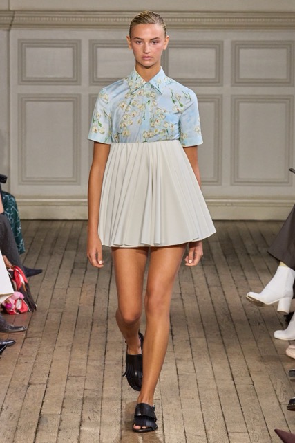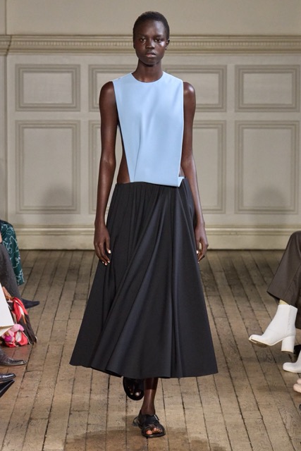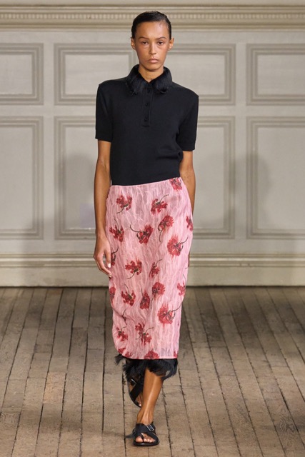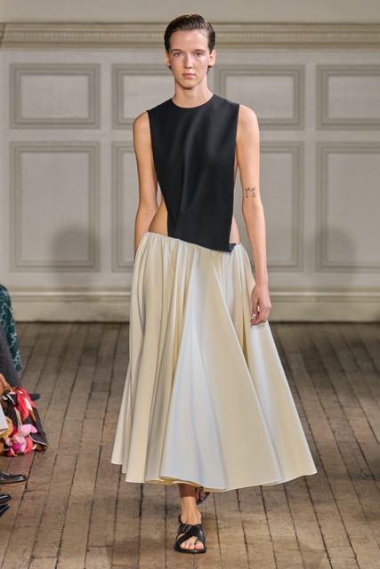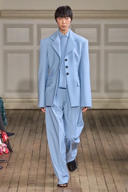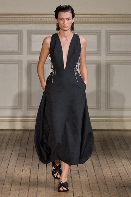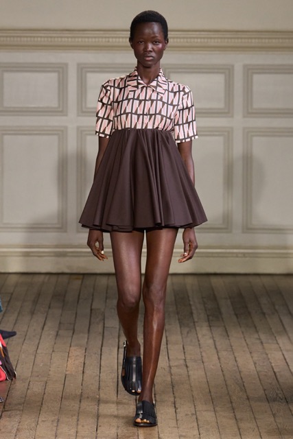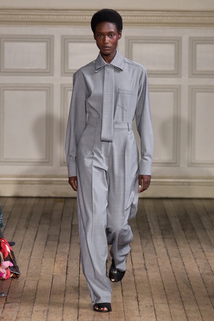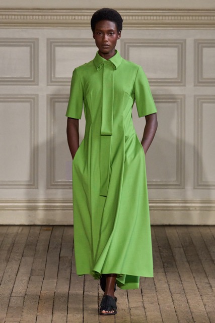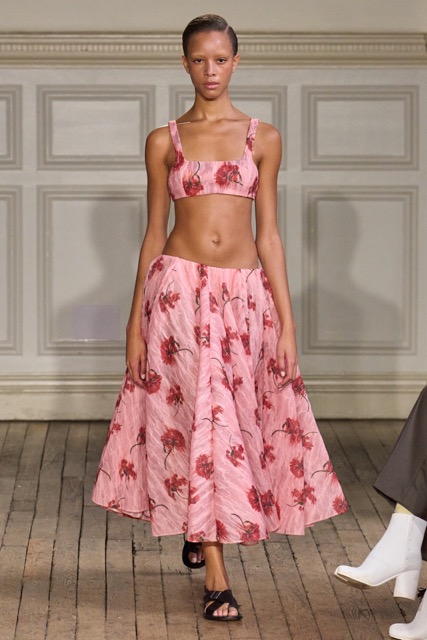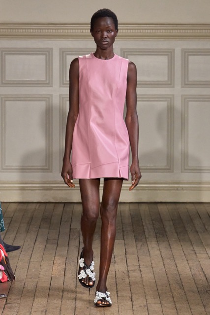 Emilia Wickstead’s Spring Summer 2025 collection draws inspiration from the work of German-born French photographer Gisèle Freund, exploring the complex relationship between a photographer and her subjects. Freund, renowned for capturing intellectual icons like Simone de Beauvoir and Virginia Woolf, brought depth to her subjects through her unique lens.Drawing inspiration from Freund’s portraits of intellectual women, Wickstead presents a collection that is both sophisticated and empowering. The designs, characterized by their clean lines, luxurious fabrics, and subtle nods to menswear, evoke a sense of strength and independence. The color palette, featuring soft pastels and vibrant hues, adds a playful and feminine touch. Wickstead captures the duality of her muses—their strength in the public eye and their vulnerability in private. The collection balances a sense of power and grace, with details like pockets adding a practical yet symbolic element to the designs. While the collection maintains Wickstead’s signature aesthetic, there is a noticeable evolution in her design language.