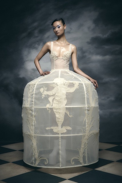 For this collection, Reed scoured various second-hand markets, from Etsy to eBay, to find fabrics such as Art Nouveau lace, 19th-century silk damask, and vintage striped satin curtain panels. These reclaimed textiles are transformed into bold, dramatic pieces that celebrate both history and creativity. The designer’s inspiration for this collection stemmed from his love of storytelling and his personal experience decorating his new London home. Reed’s maximalist approach to interior design is reflected in the bold and dramatic silhouettes of his creations. From fishtail bias-cut skirts to white silk organza mini-dresses, each piece is a showcase of intricate craftsmanship and repurposed materials. Reed’s decision to use vintage fabrics not only adds a layer of history and authenticity to his designs but also aligns with the growing emphasis on sustainability. While the collection’s dramatic aesthetic may not be for everyone, it is undeniable that Reed’s energy shines through in each piece.