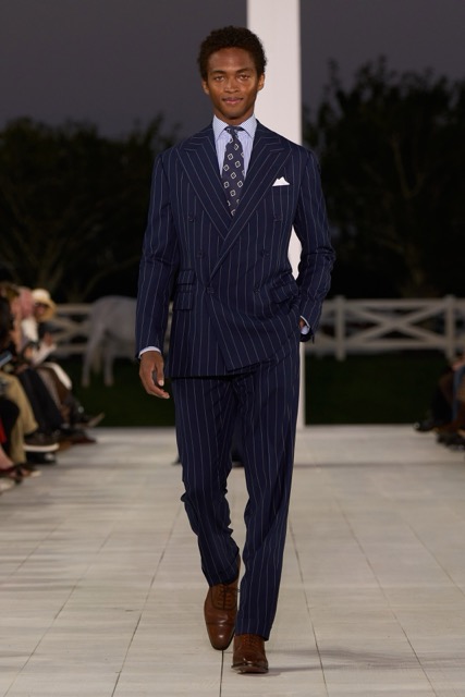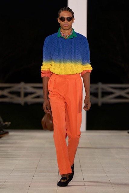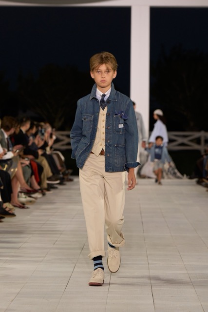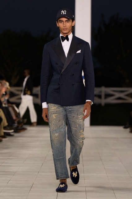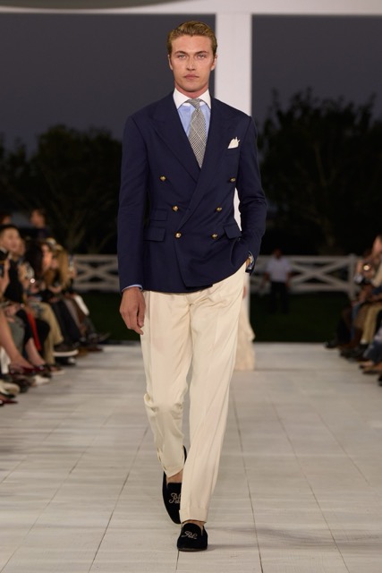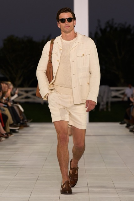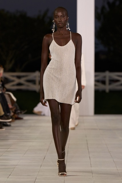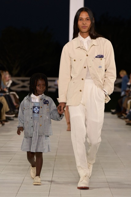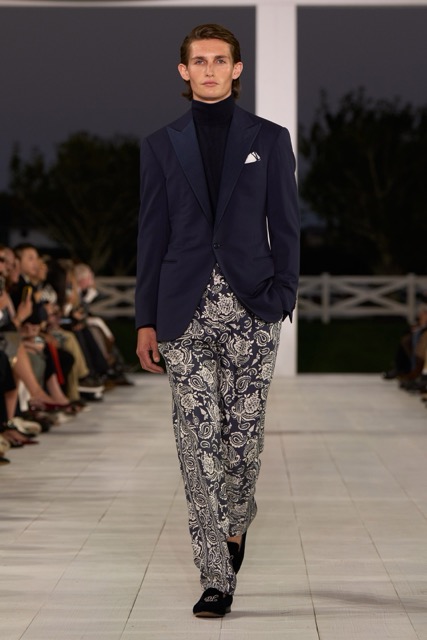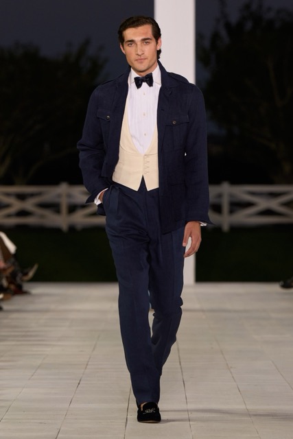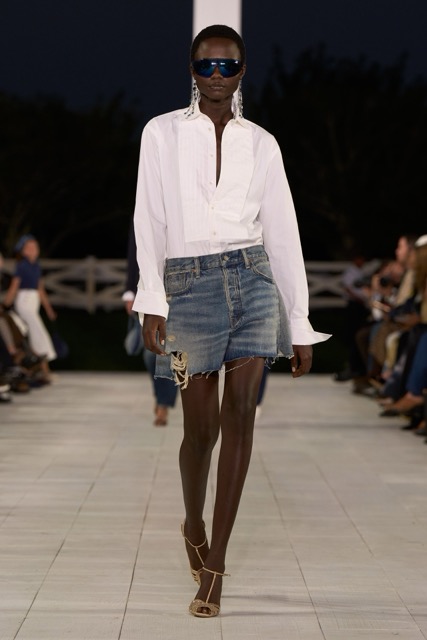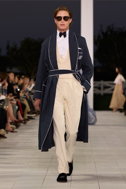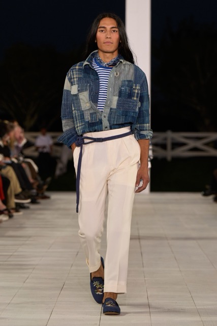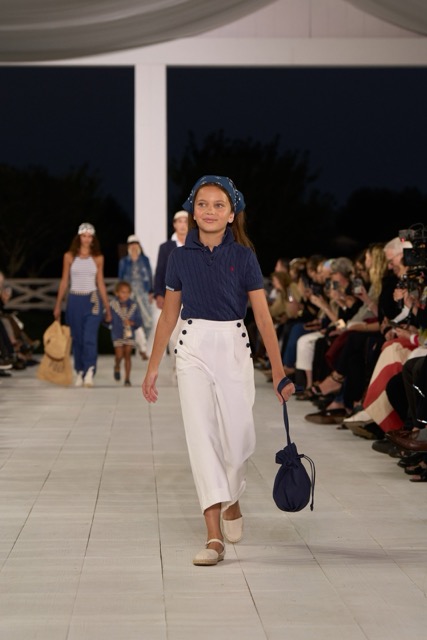 Drawing on his longstanding connection to the Hamptons, Ralph Lauren embraced elements of equestrian and seaside life. The runway, featuring supermodels like Christy Turlington and Naomi Campbell, presented a mix of menswear-inspired tailoring, Americana classics, and breezy, beach-ready outfits. Highlights included the iconic American flag sweater and nautical-inspired blue and white ensembles. Lauren’s attention to detail extended to accessories, including the new leather tote, “The Ralph,” inspired by vintage car interiors. With its multigenerational cast and elegant styling, the collection encapsulated a blend of rustic charm for the generationally wealthy. The show was an immersive experience, featuring vintage cars and a recreation of his Polo Bar, reaffirming the brand as a master of creating quintessential wannabe American luxury.