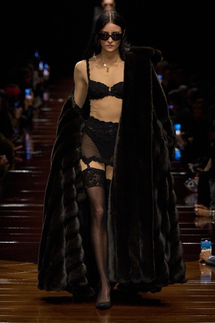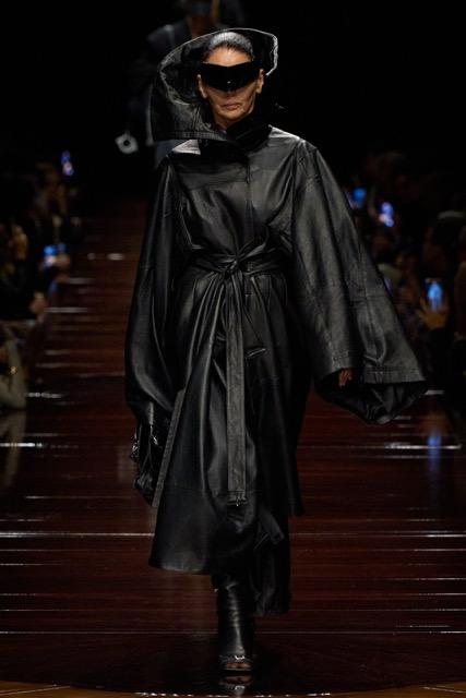 The collection showcased Demna’s signature style, with exaggerated silhouettes, unconventional materials, and a playful sense of mischief. The oversized cocoon bombers, Medici collars, and wrapped-up leather dresses were a nod to Cristóbal Balenciaga’s iconic designs, while the sheer body stockings and lingerie-inspired pieces added a touch of sensuality. The juxtaposition of traditional elements with modern interpretations was a recurring theme throughout the collection.