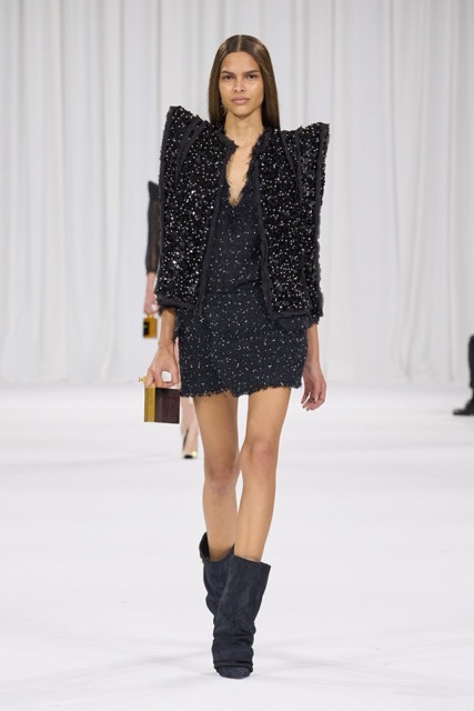 The powerful shoulders, glittering embellishments, and sleek silhouettes are all unmistakably Balmain, but there’s an edge that makes this collection feel fresh.