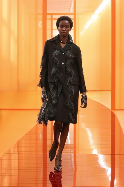 The collection featured a range of pieces that reflected De Sarno’s vision. Tailored garments, such as rounded jackets and pencil skirts, were juxtaposed with more casual sportswear elements like zip-front jackets and slit-front trousers. The brand’s signature horsebit motif was reimagined in various forms, including accessories and footwear. The overall aesthetic was one of effortless chic, with a focus on wearable pieces that could be integrated into everyday wardrobes.
