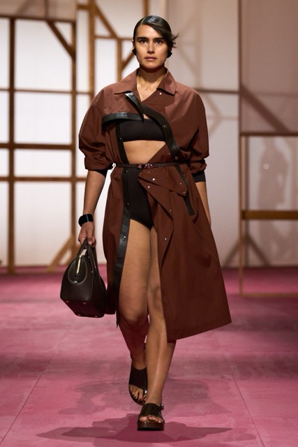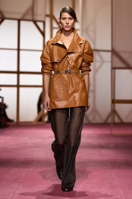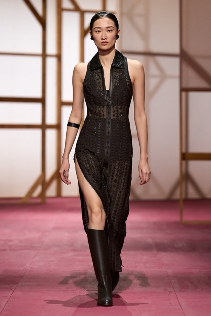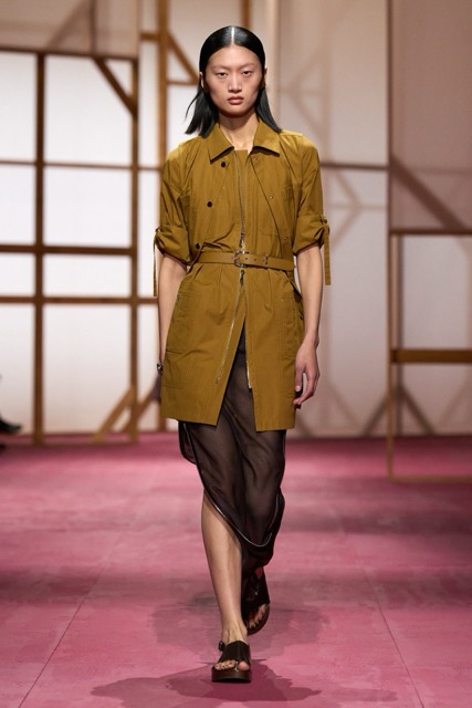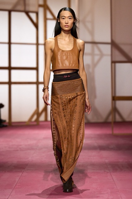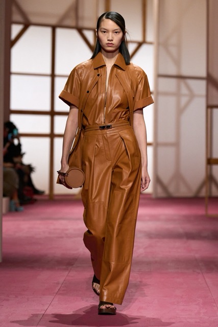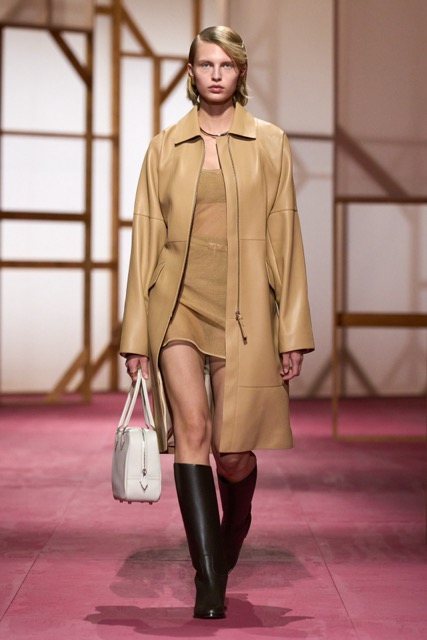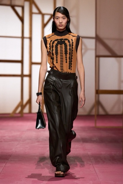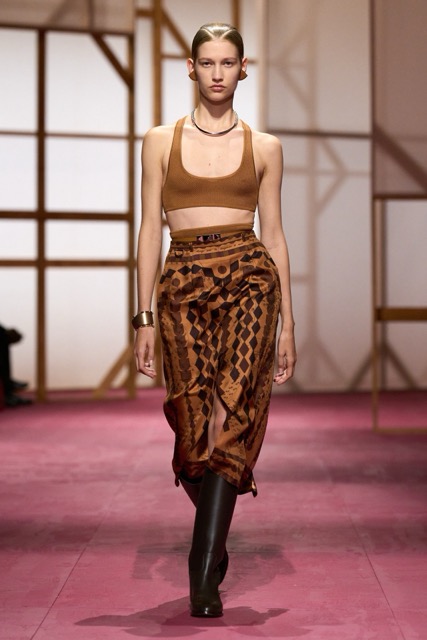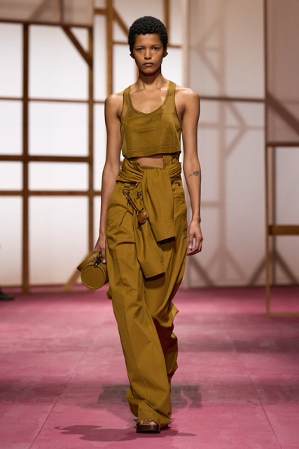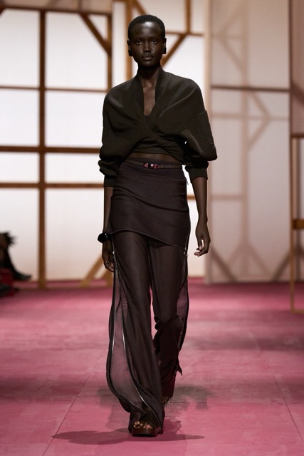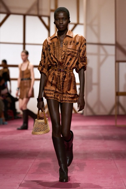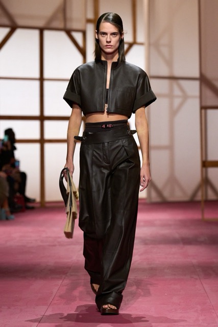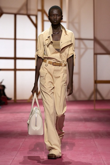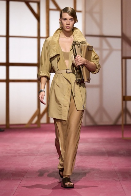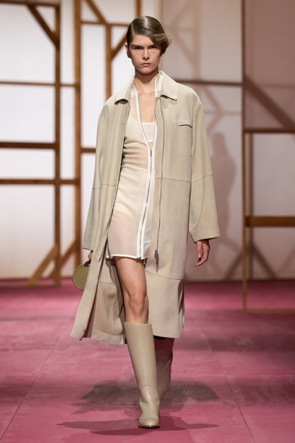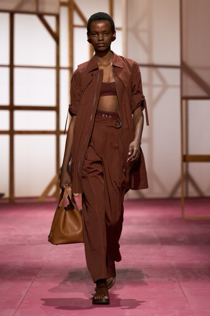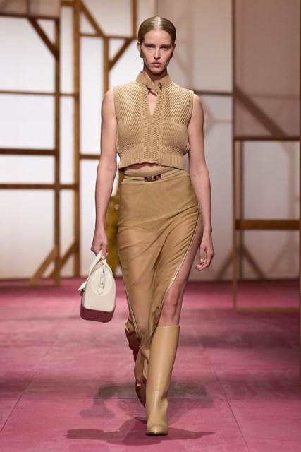 With sheer fabrics front and center, from breezy pants to tunics, it’s all about letting the skin breathe while still maintaining a high chic look. The Hermes collection balances this airy feel with sturdier pieces like leather jackets, slim belts, and classic Hermès handbags, giving everything a mix of lightness and structure.