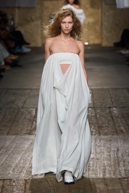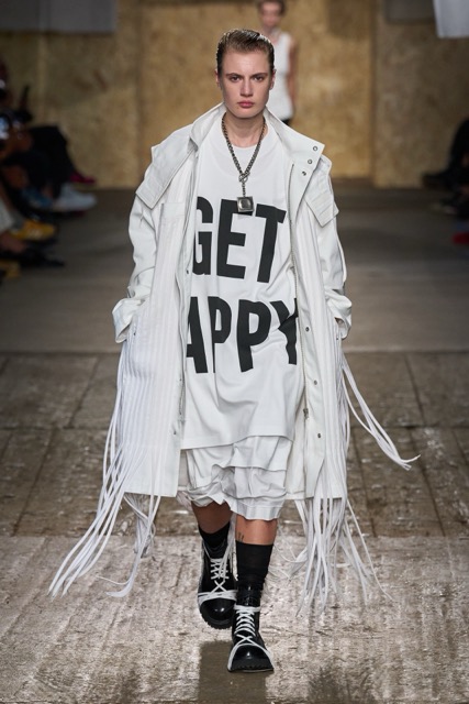Adrian Appiolaza’s Spring/Summer 2025 collection for Moschino is a complex yet playful exploration of fashion’s subcultural landscapes. In his third season, Appiolaza draws heavily on the house’s iconic wit while introducing fresh narratives inspired by his vast fashion knowledge. The collection opens with draped, all-white ensembles, evoking the playful and rebellious spirit of Franco Moschino, referencing the founder’s process of wrapping fabric around mannequins. From this nod to the past, the collection evolves into a tour of fashion’s cultural icons, blending punk, grunge, and polished tailoring.