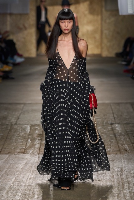 Appiolaza’s mastery of detail is evident in his ability to seamlessly weave together elements from various fashion eras. From the punk-inspired pearls to the grunge-inspired knits, each piece feels meticulously curated. However, the abundance of references can sometimes create a sense of visual overload, making it difficult to fully appreciate the individual elements.