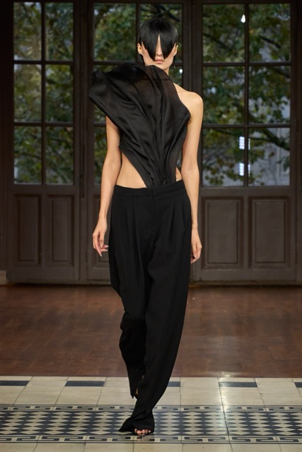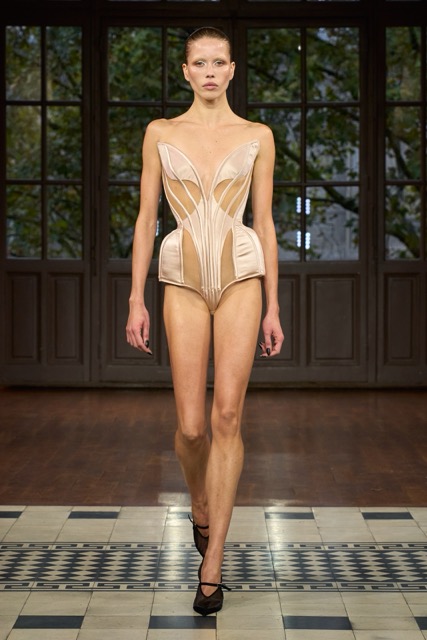 Celebrating Mugler’s 50th anniversary, this collection reflects both a deep respect for the house’s legacy and a bold vision for the future. While the collection is undeniably dark and dramatic, it also has a sense of lightness and playfulness. The juxtaposition of sharp lines and soft fabrics, the contrast between the natural world and the futuristic elements, and the overall sense of empowerment that the designs exude make it a truly memorable collection.