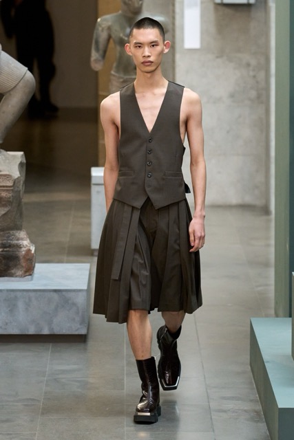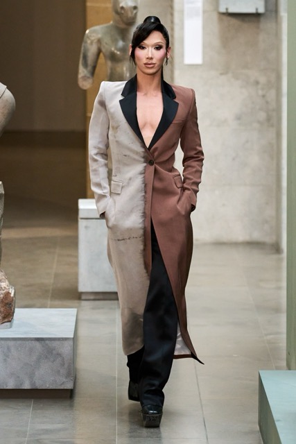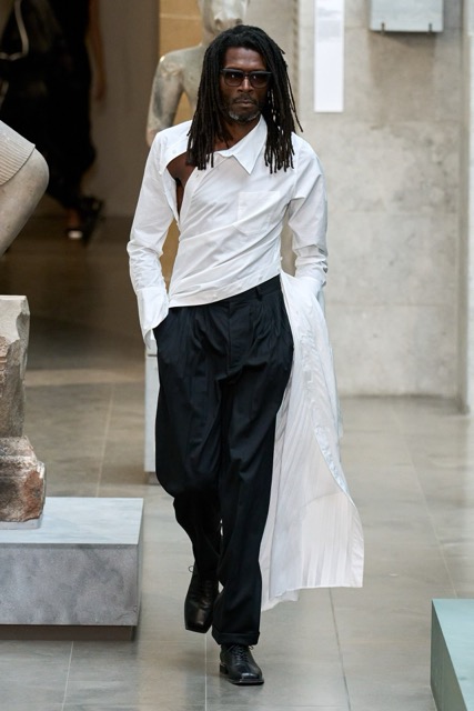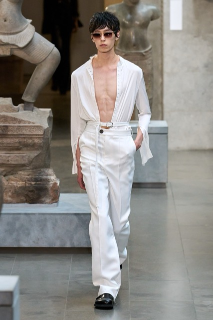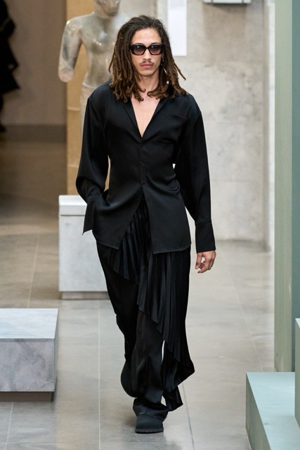 While the range of styles varied, there was a clear focus on craftsmanship and wearability. Long shirts were worn in unconventional ways, and adjustable ties offered versatility. The show closed with a performance by drag artist Plastique Tiara, adding a fun, lively twist to the presentation.