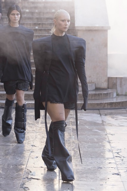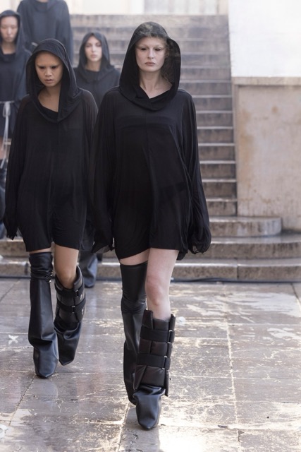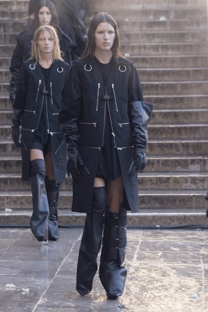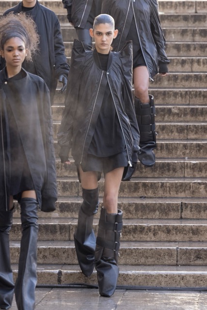 Sustainability was also a focus. Owens used narrow-loomed Japanese denim with an eco-friendly wash process, vegetable-tanned leather, and GOTS-certified organic silk.