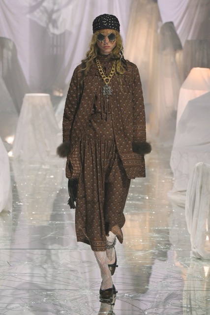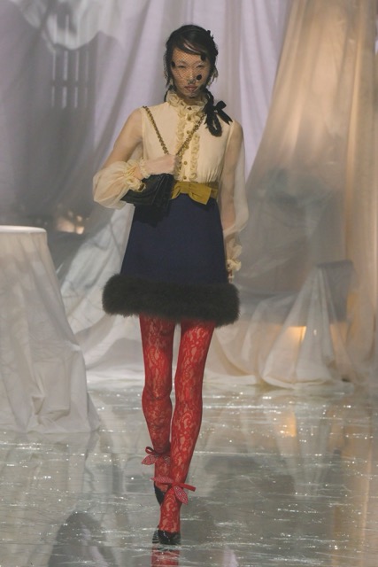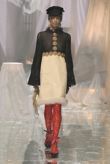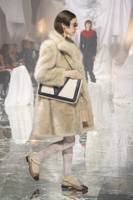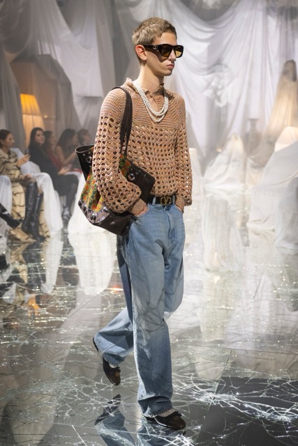 Accessories played a vital role in completing each ensemble, with Michele pushing the boundaries of chic. Models carried bags in pairs—everything from logo-encrusted clutches to studded totes—while donning lace tights, feather-trimmed dresses, and go-go boots. The attention to detail was impeccable. Accessories played a key role in the collection, adding a touch of whimsy and eccentricity to the overall look. From oversized hats and turbans to playful bags and statement jewelry, the accessories were as striking as the clothing.