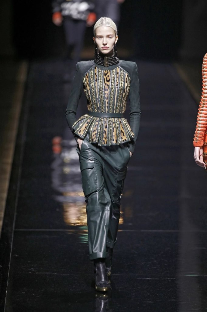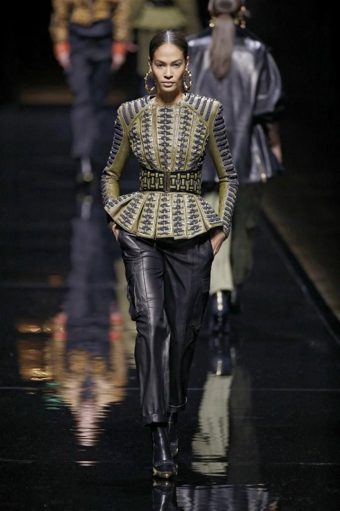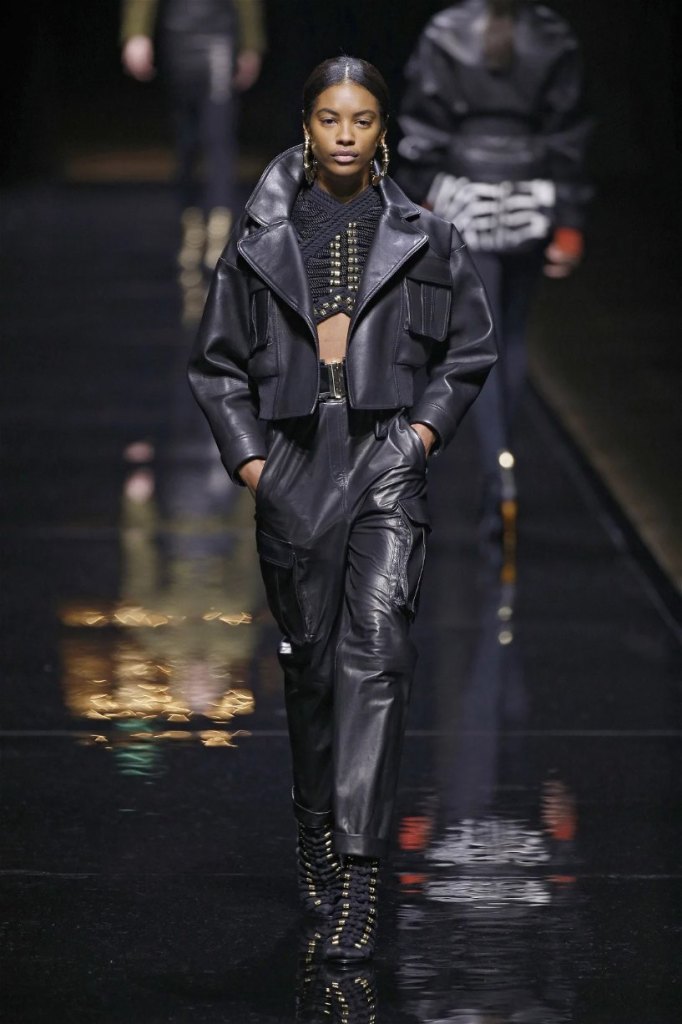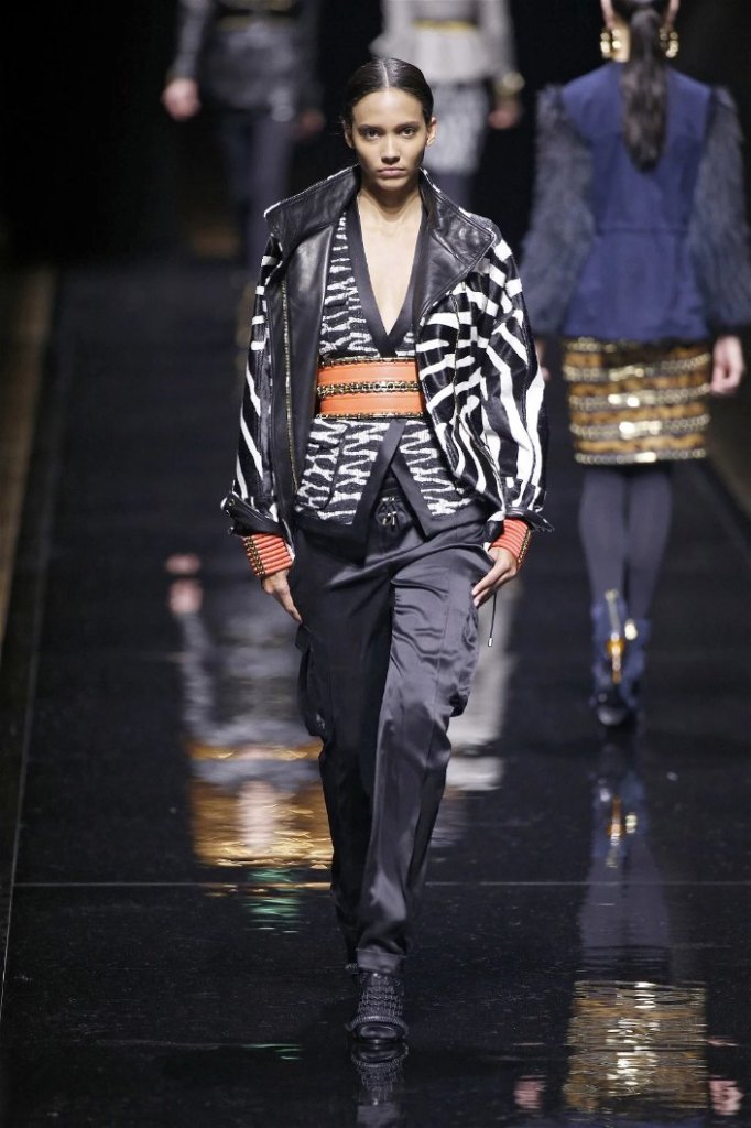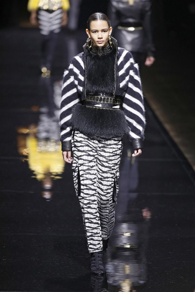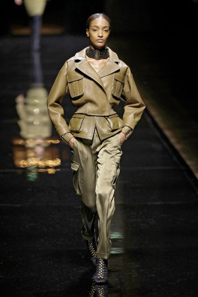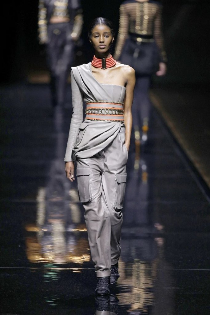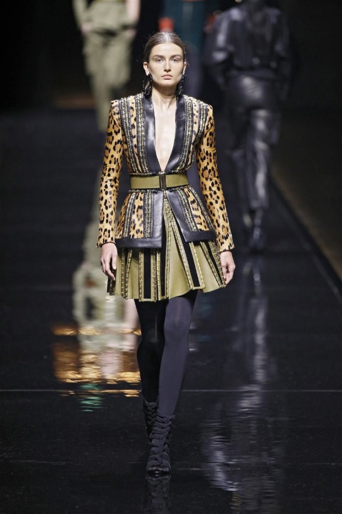 This Balmain collection was a fearless blend of safari and hip-hop influences. With cargo jackets, zebra stripes, and leather adorned with silk and gold, the collection oozed boldness. The use of electric pops of red and yellow lamb’s fur added a vibrant touch. Rousteing’s message was personal, reflecting his identity and the theme of global freedom. The tribal-inspired details, such as bamboo-heeled stilettos and animal print accessories, brought a modern yet edgy glamour to the runway.
