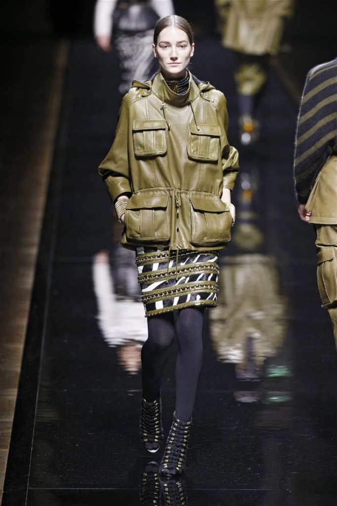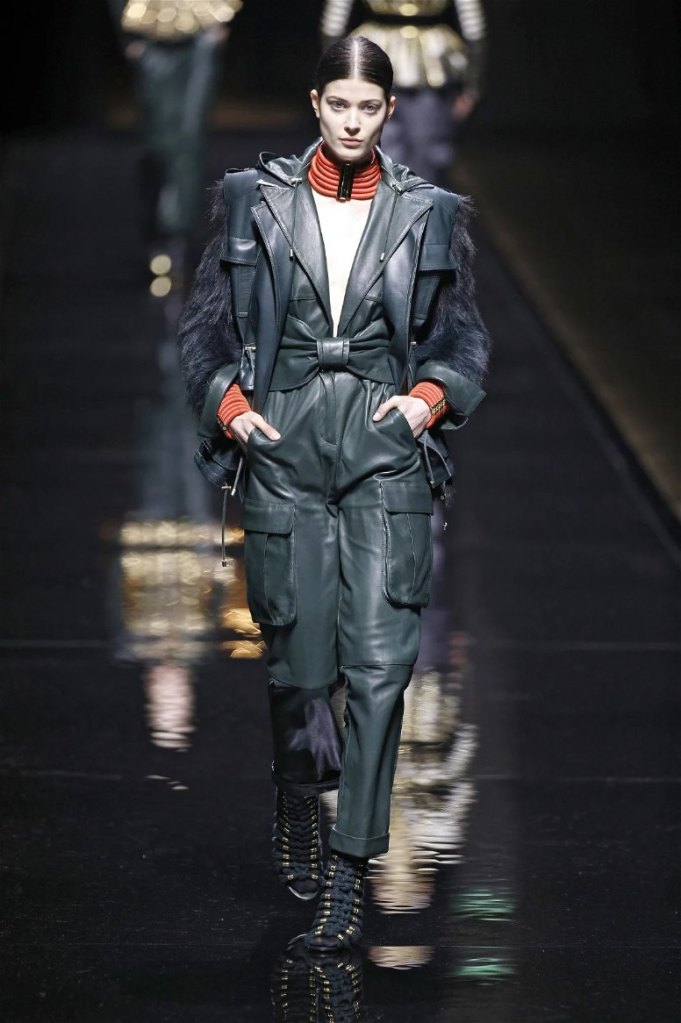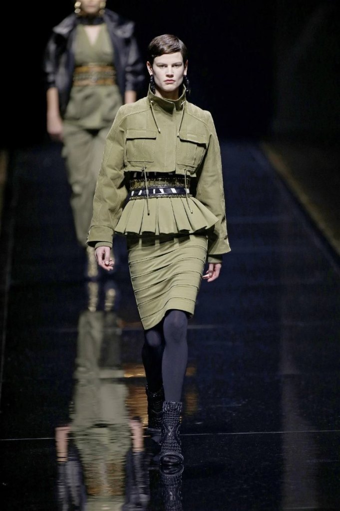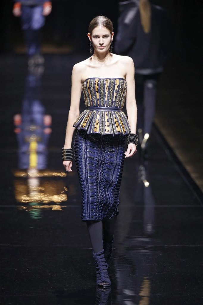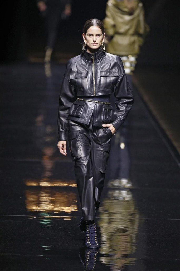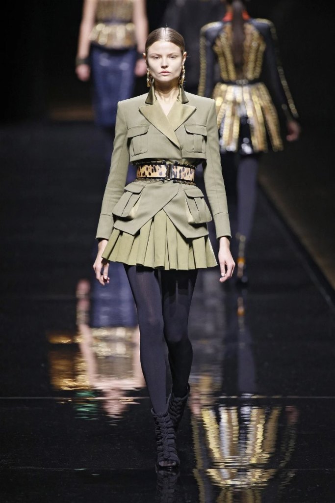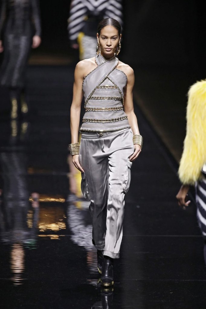 This Balmain collection was a fearless blend of safari and hip-hop influences. With cargo jackets, zebra stripes, and leather adorned with silk and gold, the collection oozed boldness. The use of electric pops of red and yellow lamb’s fur added a vibrant touch. Rousteing’s message was personal, reflecting his identity and the theme of global freedom. The tribal-inspired details, such as bamboo-heeled stilettos and animal print accessories, brought a modern yet edgy glamour to the runway.