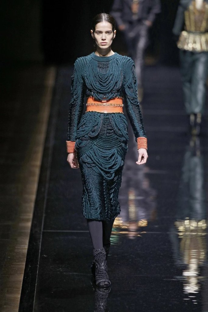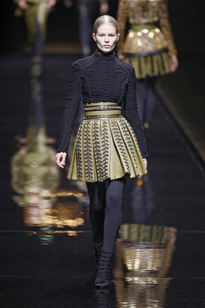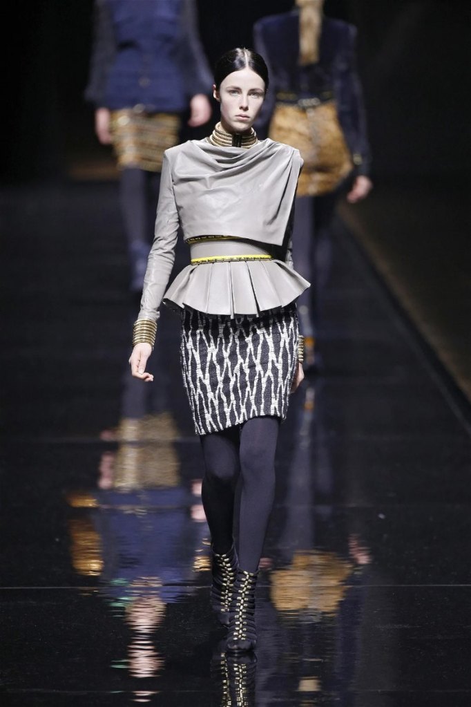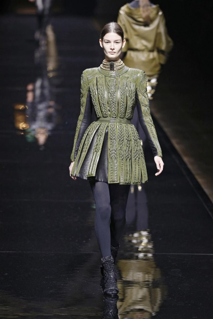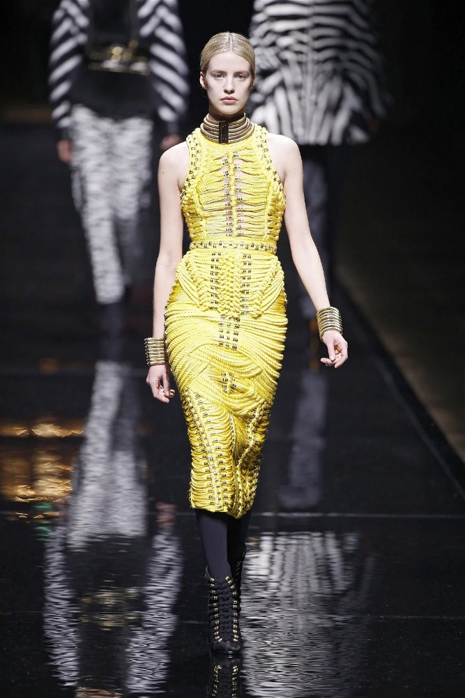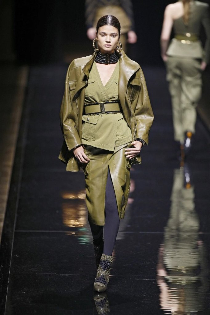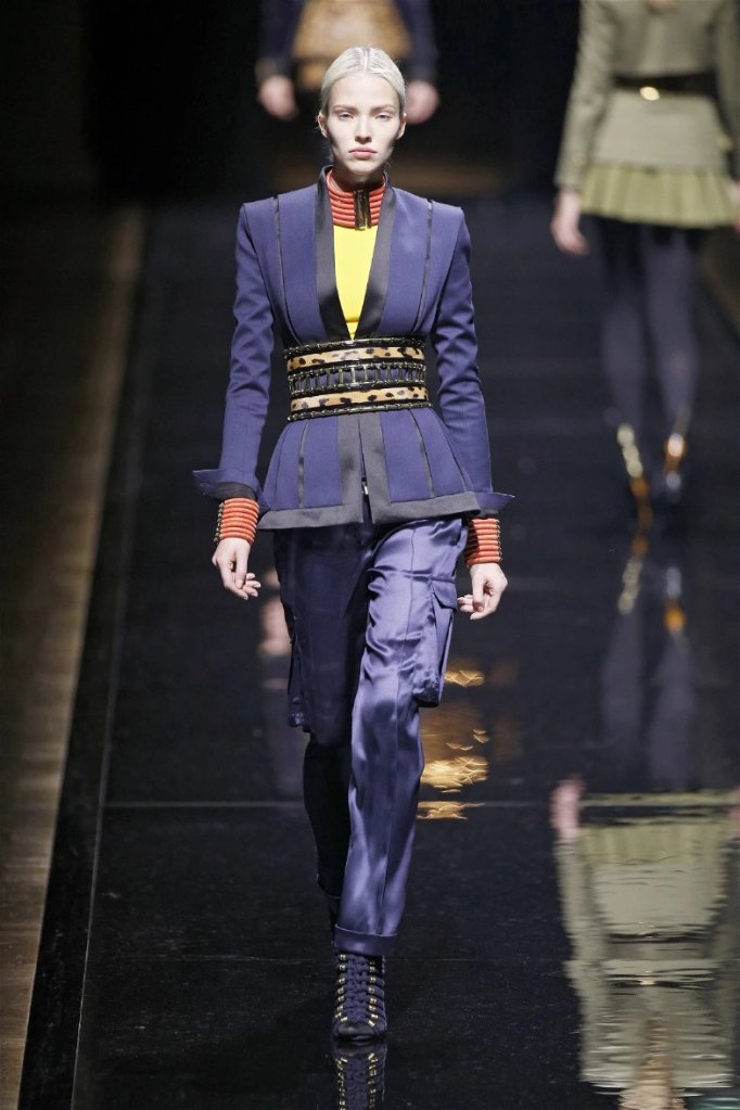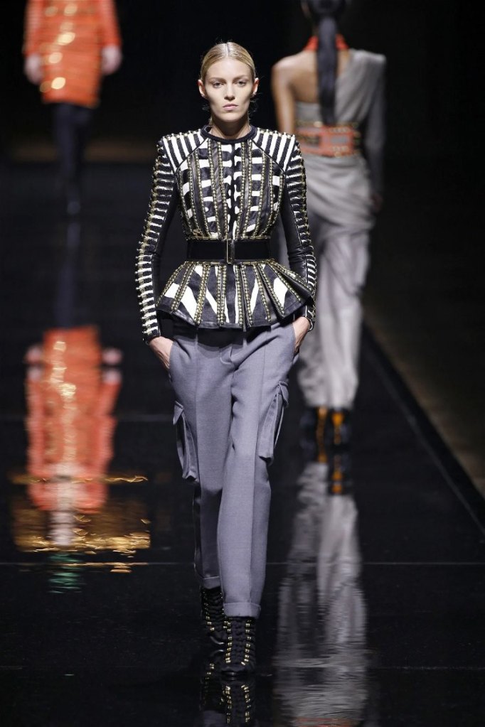This Balmain collection was a fearless blend of safari and hip-hop influences. With cargo jackets, zebra stripes, and leather adorned with silk and gold, the collection oozed boldness. The use of electric pops of red and yellow lamb’s fur added a vibrant touch. Rousteing’s message was personal, reflecting his identity and the theme of global freedom. The tribal-inspired details, such as bamboo-heeled stilettos and animal print accessories, brought a modern yet edgy glamour to the runway.