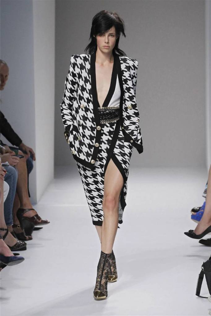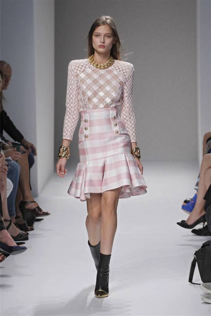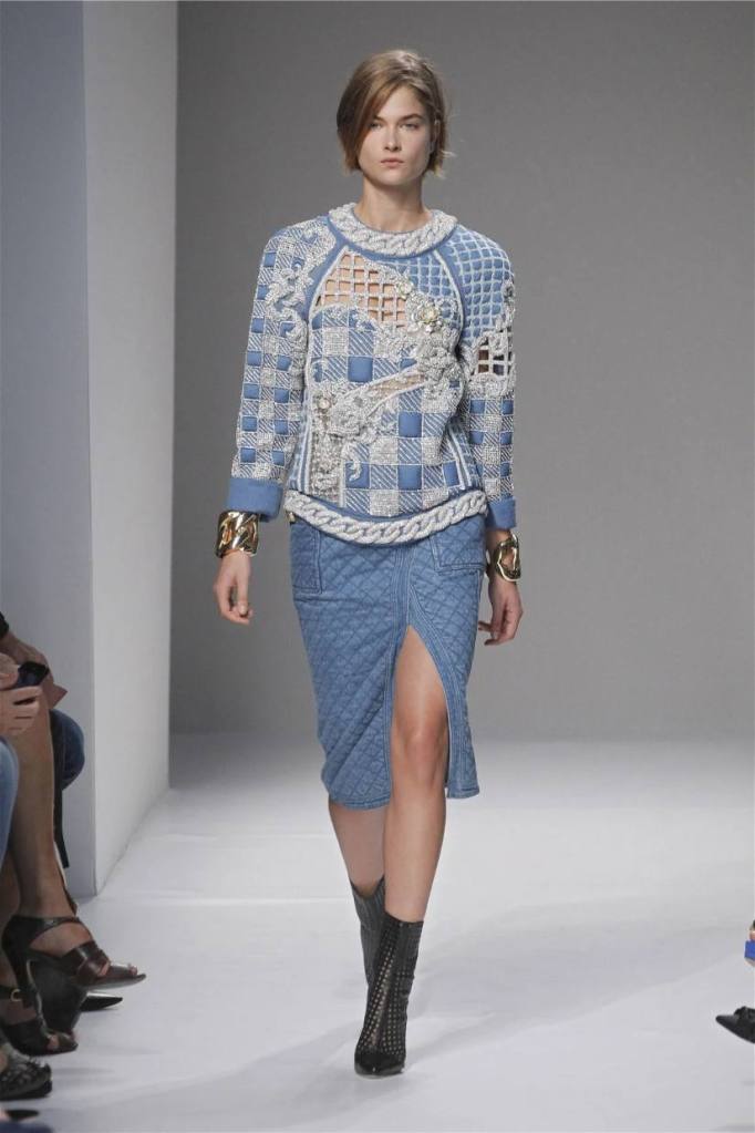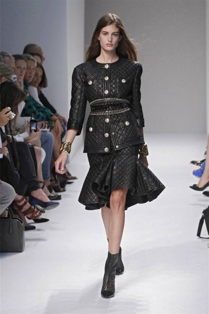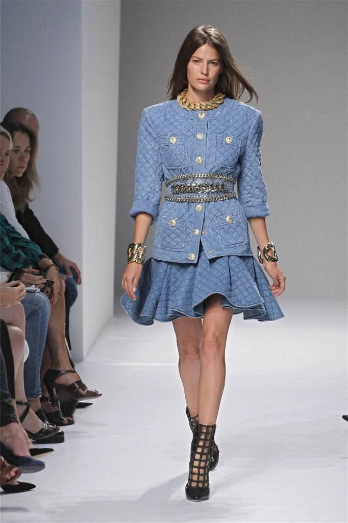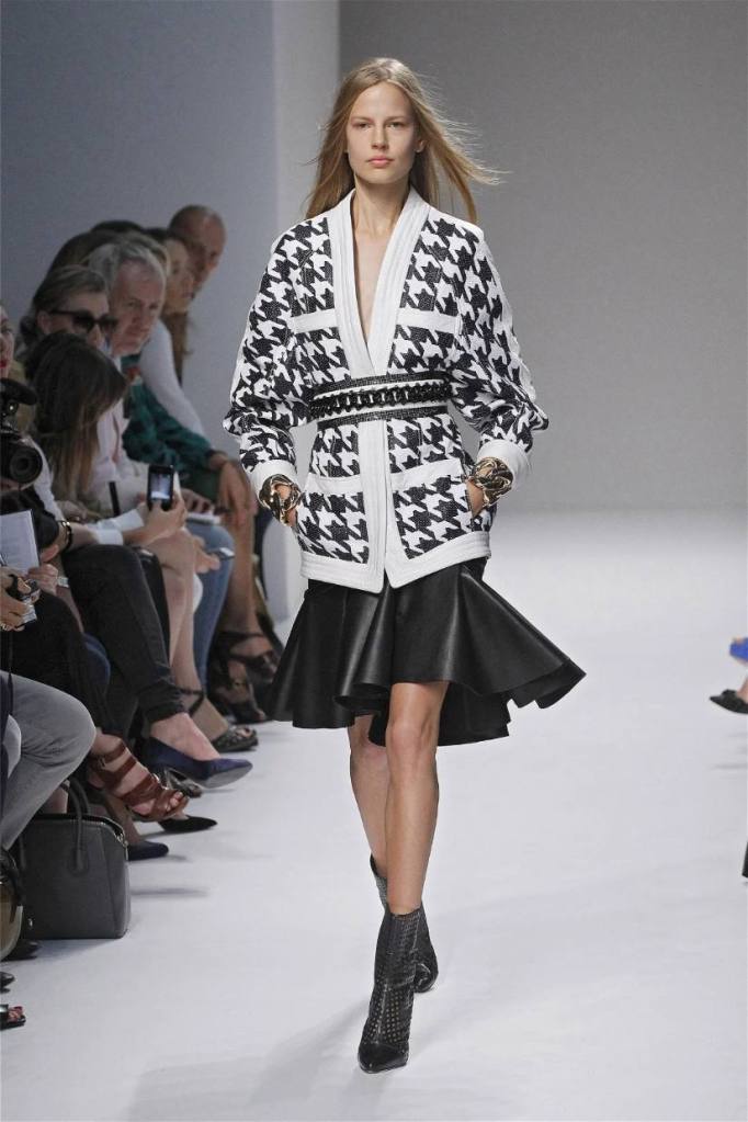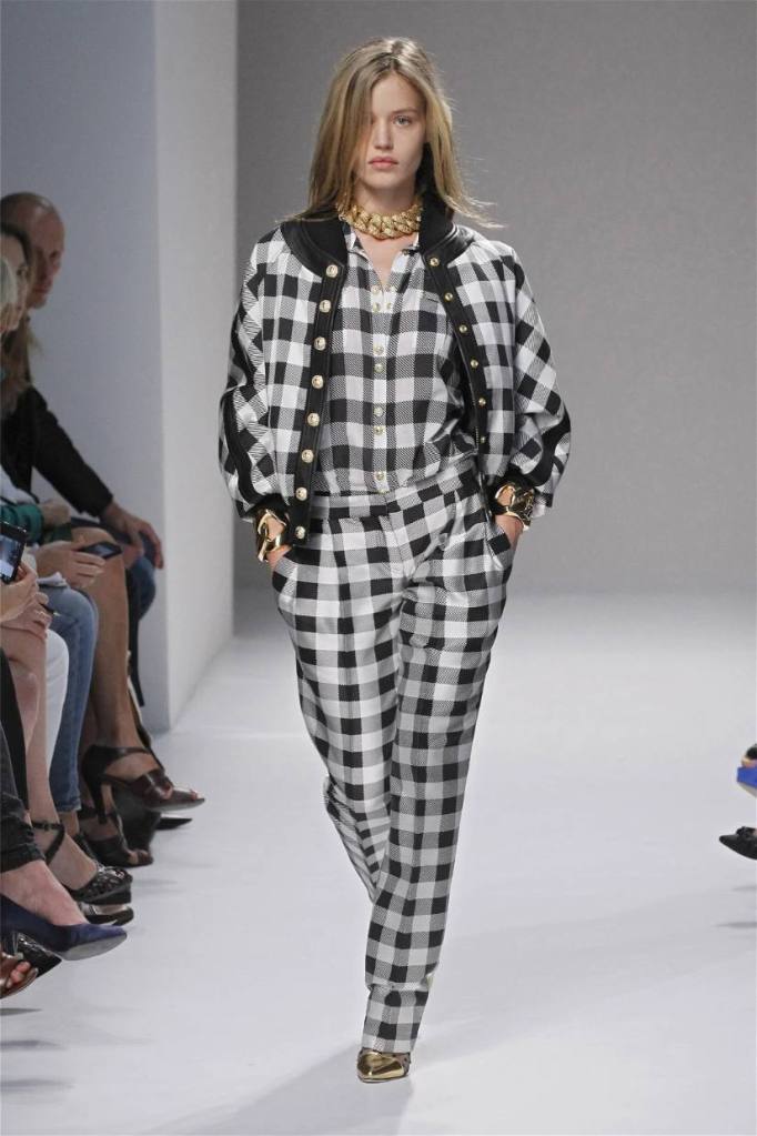 Olivier Rousteing has taken classic pieces like denim, leather, and power shoulders and given them a modern twist. While some pieces are more daring than others, overall, it’s a youthful , relaxed energy to the brand’s signature luxury. Moving away from the intense beading of previous seasons, Rousteing embraces a sportier, more casual look. The collection features nineties-inspired pieces like boxy jackets, quilted separates, and playful skirts with ruffles or feathers. There’s a perfect blend of bold prints like gingham and houndstooth, with a color palette of pastels and monochromes. The collection mixes everyday styles with couture-level details, from silver-spun weaves to unique knits. Balmain’s rock ‘n’ roll vibe is evident in leather, denim, and metallic accents, all balanced with soft cottons and cashmere. It’s youthful, glamorous, and unapologetically fun.