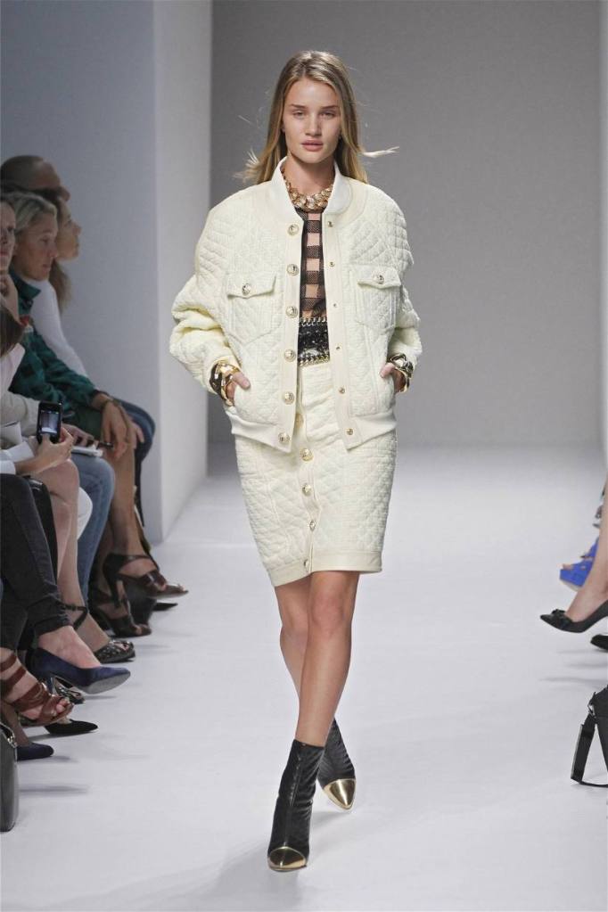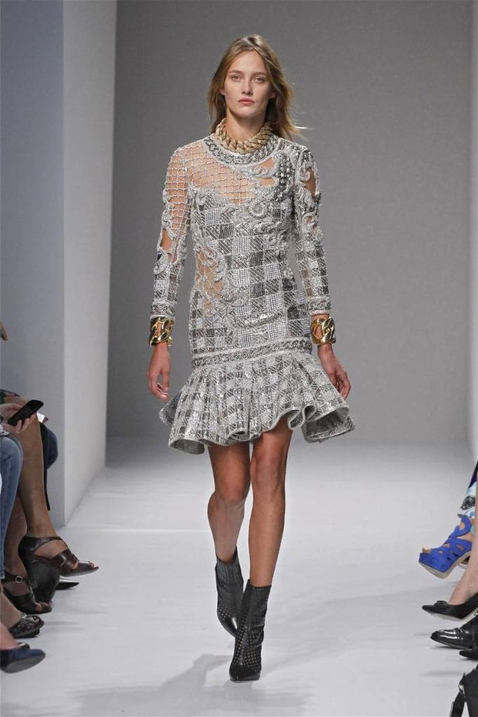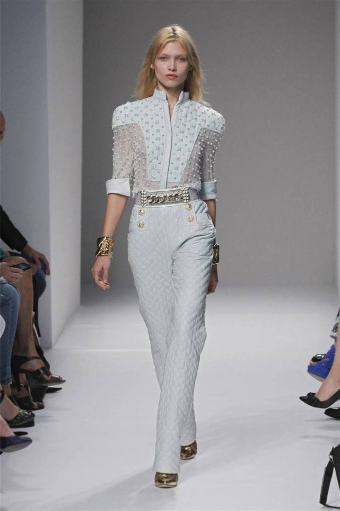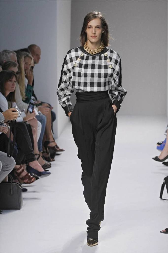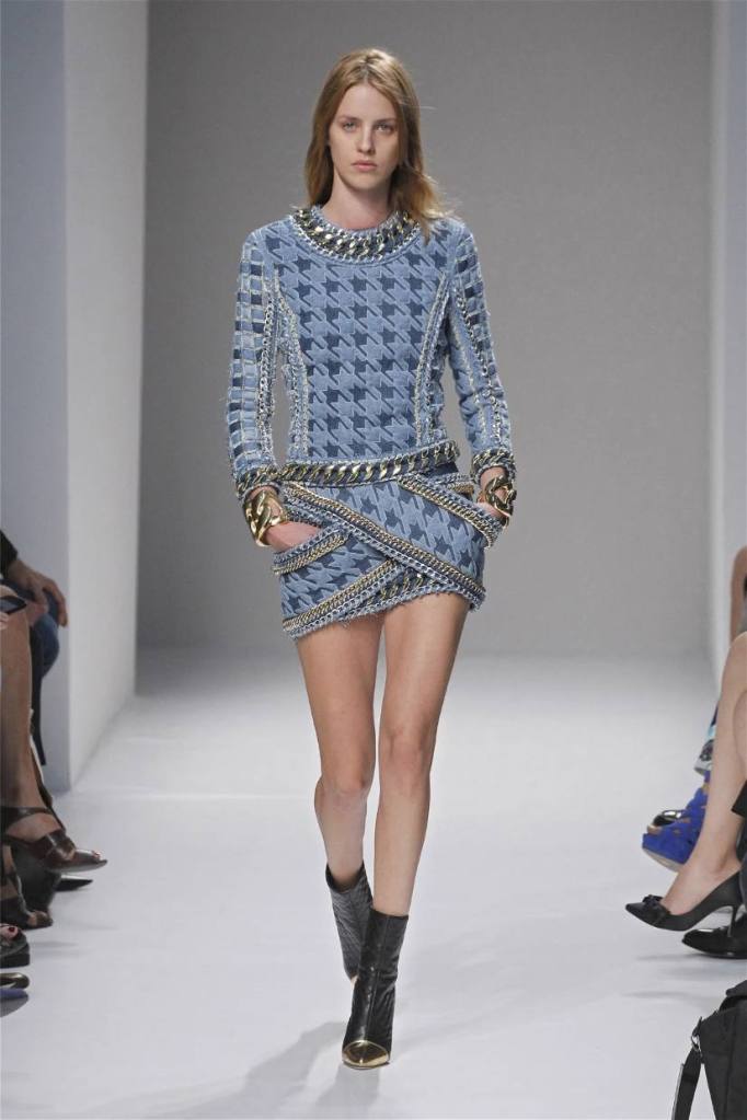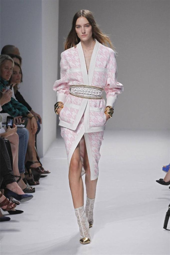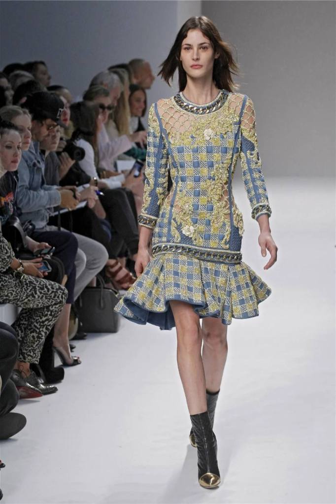 Olivier Rousteing has taken classic pieces like denim, leather, and power shoulders and given them a modern twist. While some pieces are more daring than others, overall, it’s a youthful , relaxed energy to the brand’s signature luxury. Moving away from the intense beading of previous seasons, Rousteing embraces a sportier, more casual look. The collection features nineties-inspired pieces like boxy jackets, quilted separates, and playful skirts with ruffles or feathers. There’s a perfect blend of bold prints like gingham and houndstooth, with a color palette of pastels and monochromes. The collection mixes everyday styles with couture-level details, from silver-spun weaves to unique knits. Balmain’s rock ‘n’ roll vibe is evident in leather, denim, and metallic accents, all balanced with soft cottons and cashmere. It’s youthful, glamorous, and unapologetically fun.