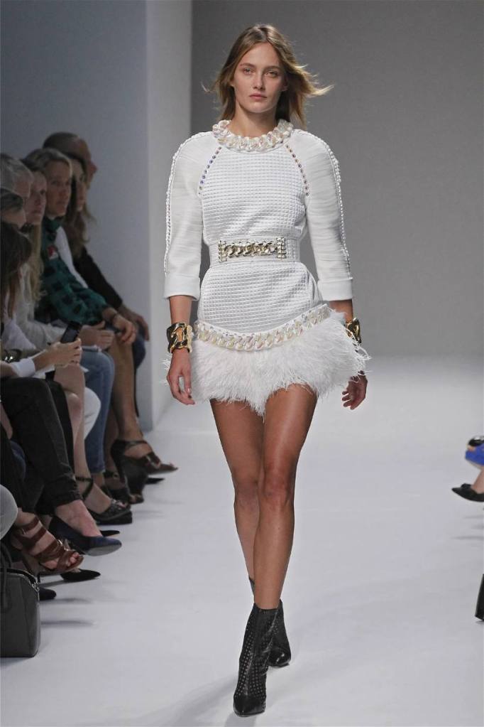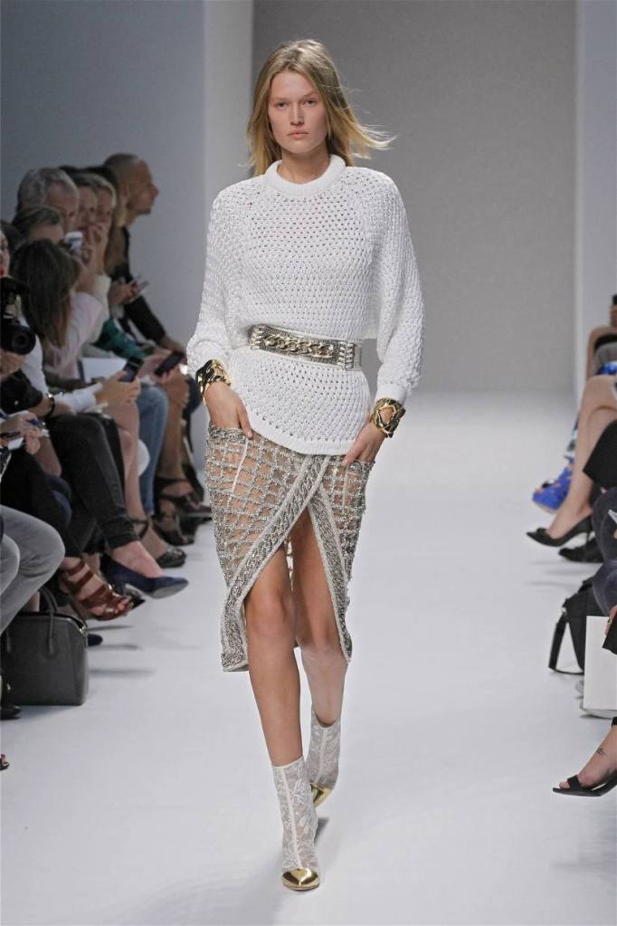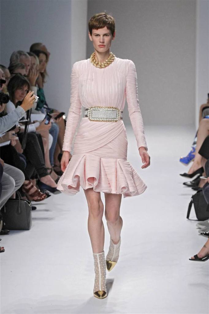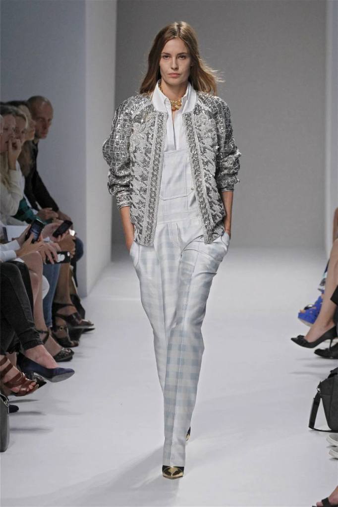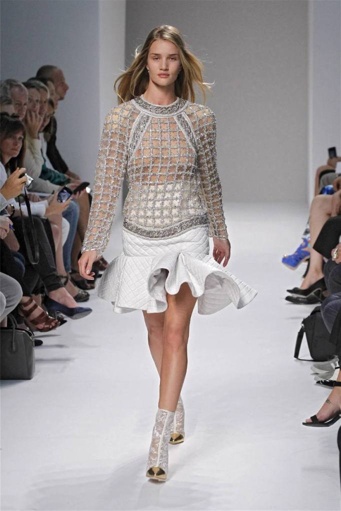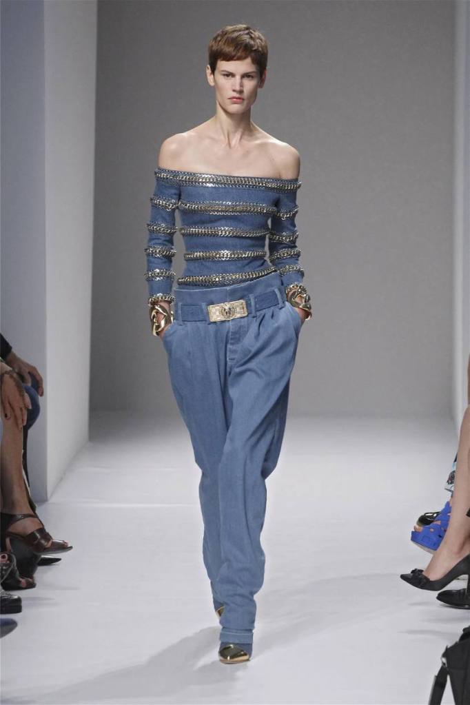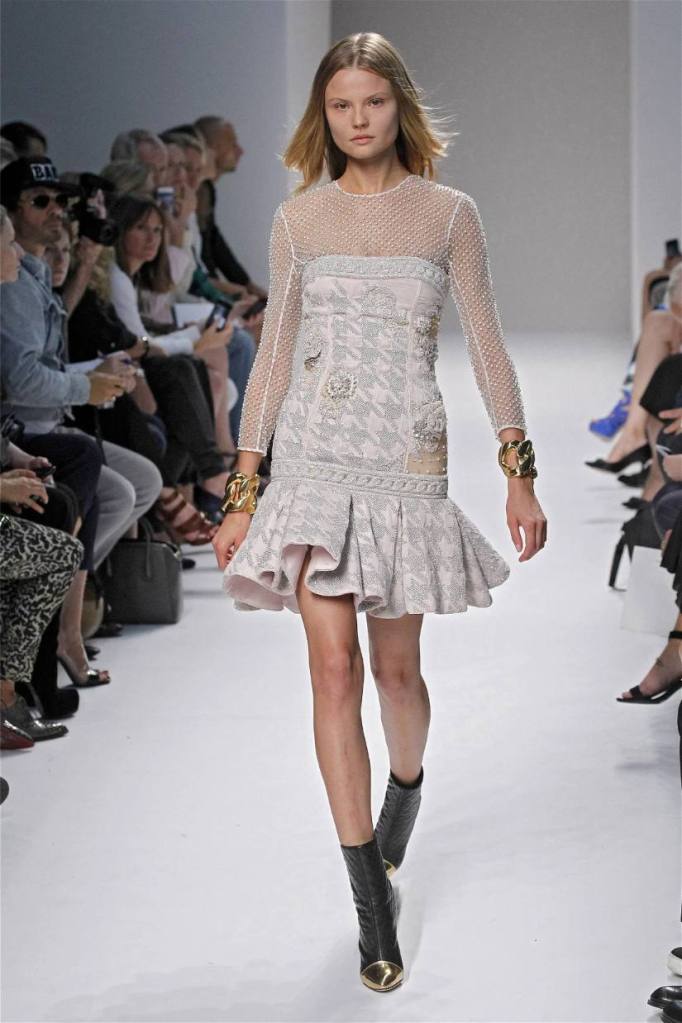Olivier Rousteing has taken classic pieces like denim, leather, and power shoulders and given them a modern twist. While some pieces are more daring than others, overall, it’s a youthful , relaxed energy to the brand’s signature luxury. Moving away from the intense beading of previous seasons, Rousteing embraces a sportier, more casual look. The collection features nineties-inspired pieces like boxy jackets, quilted separates, and playful skirts with ruffles or feathers. There’s a perfect blend of bold prints like gingham and houndstooth, with a color palette of pastels and monochromes. The collection mixes everyday styles with couture-level details, from silver-spun weaves to unique knits. Balmain’s rock ‘n’ roll vibe is evident in leather, denim, and metallic accents, all balanced with soft cottons and cashmere. It’s youthful, glamorous, and unapologetically fun.
