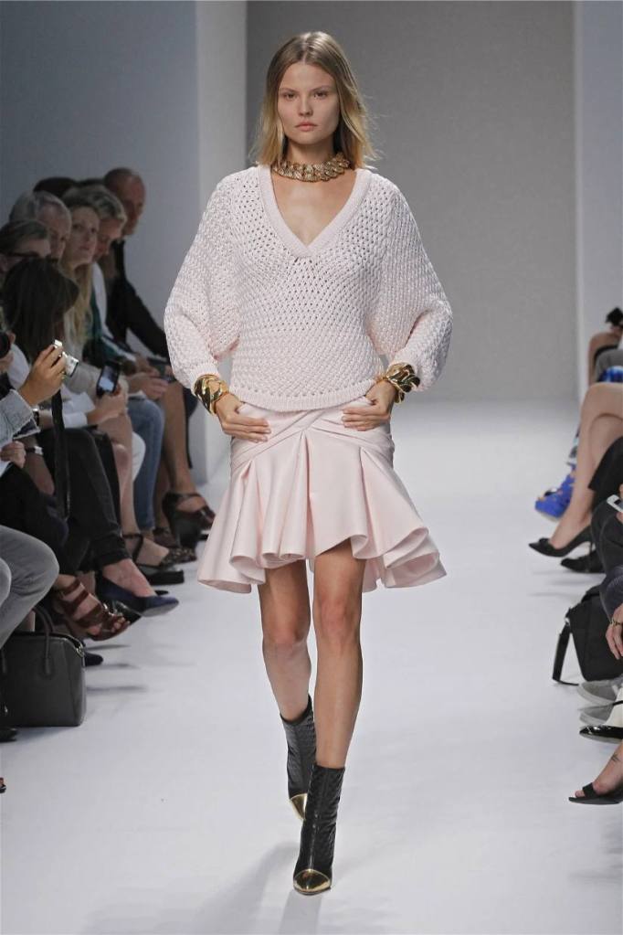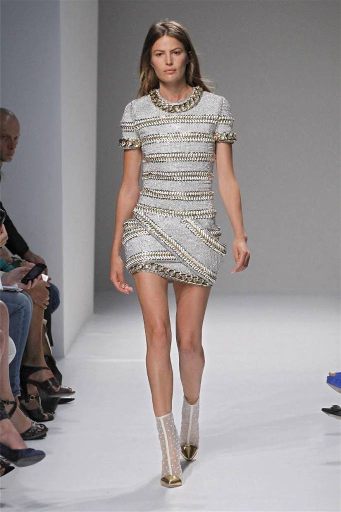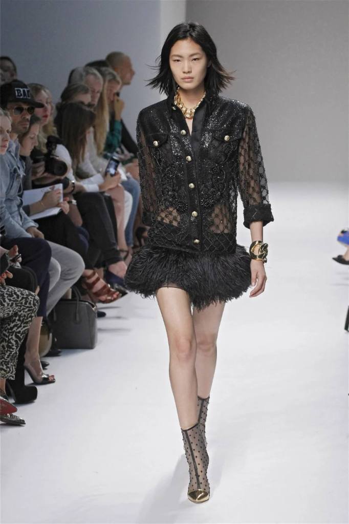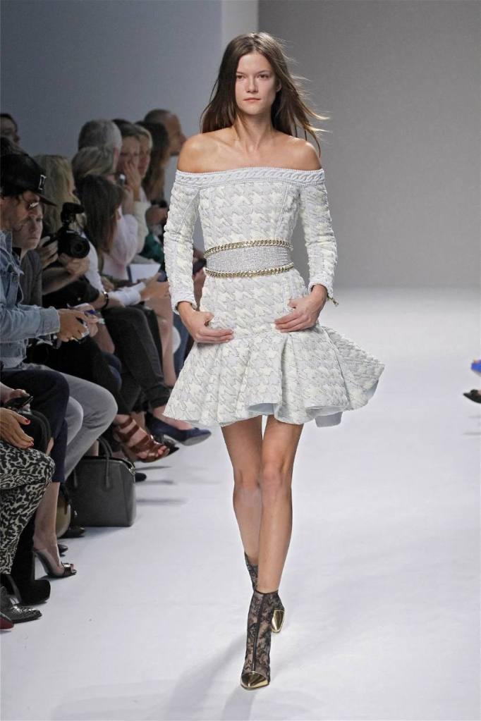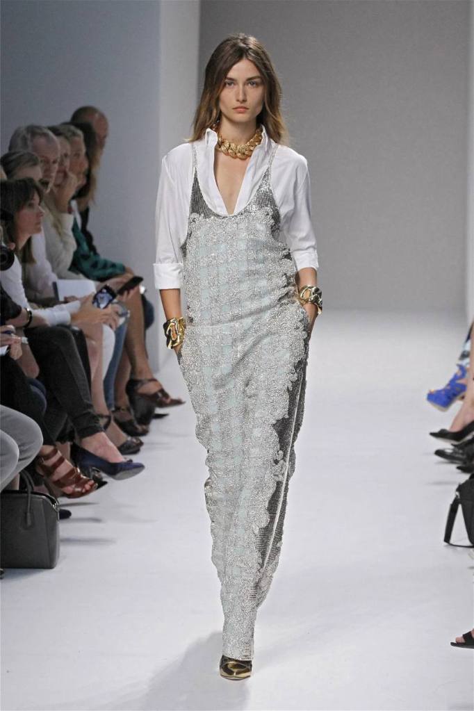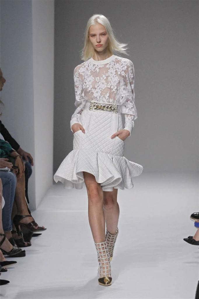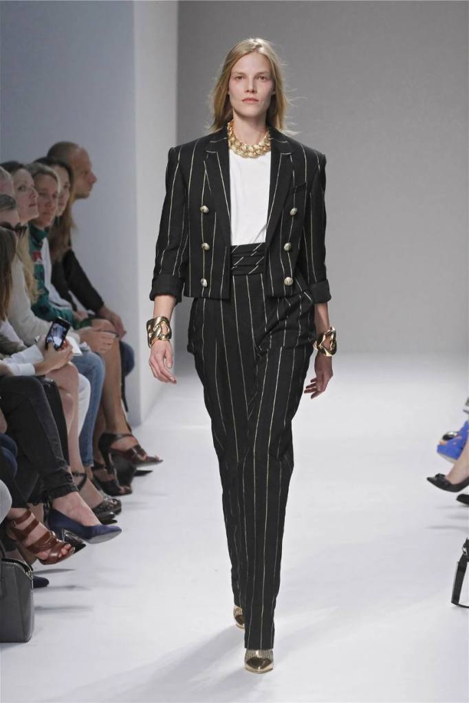 Olivier Rousteing has taken classic pieces like denim, leather, and power shoulders and given them a modern twist. While some pieces are more daring than others, overall, it’s a youthful , relaxed energy to the brand’s signature luxury. Moving away from the intense beading of previous seasons, Rousteing embraces a sportier, more casual look. The collection features nineties-inspired pieces like boxy jackets, quilted separates, and playful skirts with ruffles or feathers. There’s a perfect blend of bold prints like gingham and houndstooth, with a color palette of pastels and monochromes. The collection mixes everyday styles with couture-level details, from silver-spun weaves to unique knits. Balmain’s rock ‘n’ roll vibe is evident in leather, denim, and metallic accents, all balanced with soft cottons and cashmere. It’s youthful, glamorous, and unapologetically fun.