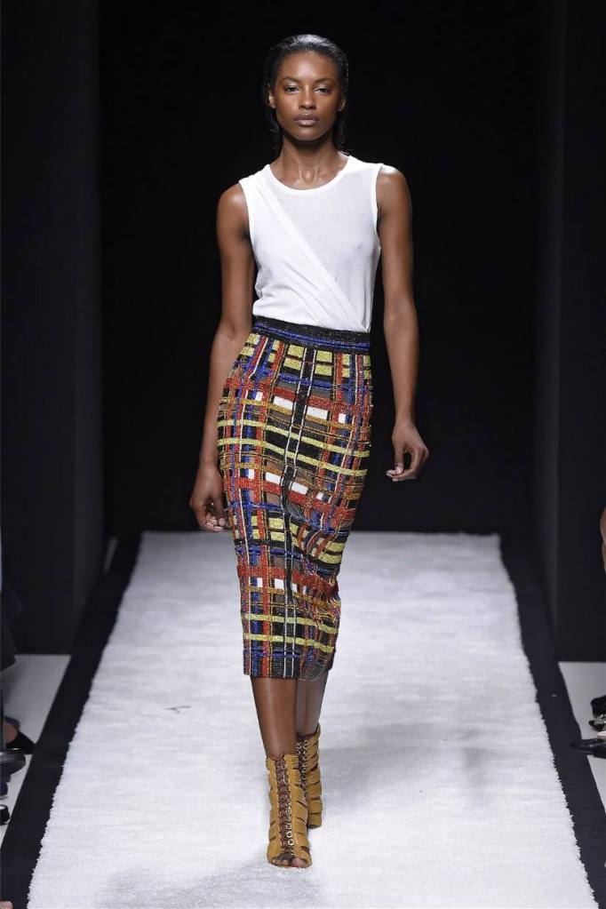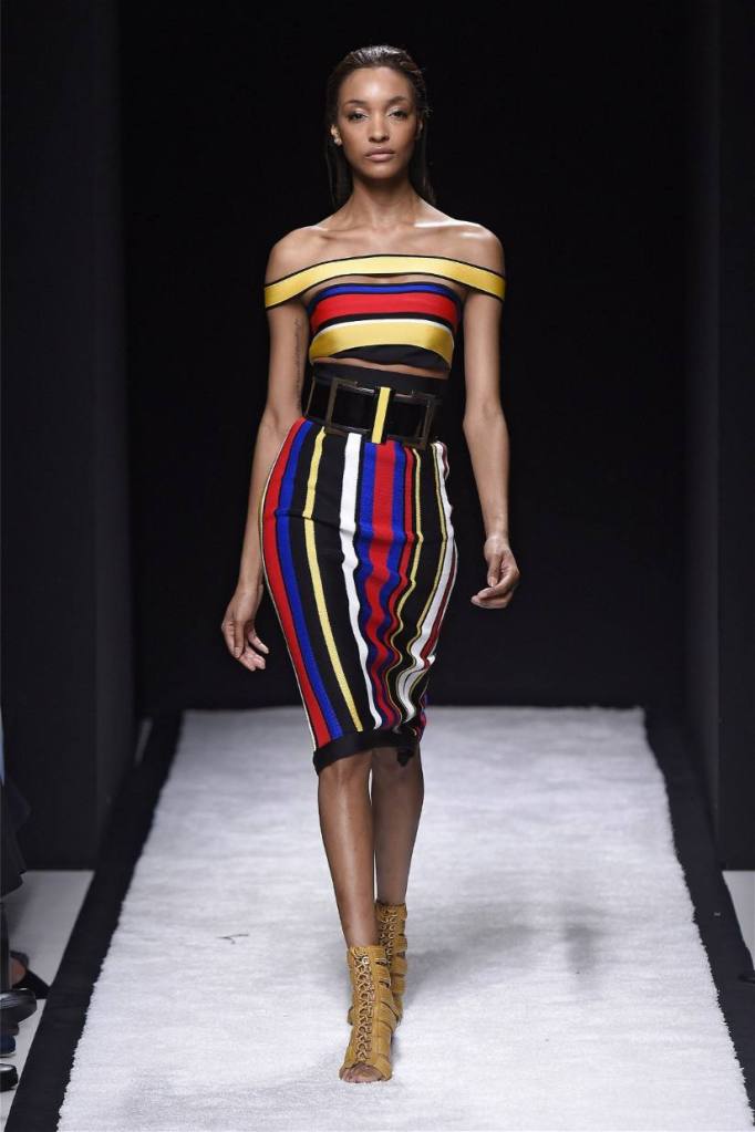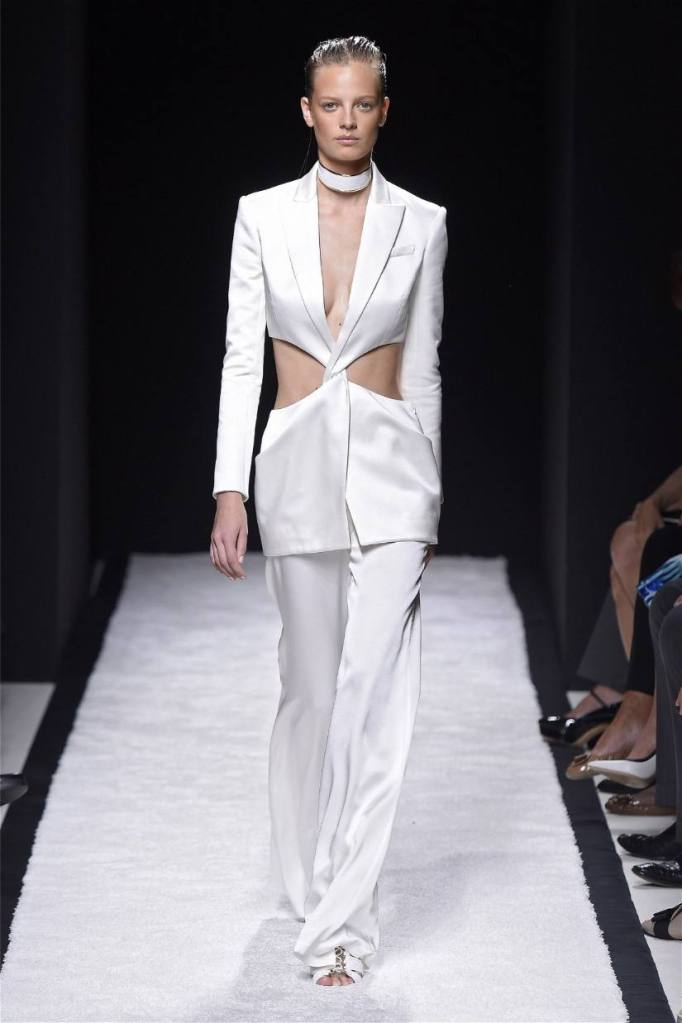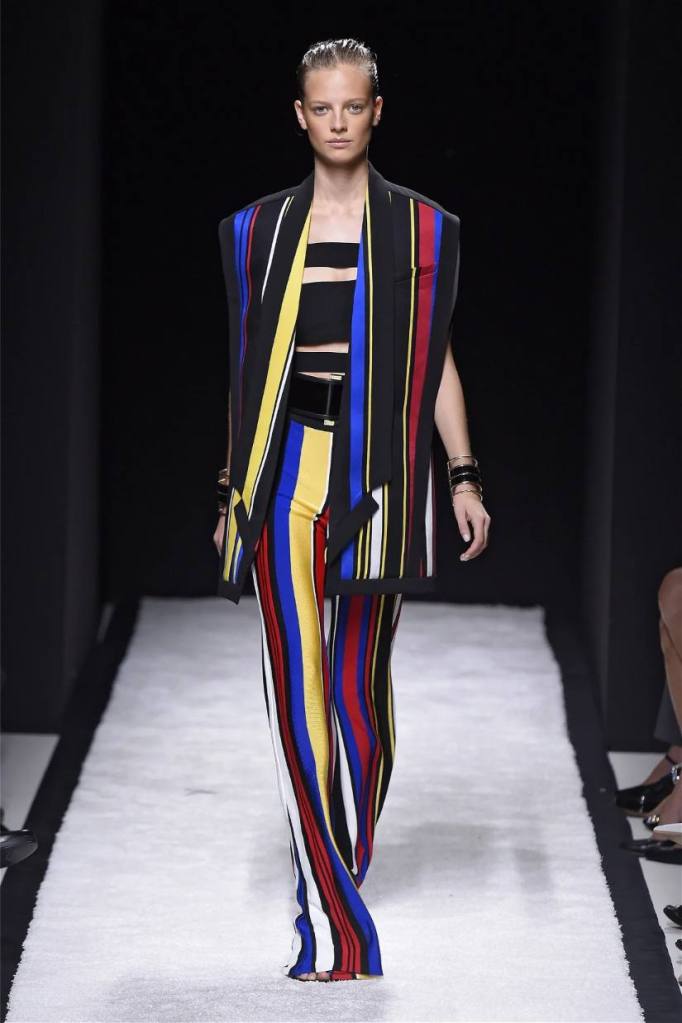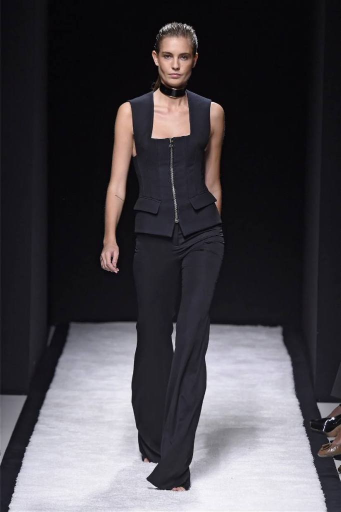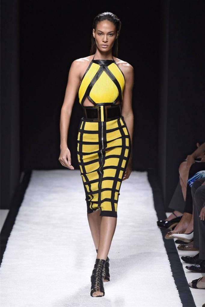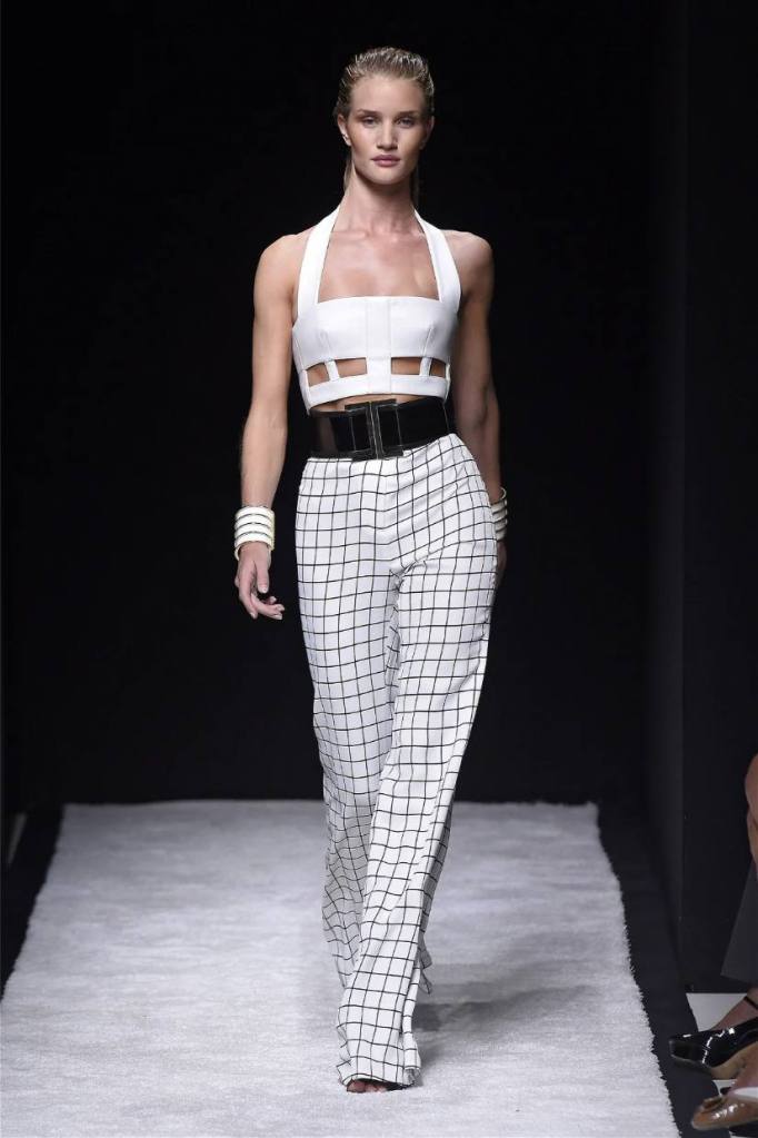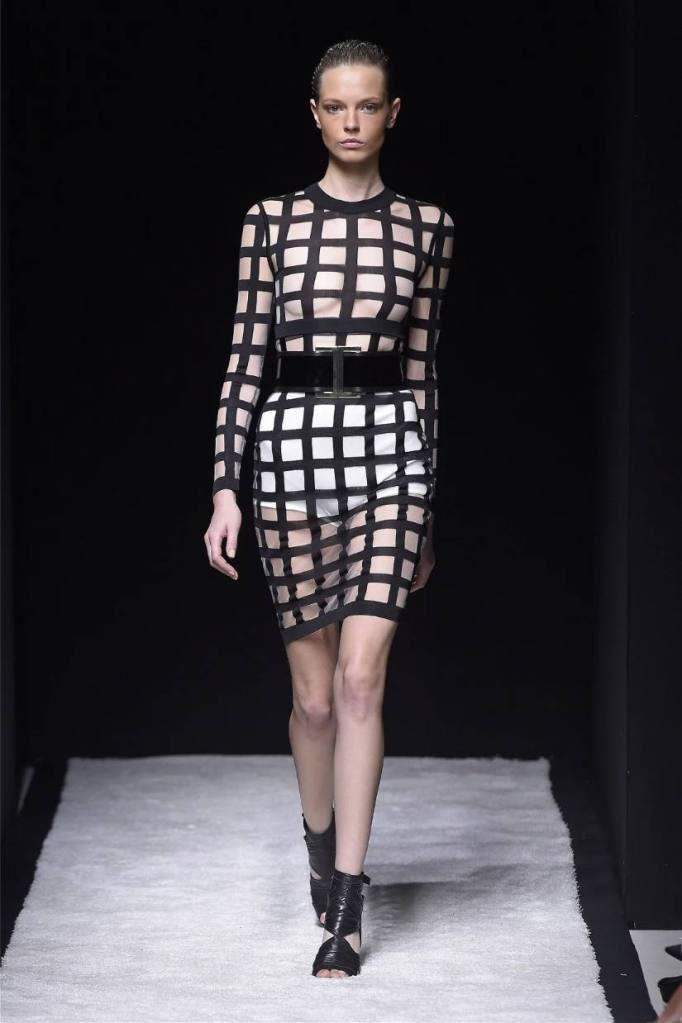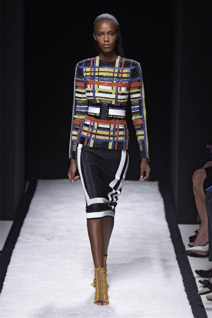 Drawing inspiration from 2015’s after-party vibe, the collection featured lots of skin and transparency, with sheer nylon knits, plastic inserts, and delicate plissé fabrics. While the designs were eye-catching, some of the fabrics, like allover crystals and heavy leather, were difficult to wear, offering less comfort than expected. The collection worked best when Rousteing kept things simple, like the elegant draped white tee paired with a crystal grid pencil skirt. Sexy, streamlined pieces like cutout dresses and strappy gowns, especially in fiery red, showcased Rousteing’s strength in balancing sensuality with structure. Models strutted in strong, confident silhouettes, from wide-legged trousers to body-con dresses, With a star-studded front row and bold designs, Balmain delivered a powerful collection.
