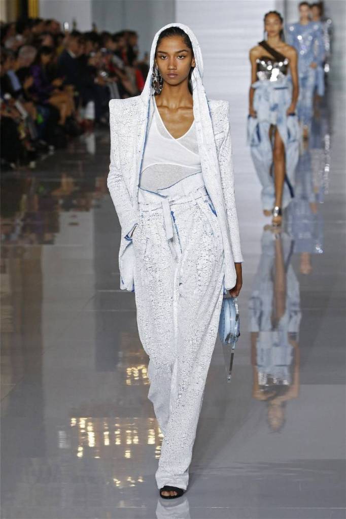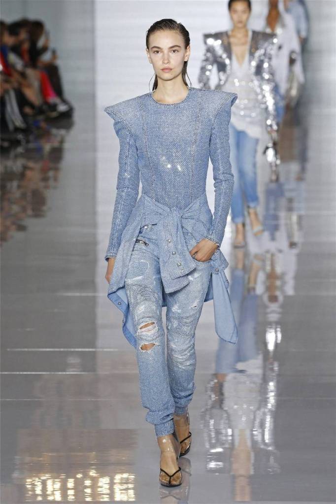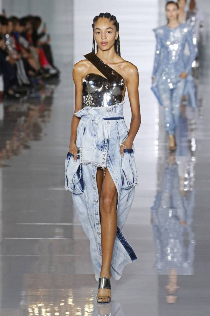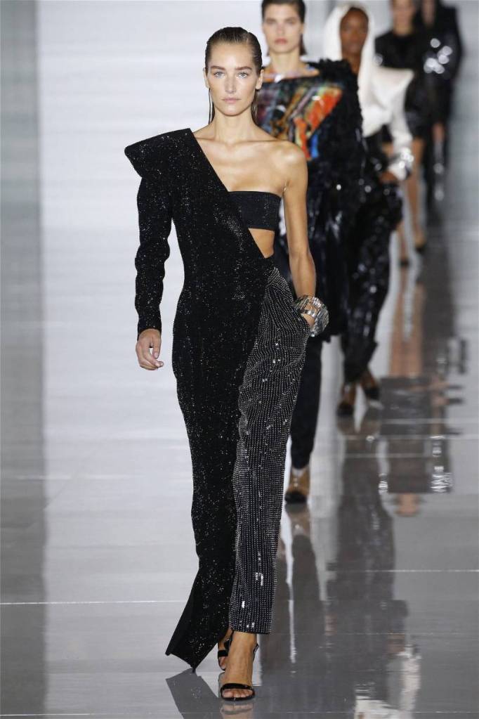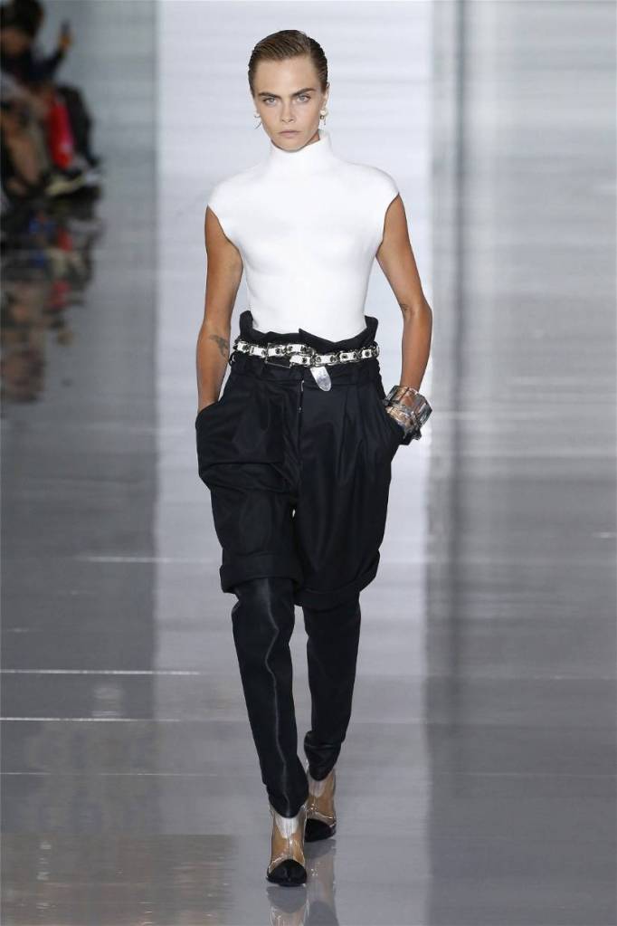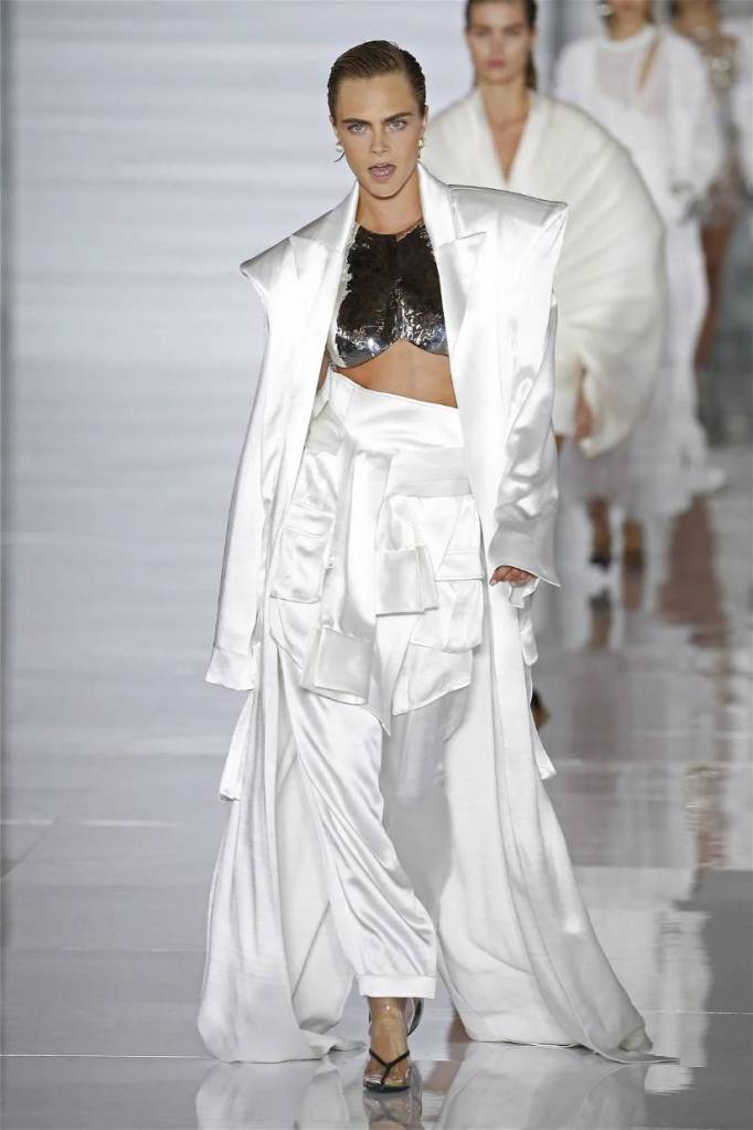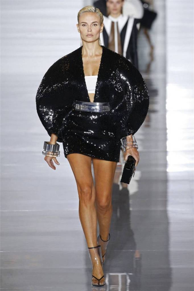 This show closed with two dramatic finale walks, the second of which saw Rousteing surrounded by his “Balmain army” of models, joyfully storming the runway to Queen’s Under Pressure. It wasn’t a special anniversary, but it felt like one, given the grandeur.
