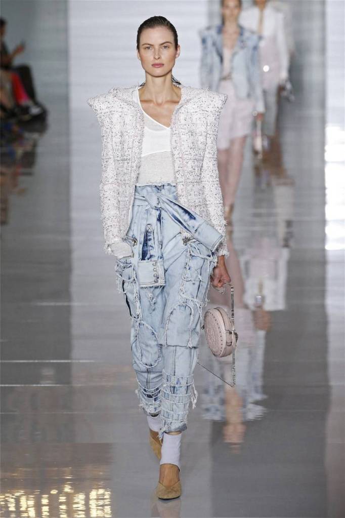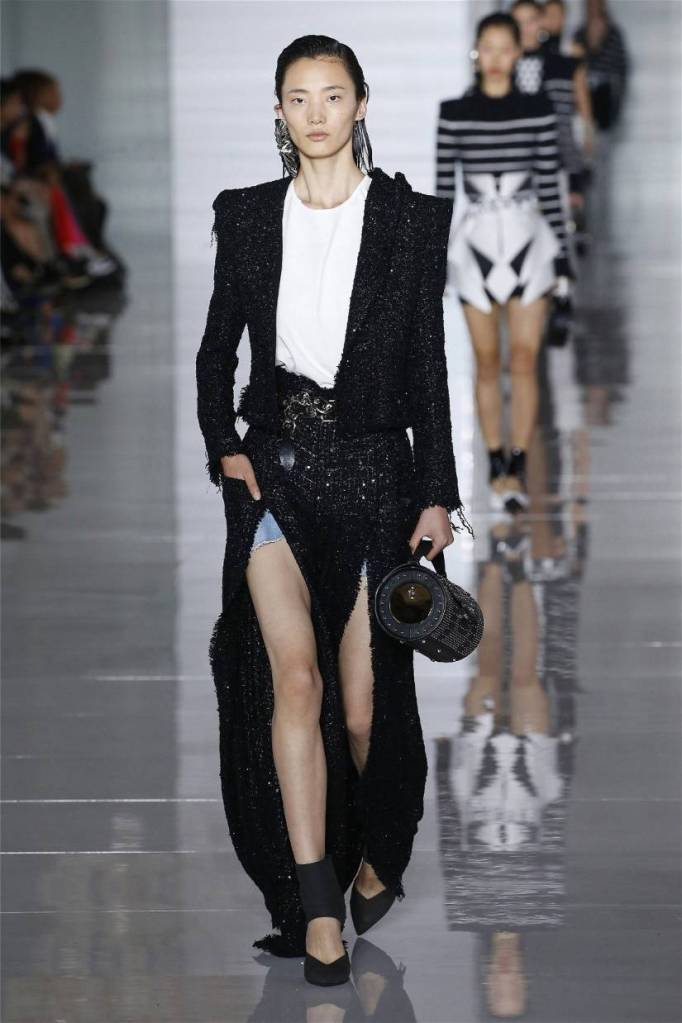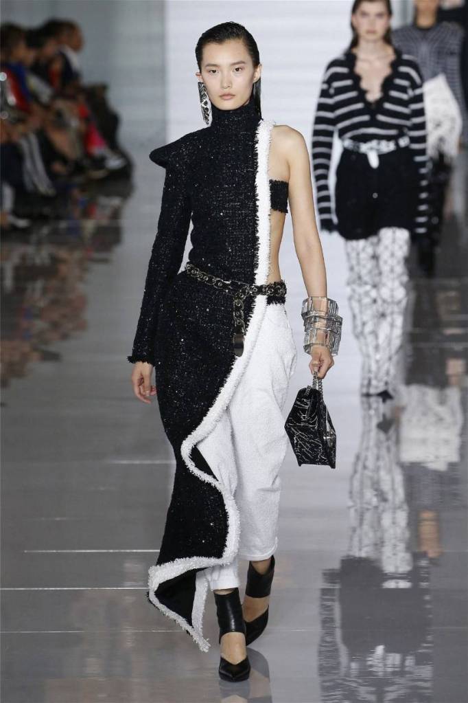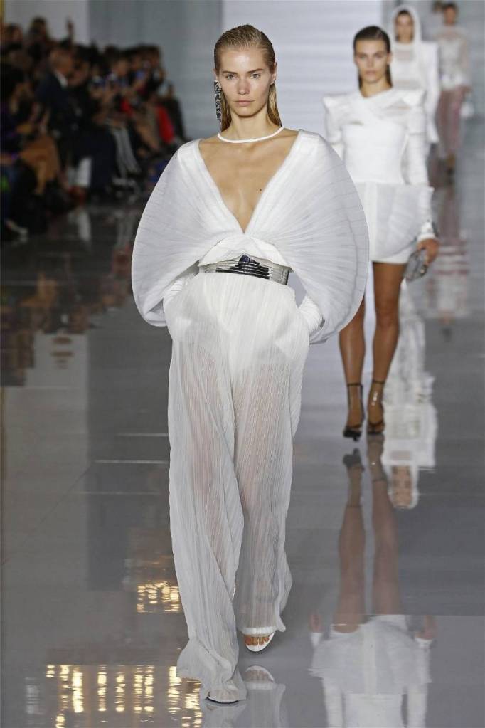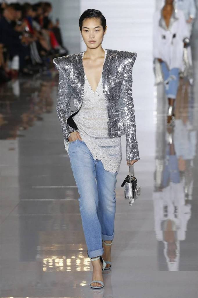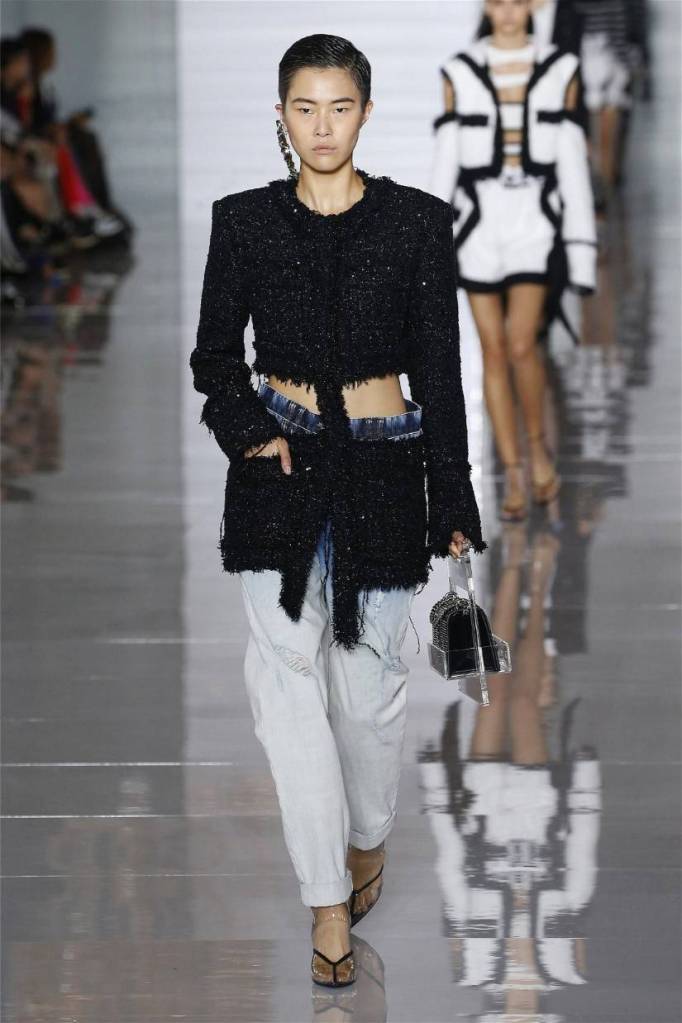 This show closed with two dramatic finale walks, the second of which saw Rousteing surrounded by his “Balmain army” of models, joyfully storming the runway to Queen’s Under Pressure. It wasn’t a special anniversary, but it felt like one, given the grandeur.
