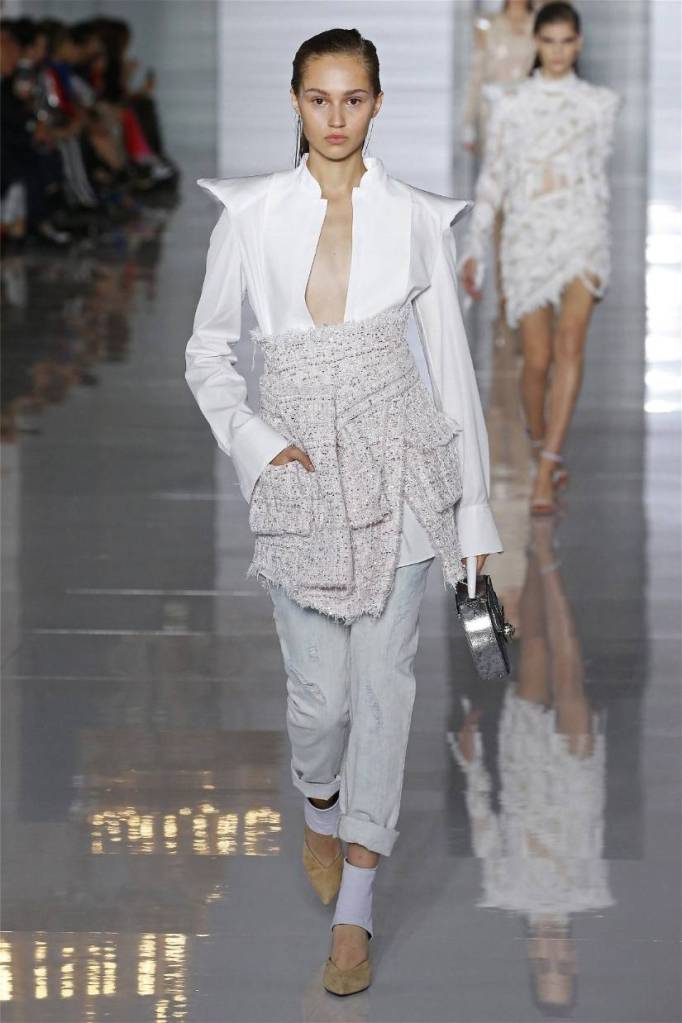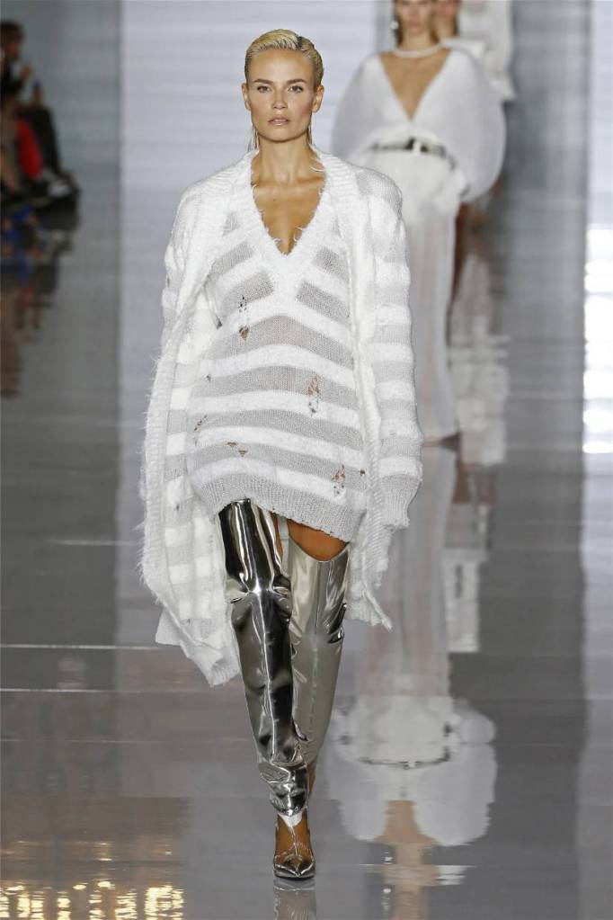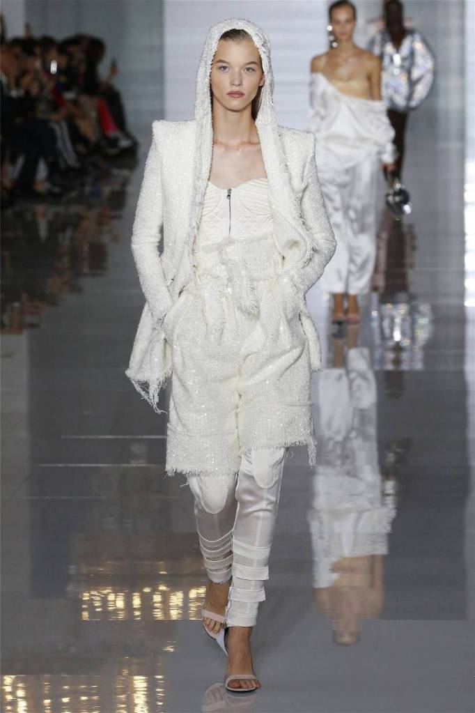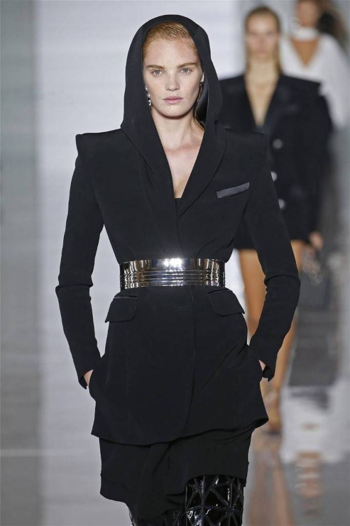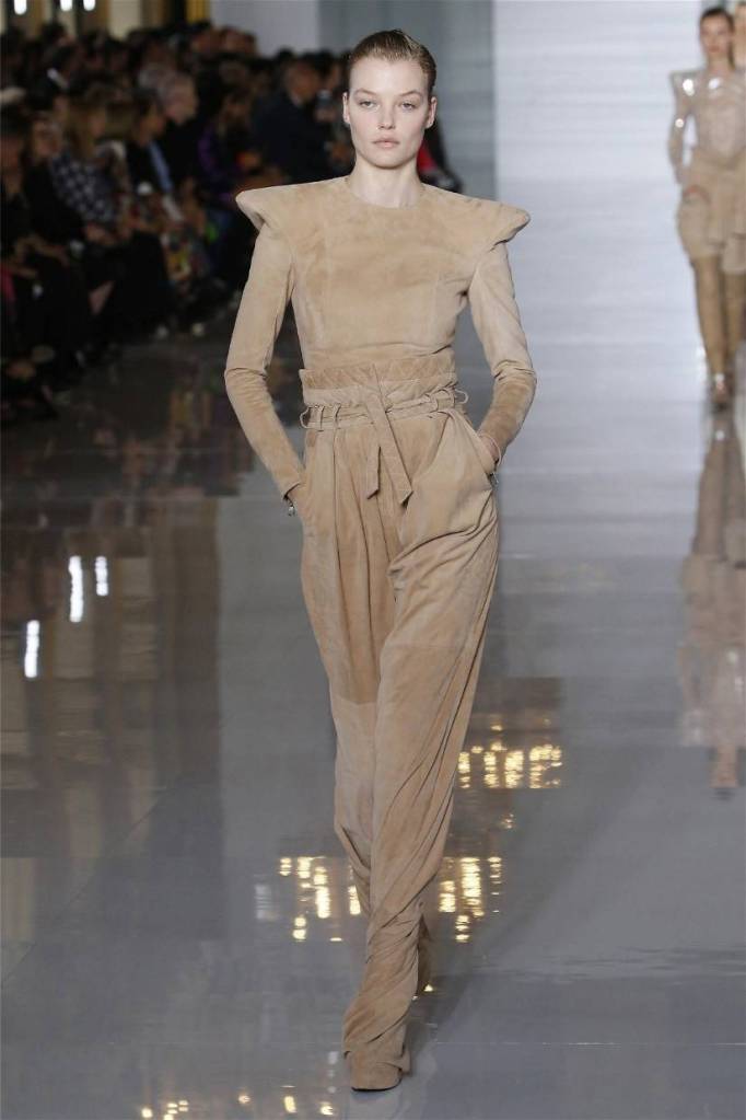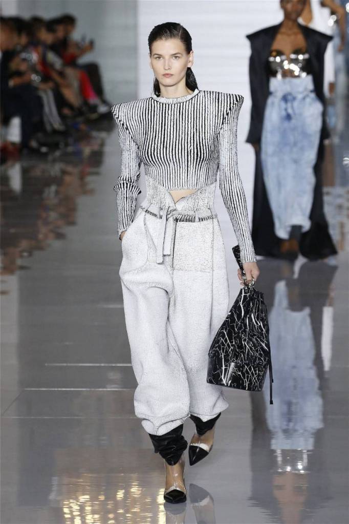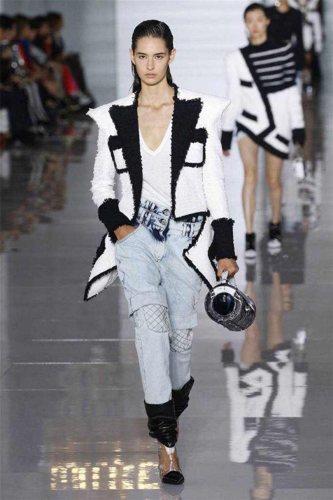 This show closed with two dramatic finale walks, the second of which saw Rousteing surrounded by his “Balmain army” of models, joyfully storming the runway to Queen’s Under Pressure. It wasn’t a special anniversary, but it felt like one, given the grandeur.