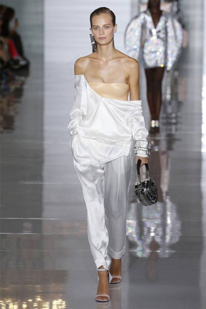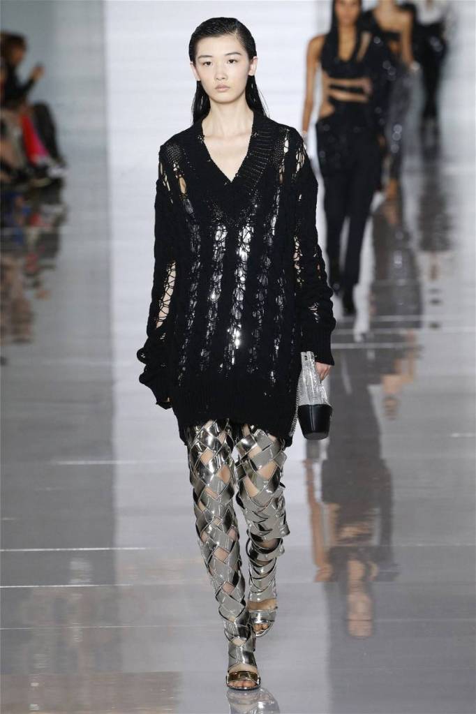 There was a playful balance between drama and elegance. Flowing silk robes and pleated dresses softened the collection’s sharp edges. The craftsmanship was outstanding, with intricate embroidery, layered textures, and materials like leather, plexiglass, and silk elevating the designs.