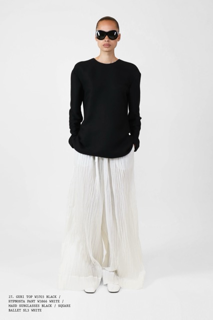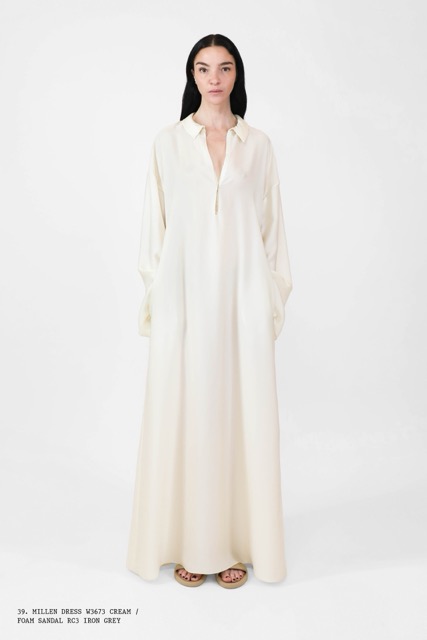 The Row focused on understated, elevated casual wear that felt both timeless and fresh. The collection featured reworked classics, such as a blue workwear jacket and a tartan dress, alongside more unexpected pieces like a red and blue checked cotton skirt paired with a yellow polo. Evening looks, including metal-embroidered dresses, hinted at future elegance. The brand’s move towards simpler, more relaxed designs, including perfect T-shirts and effortless black dresses, marked a shift. With a focus on quality, The Row continues to impress, offering chic, uncomplicated style for the billionaire wardrobe.