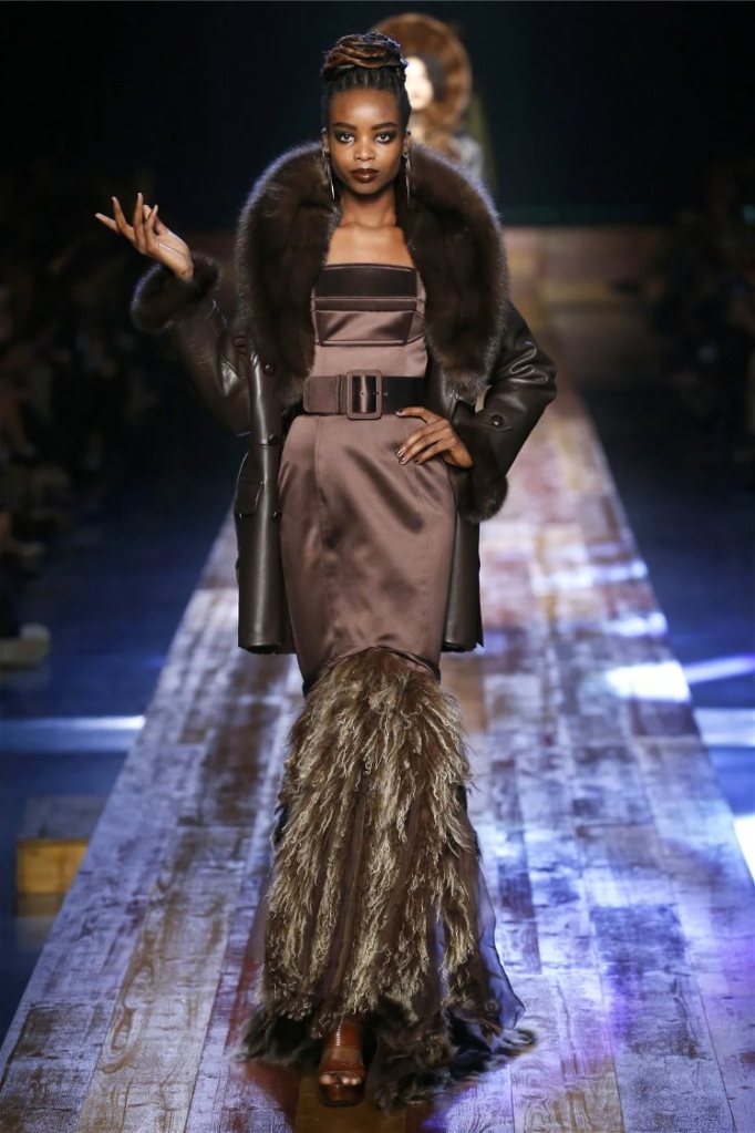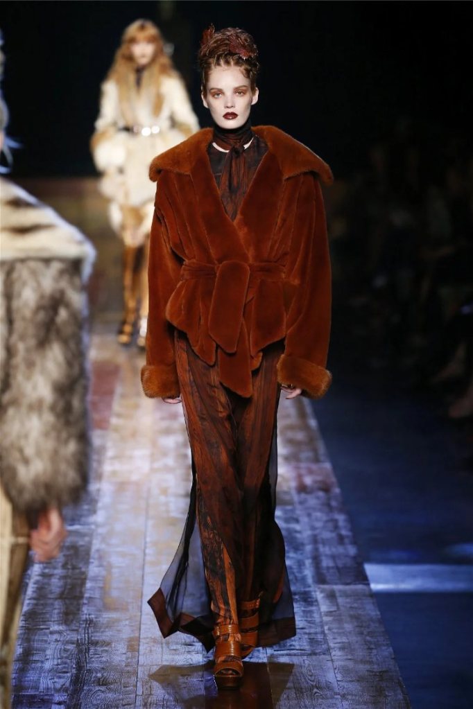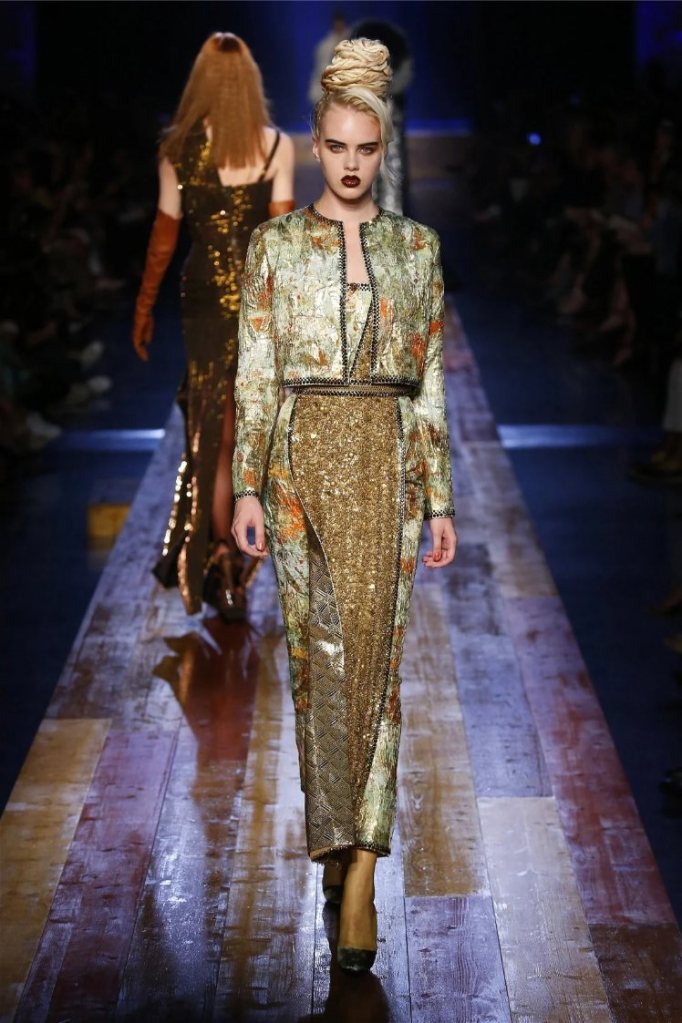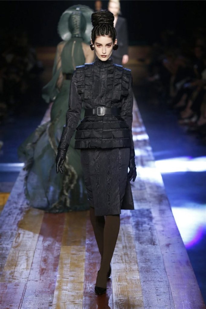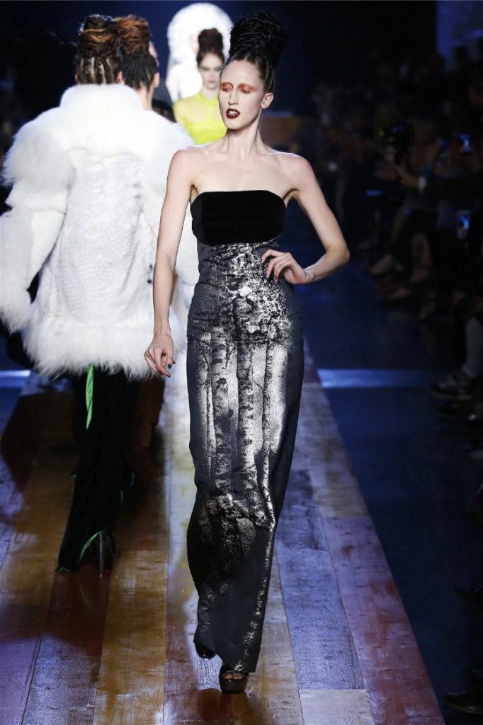 True to form, Gaultier infused the show with his signature humor and drama. Delicate petals adorned the models’ lips, and hairpieces shaped like tree roots added a touch of fantasy. While the collection captured the serene beauty of nature, it also celebrated the bold extravagance that defines haute couture.