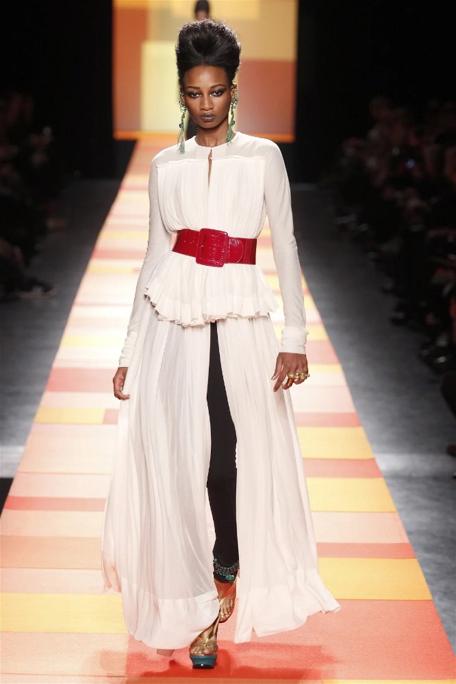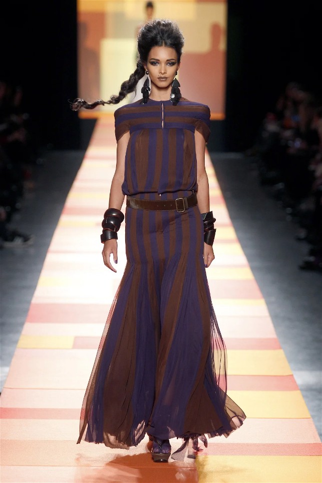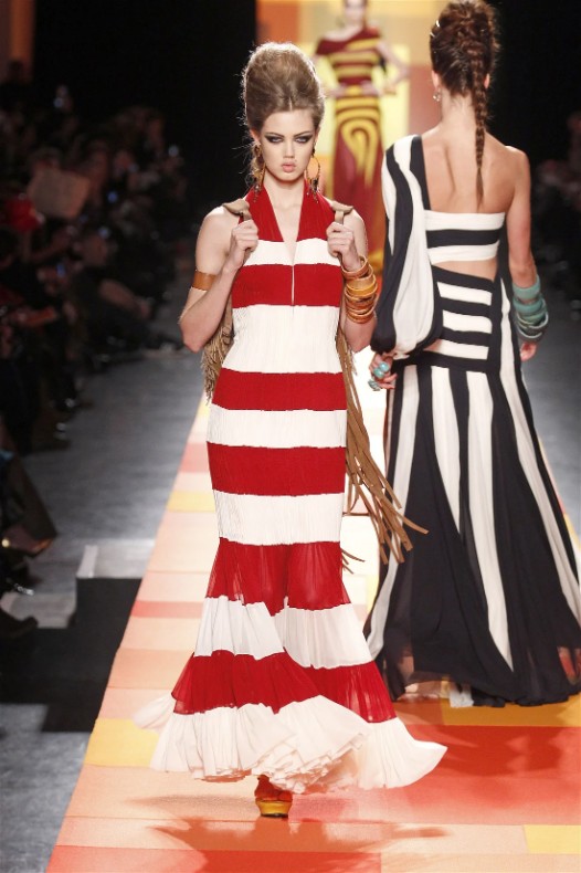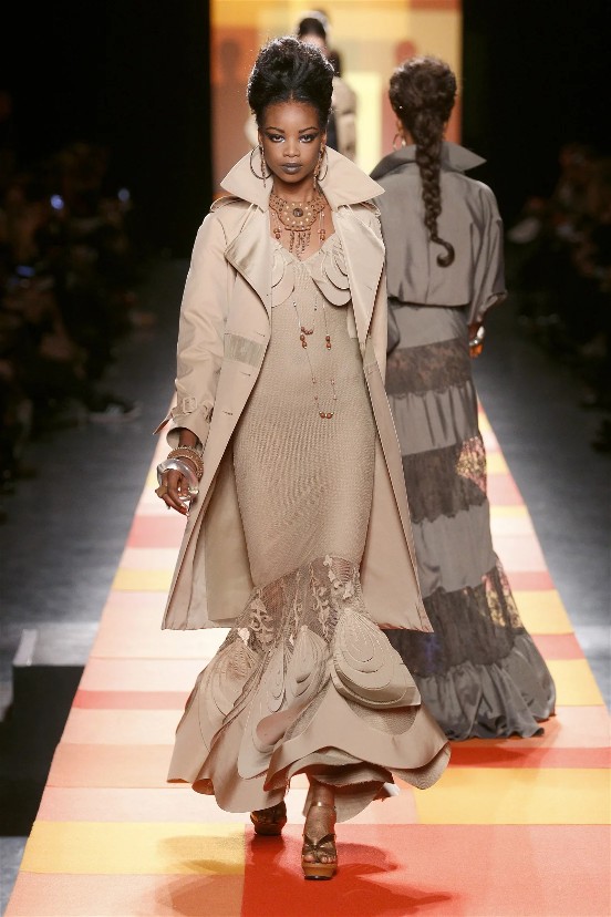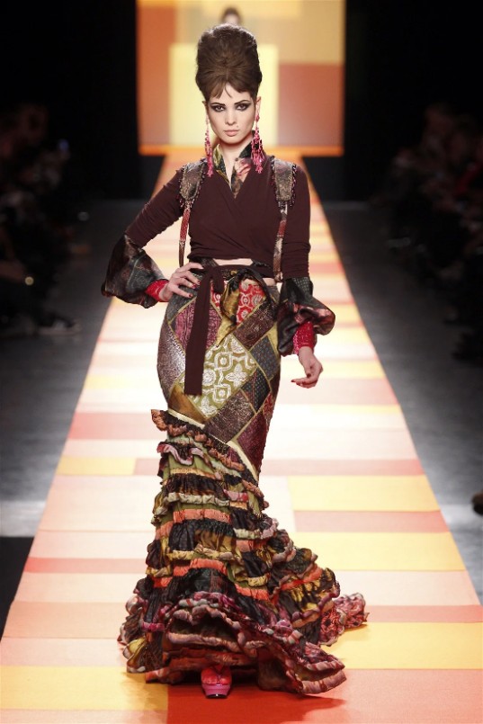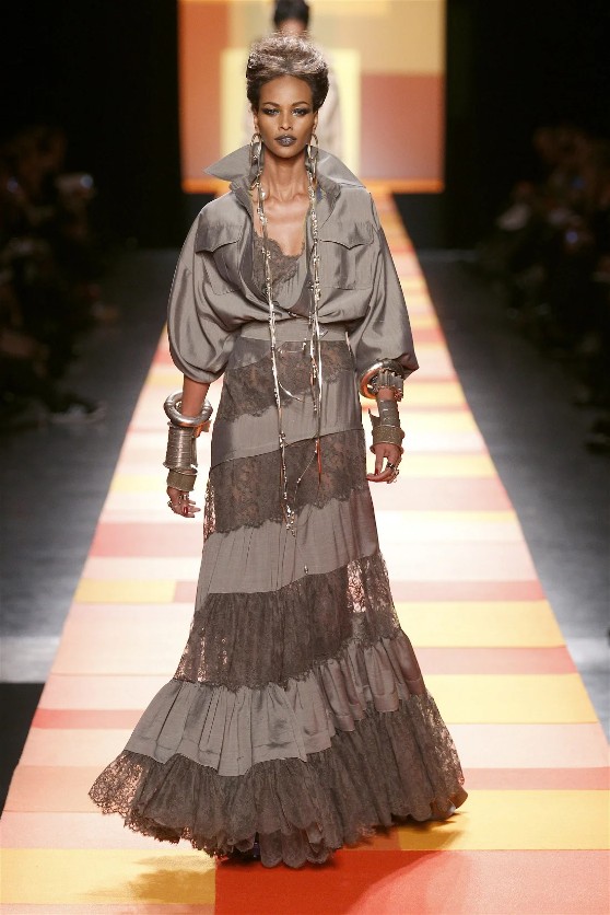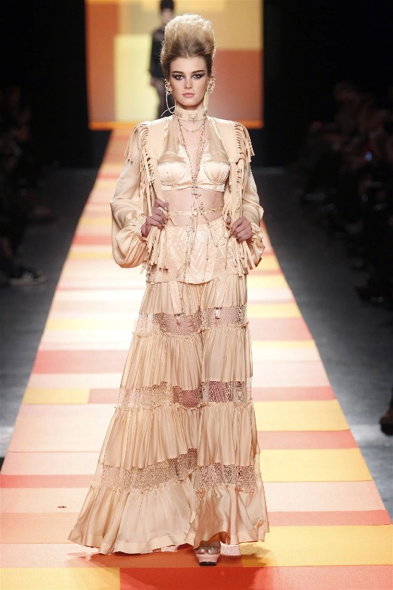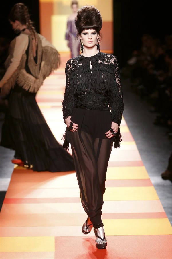 That said, some of the styling felt rooted in an earlier era. While undeniably fun, there was a dated element to the fringing, corsetry, and flamboyant layering. Yet, in typical Gaultier fashion, this didn’t detract from the collection’s charm—it added to its kooky, rebellious spirit.