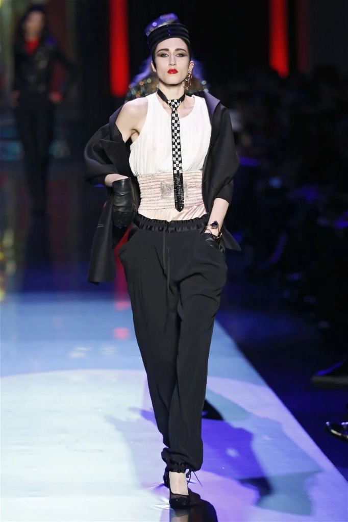 This collection was a love letter to the legendary Parisian nightclub, Le Palace. A hub of glamour and excess in the 1980s, it was where icons like Grace Jones, Mick Jagger, and Yves Saint Laurent danced the night away. Gaultier transformed his runway into a recreation of the club’s doors, complete with models sipping champagne, smoking, and exuding carefree joy.