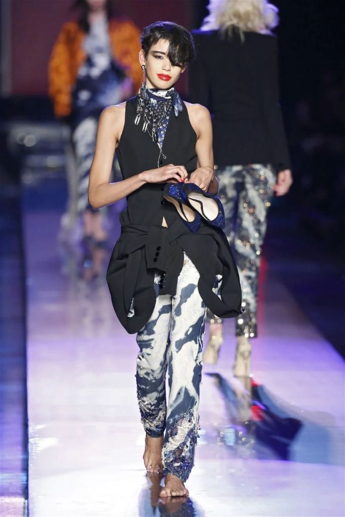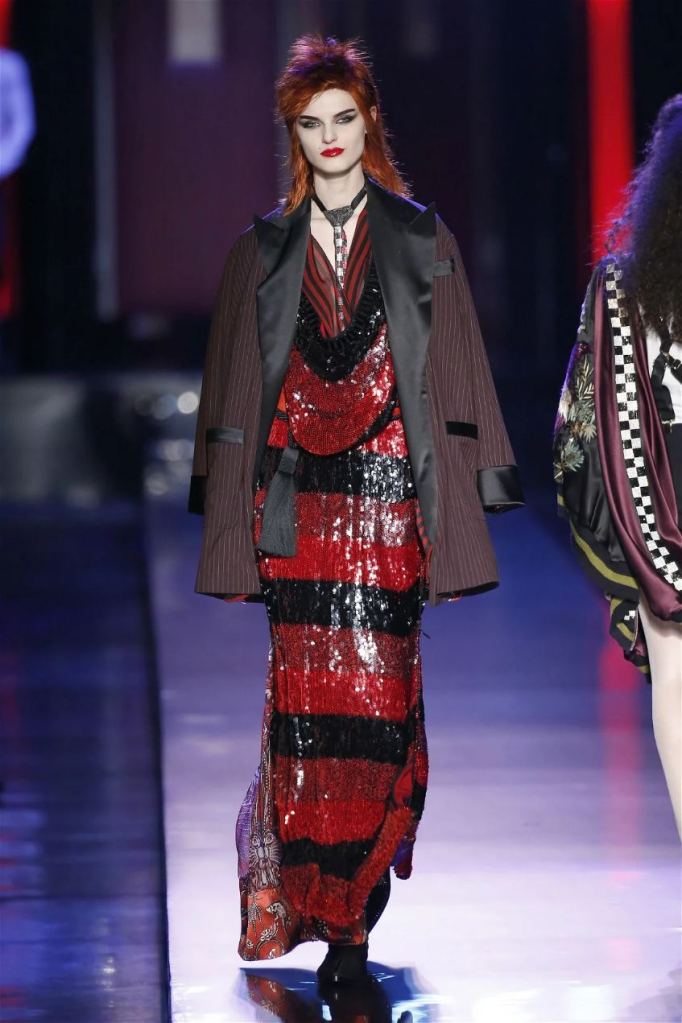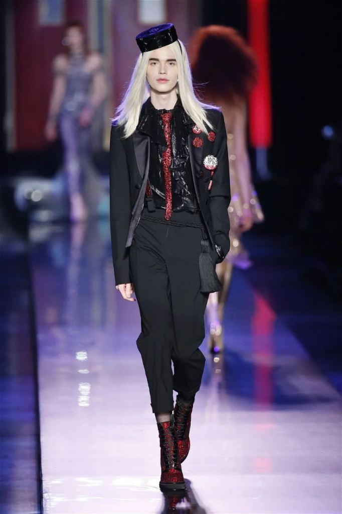 Accessories, too, were playful and bold—pillbox hats, leather gloves, and beaded scarves stood out. Hairstyles ranged from punk-inspired crops to teased, voluminous locks. Gaultier’s tribute wasn’t just fashion; it was a celebration of individuality and the joy of dressing up. This collection wasn’t just couture; it was a glittering, wearable party.