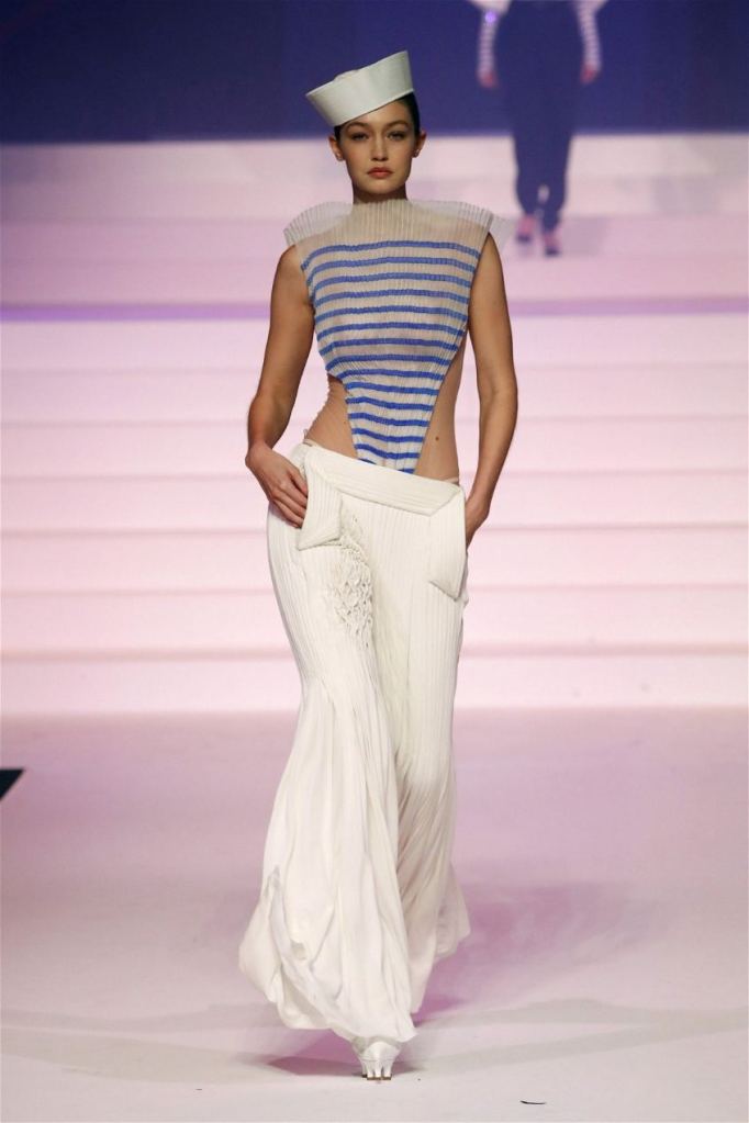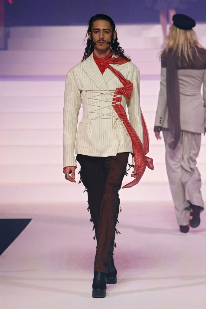 The runway was a star-studded affair, featuring supermodels like Bella and Gigi Hadid, Karen Elson, and Paris Jackson. Surprise performances by Boy George and appearances by longtime muses like Dita von Teese made it a true celebration of his legacy. Gaultier’s innovative approach to fashion, from championing diversity to redefining gender norms, leaves an indelible mark on the industry.