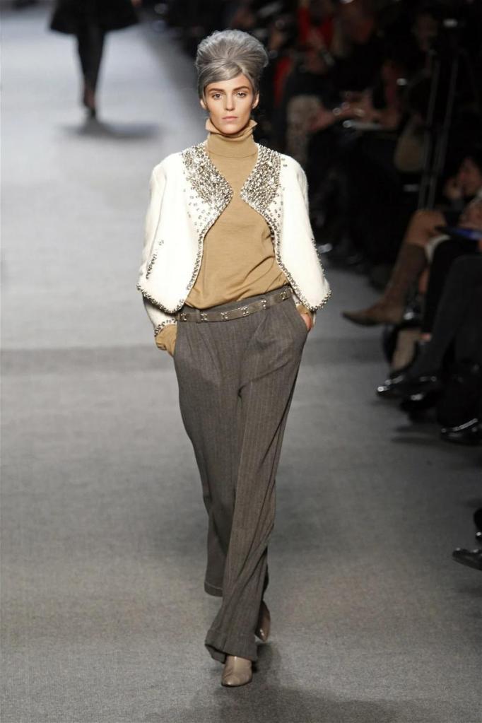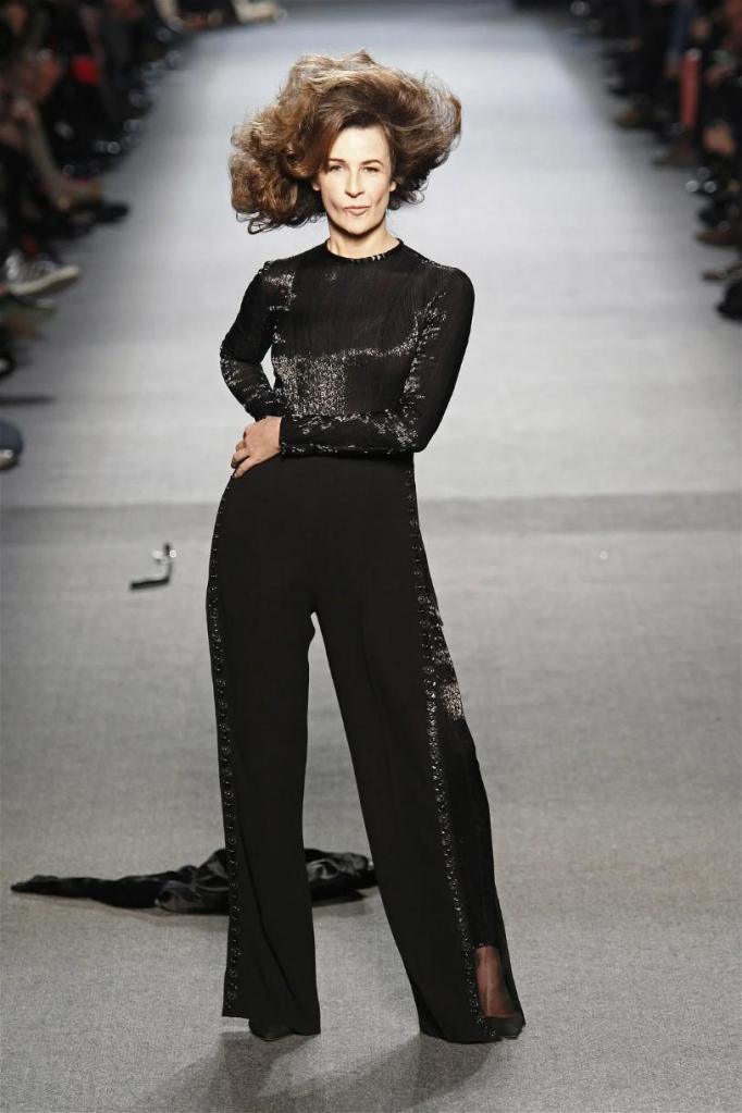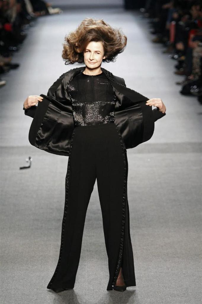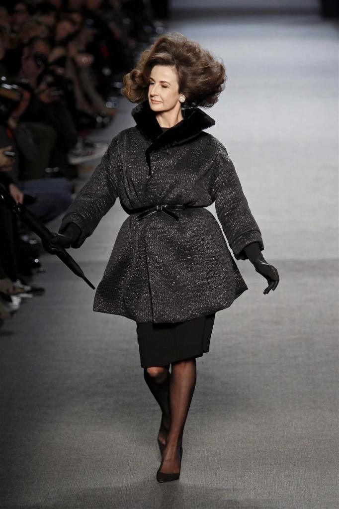 The message was clear: fashion is ageless. French comedian Valérie Lemercier opened the show, dramatically tossing her scarf mid-walk, setting the tone for the models who followed suit, discarding their elegant trenches and bouclé jackets in front of the photographers. The runway became a theatrical playground, reminiscent of Dita Von Teese’s iconic striptease at a Gaultier lingerie launch.