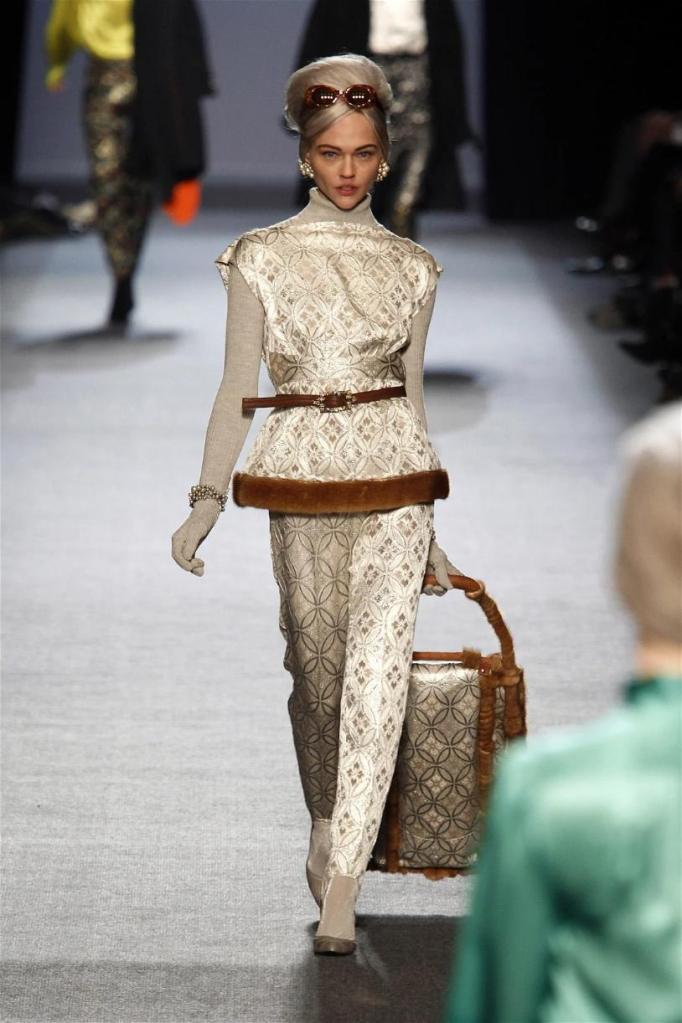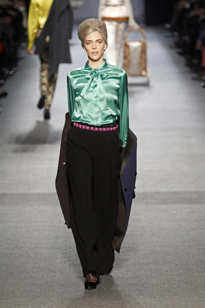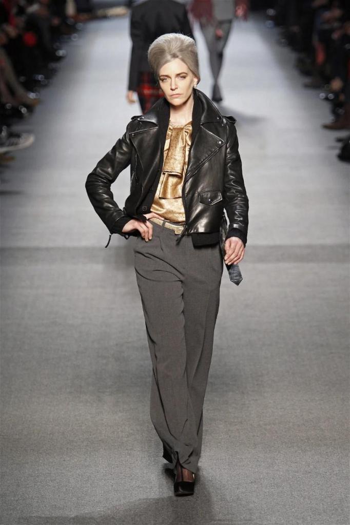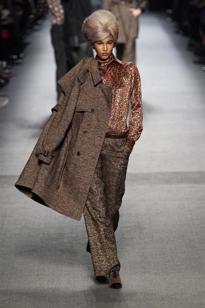 While some of the best pieces—half-leather, half-wool trench coats—landed on the floor, what remained exuded classic charm. Cameo-print blouses, pleated slacks, and other staples showcased Gaultier’s ability to reinvent timeless fashion with an edgy twist. Whether channeling Parisian chic or James Bond-inspired daring, this collection celebrated elegance with a wink of rebellion.
