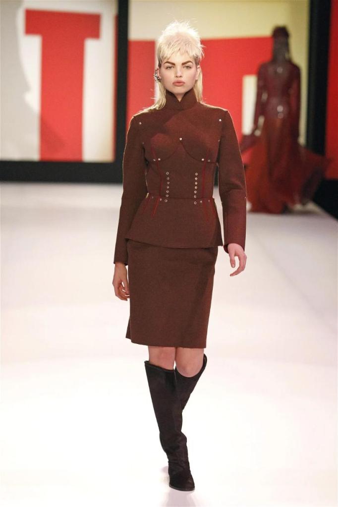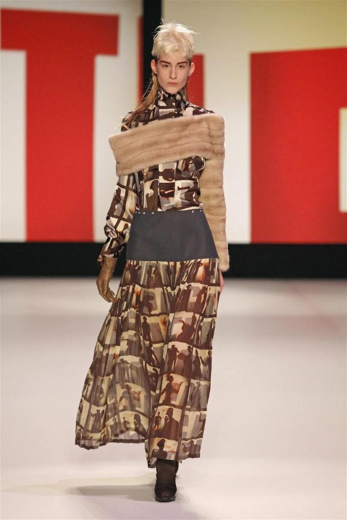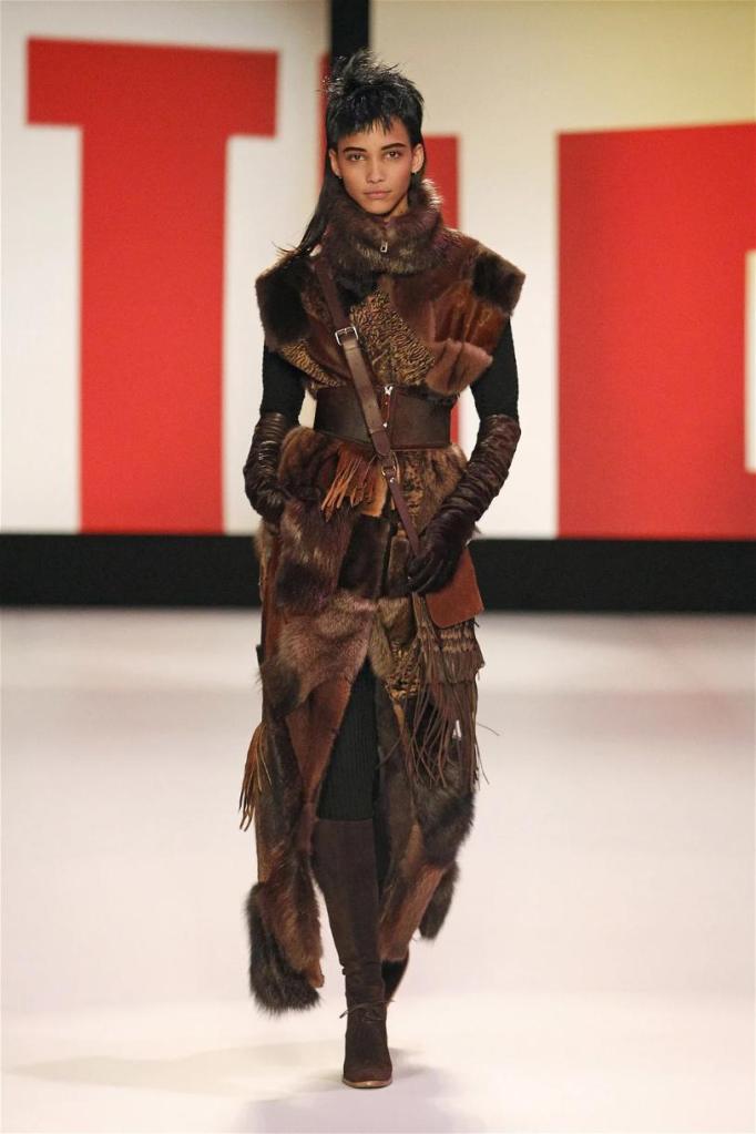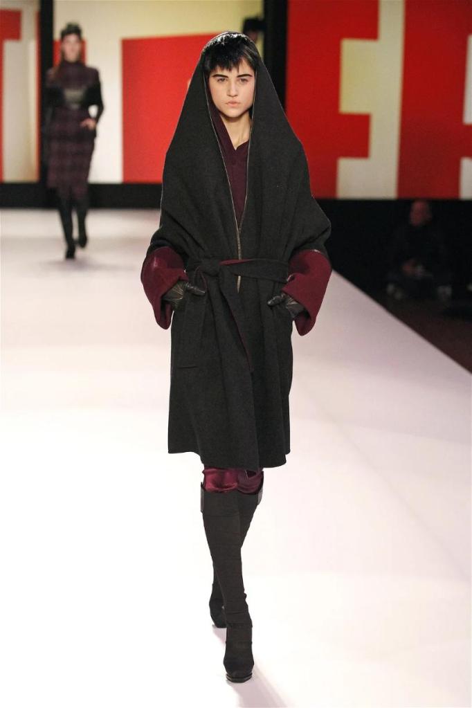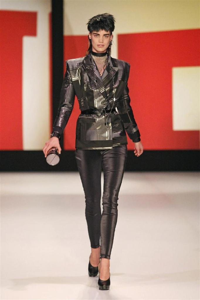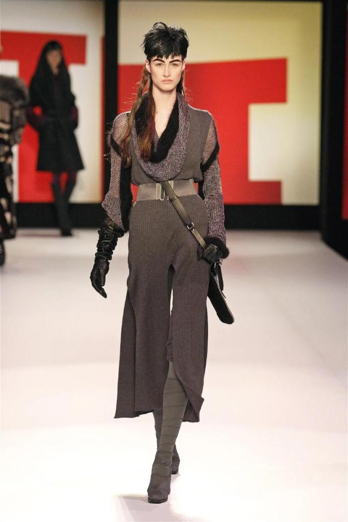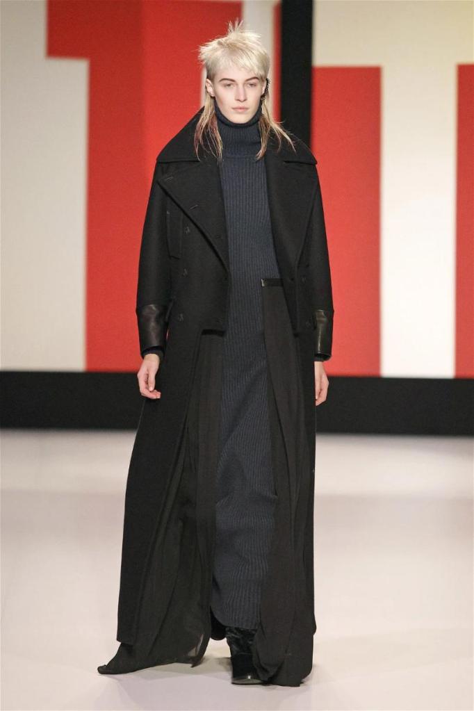 This Jean Paul Gaultier collection, showcased at the iconic Salle Wagram in Paris, was a study in contrasts, blending strength and femininity with wearable designs. Opening with bold, armor-like studded jackets paired with flowing muslin skirts, the collection set a tone of edgy elegance. Gaultier’s signature flair was evident in his masterful use of textures, with patchwork designs that incorporated felt, leather, fur, and iridescent lamés. Fur was a standout element, adding a touch of winter luxury to the collection, with dramatic coats that were both cozy and striking.