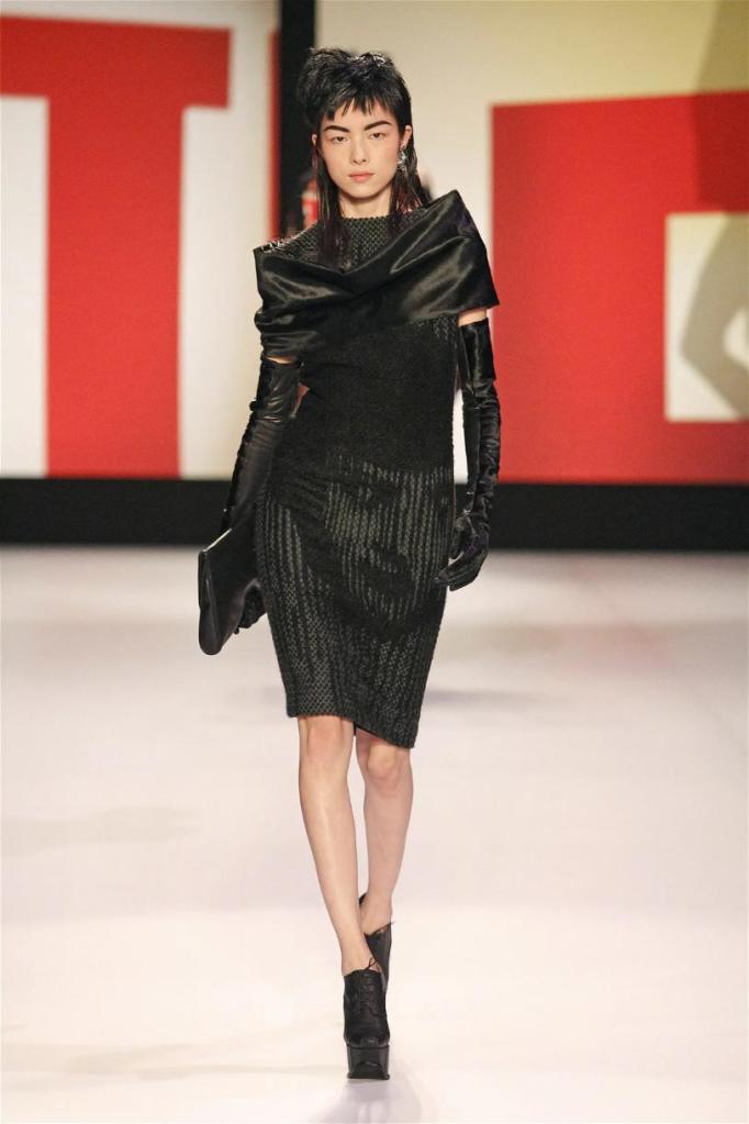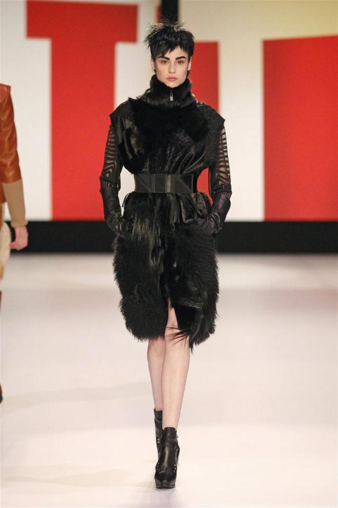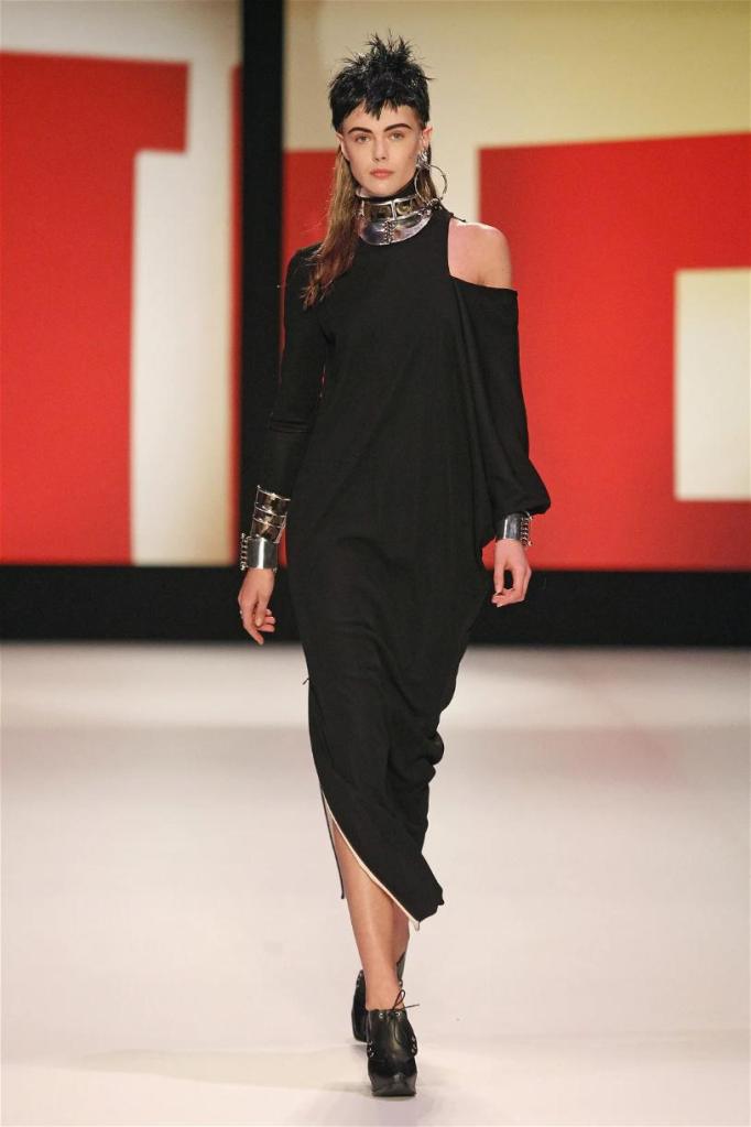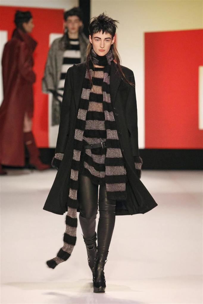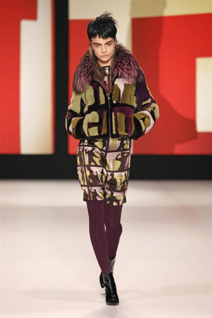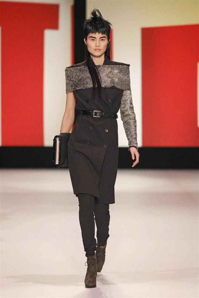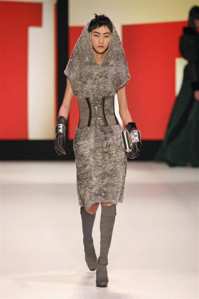 This Jean Paul Gaultier collection, showcased at the iconic Salle Wagram in Paris, was a study in contrasts, blending strength and femininity with wearable designs. Opening with bold, armor-like studded jackets paired with flowing muslin skirts, the collection set a tone of edgy elegance. Gaultier’s signature flair was evident in his masterful use of textures, with patchwork designs that incorporated felt, leather, fur, and iridescent lamés. Fur was a standout element, adding a touch of winter luxury to the collection, with dramatic coats that were both cozy and striking.