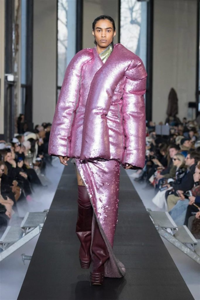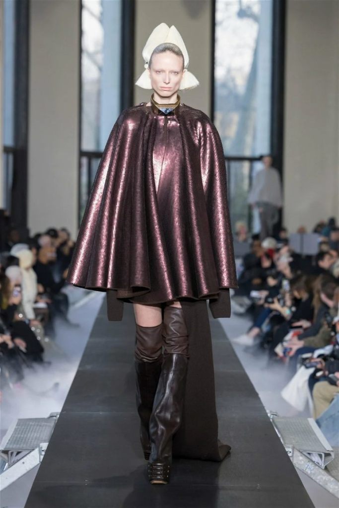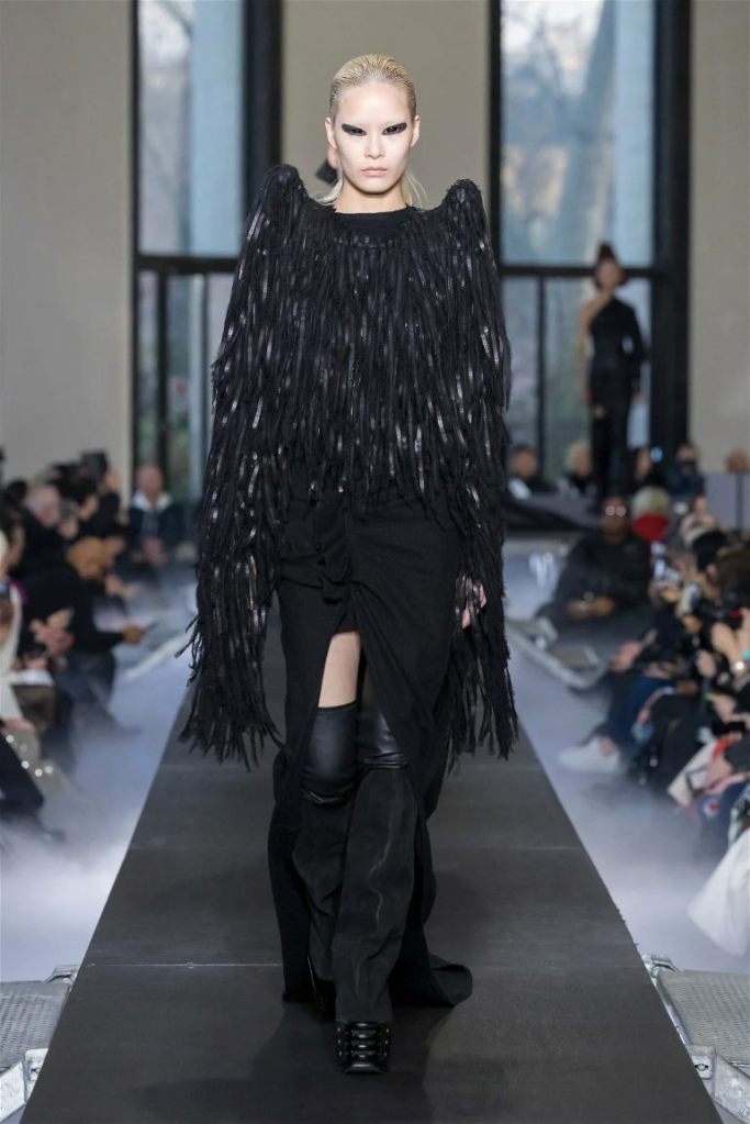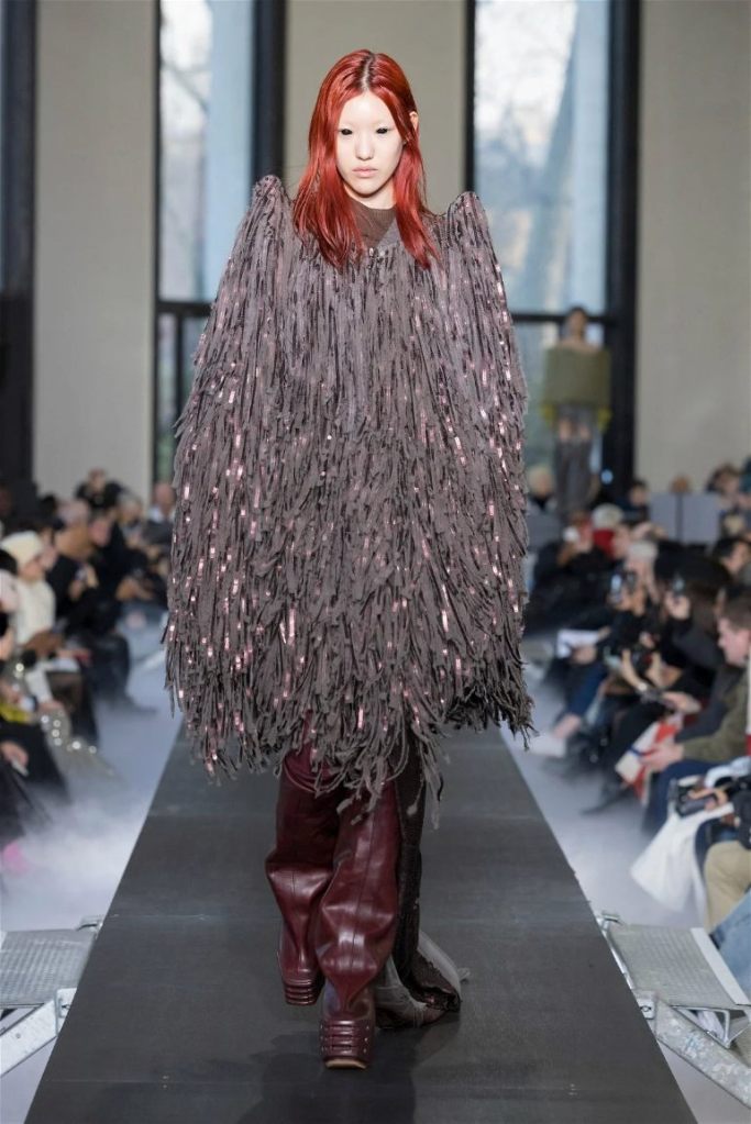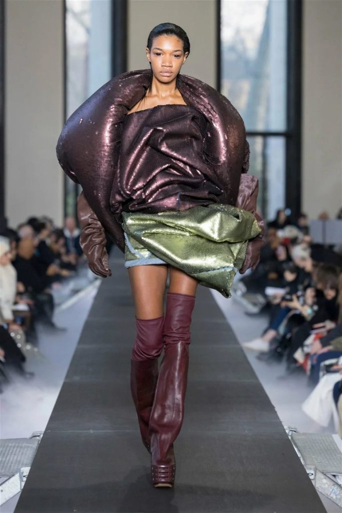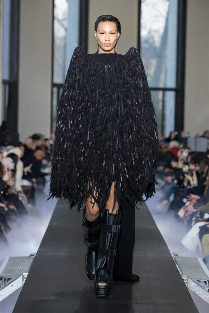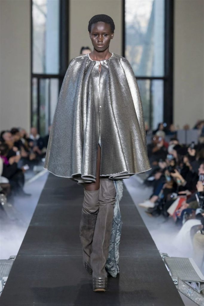 Once again, Rick Owens takes center stage in the fashion world with a collection of dramatic, lavish, and unconventional masterpieces. The designer oscillates between the beauty and darkness of our world, reflecting his vision and fusion of opposing elements in his designs. Owens aimed for his collection to be comparable to the work of photographer Richard Avedon, and he succeeded. The clothes featured voluminous silhouettes and exaggerated shoulders, which were previously only seen in dark colors, but this season they were incorporated into brighter hues such as silver, lime green, and pink sequins. Owens possesses the ability to revolutionize our ideas about clothing. His vision distinguishes outstanding fashion designers from those who simply sew garments. Simply Splendid!