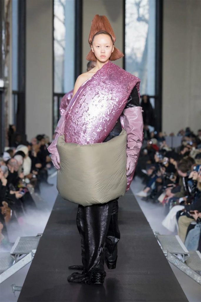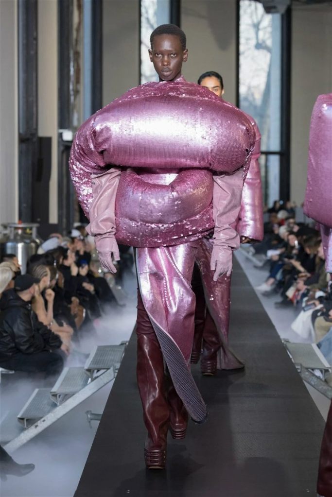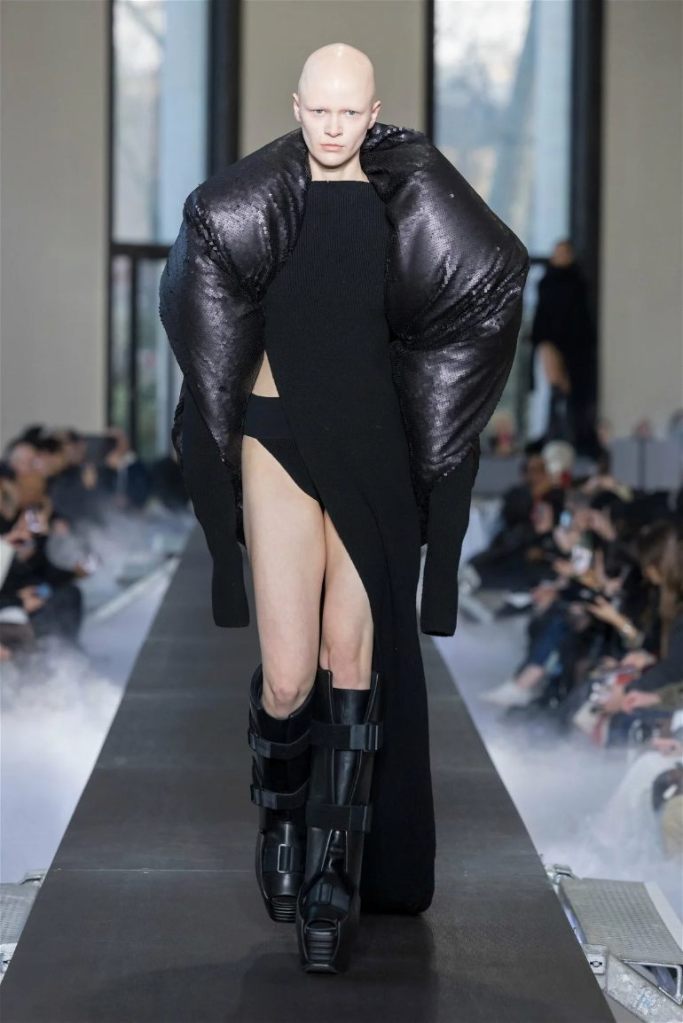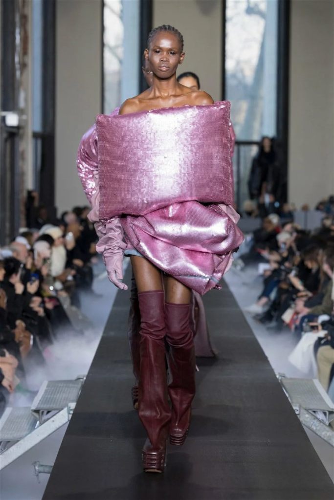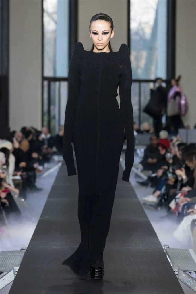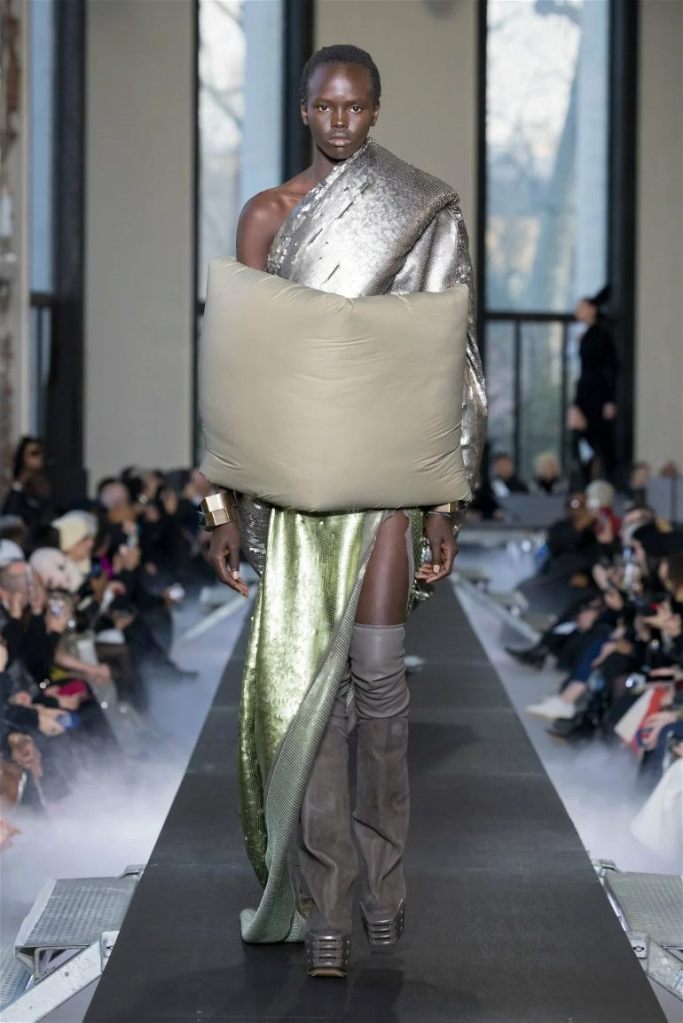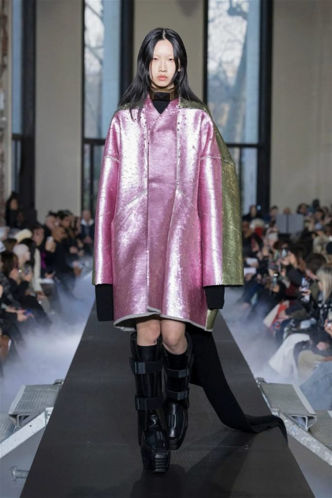 Once again, Rick Owens takes center stage in the fashion world with a collection of dramatic, lavish, and unconventional masterpieces. The designer oscillates between the beauty and darkness of our world, reflecting his vision and fusion of opposing elements in his designs. Owens aimed for his collection to be comparable to the work of photographer Richard Avedon, and he succeeded. The clothes featured voluminous silhouettes and exaggerated shoulders, which were previously only seen in dark colors, but this season they were incorporated into brighter hues such as silver, lime green, and pink sequins. Owens possesses the ability to revolutionize our ideas about clothing. His vision distinguishes outstanding fashion designers from those who simply sew garments. Simply Splendid!