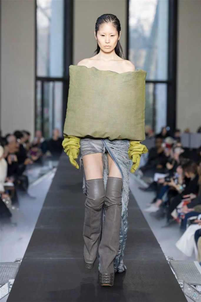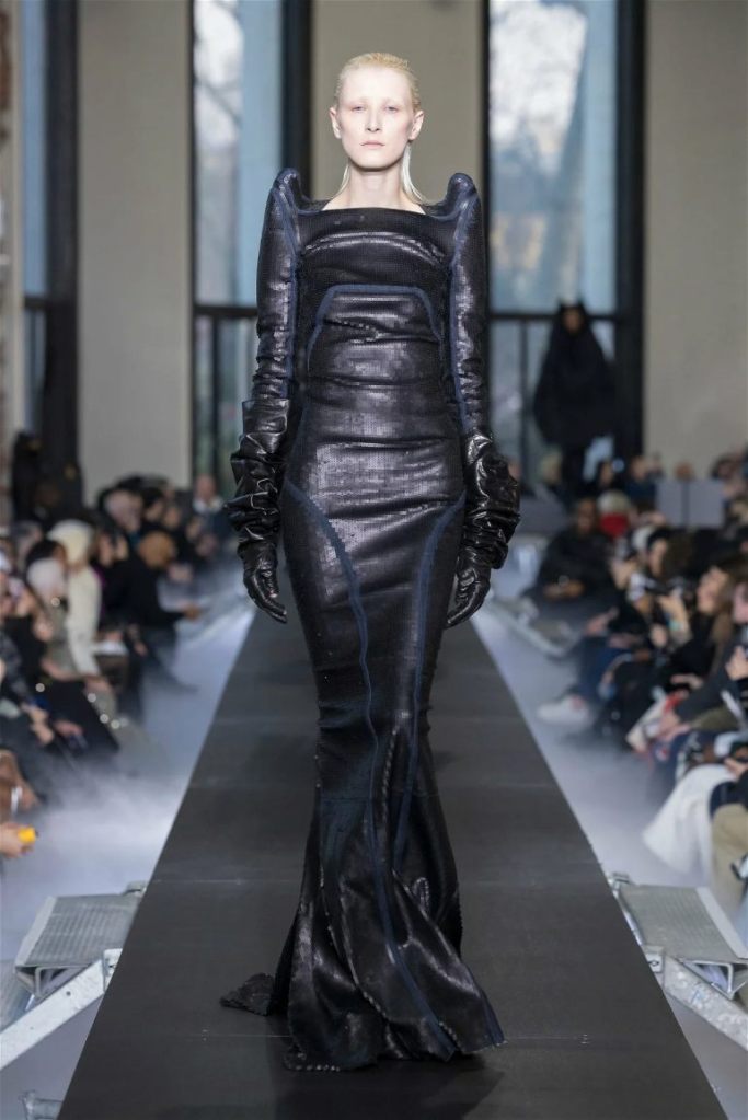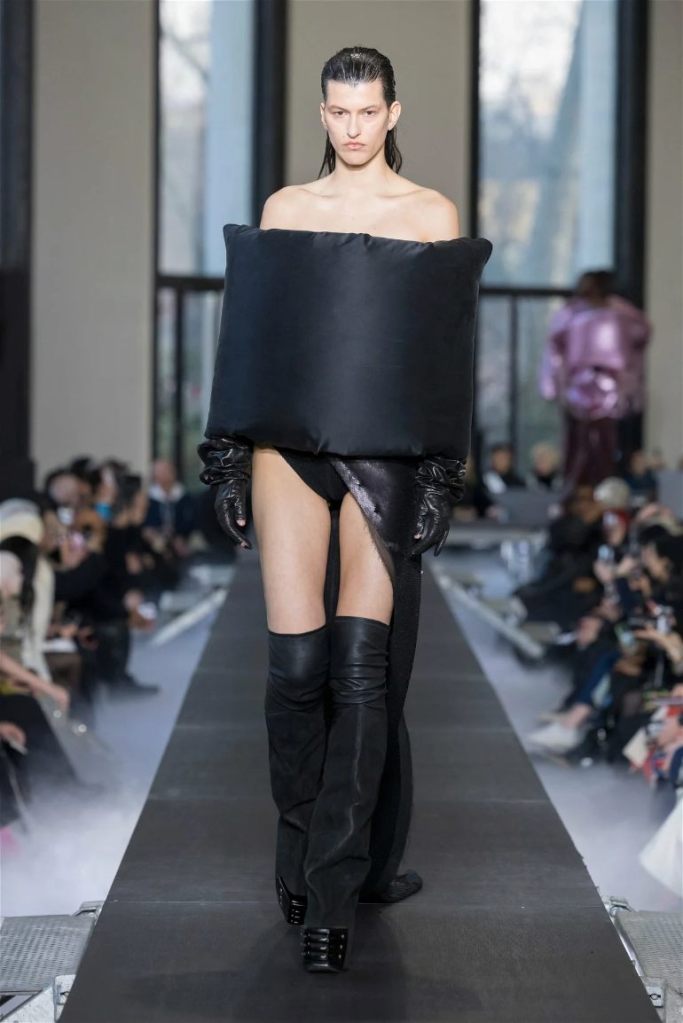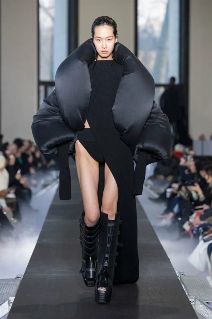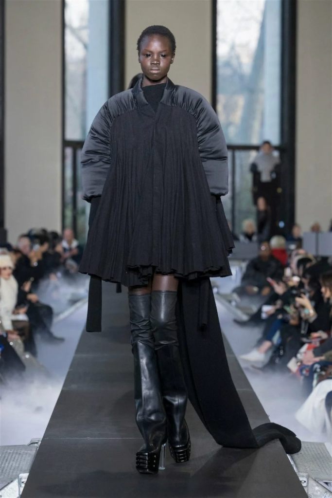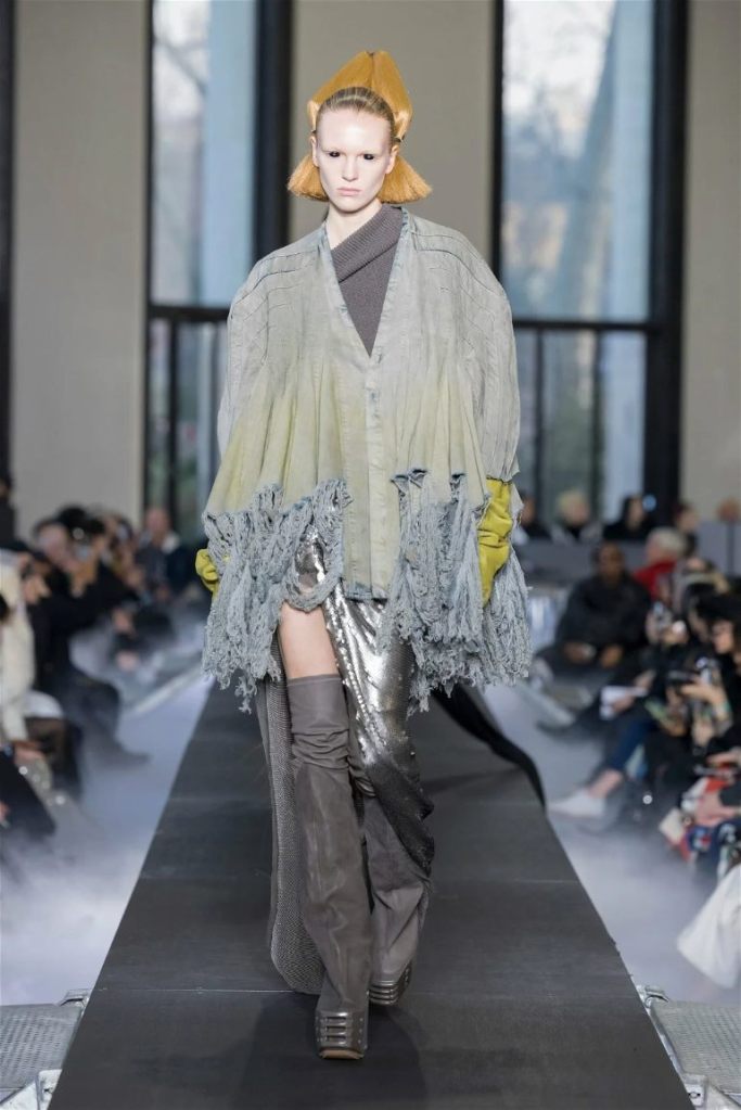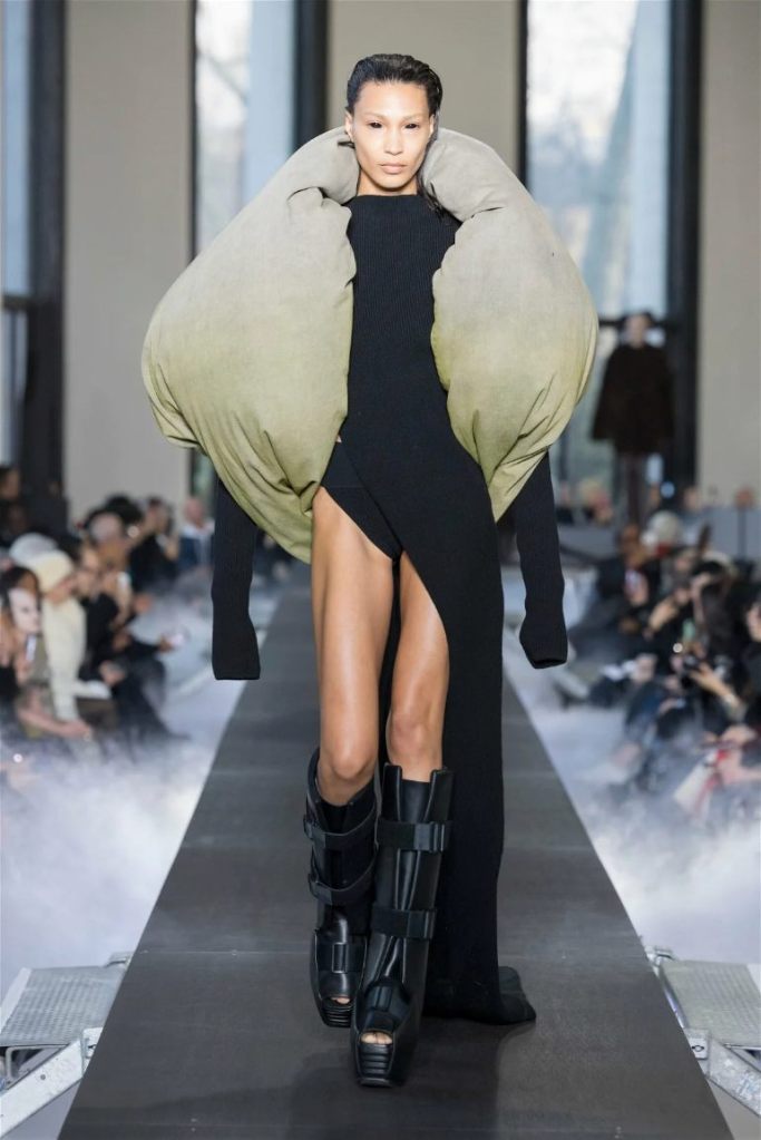 Once again, Rick Owens takes center stage in the fashion world with a collection of dramatic, lavish, and unconventional masterpieces. The designer oscillates between the beauty and darkness of our world, reflecting his vision and fusion of opposing elements in his designs. Owens aimed for his collection to be comparable to the work of photographer Richard Avedon, and he succeeded. The clothes featured voluminous silhouettes and exaggerated shoulders, which were previously only seen in dark colors, but this season they were incorporated into brighter hues such as silver, lime green, and pink sequins. Owens possesses the ability to revolutionize our ideas about clothing. His vision distinguishes outstanding fashion designers from those who simply sew garments. Simply Splendid!