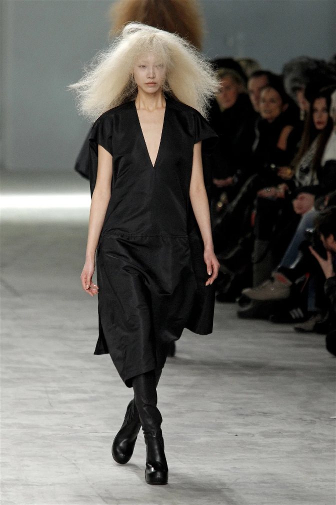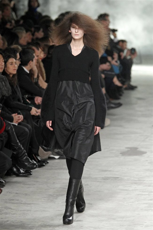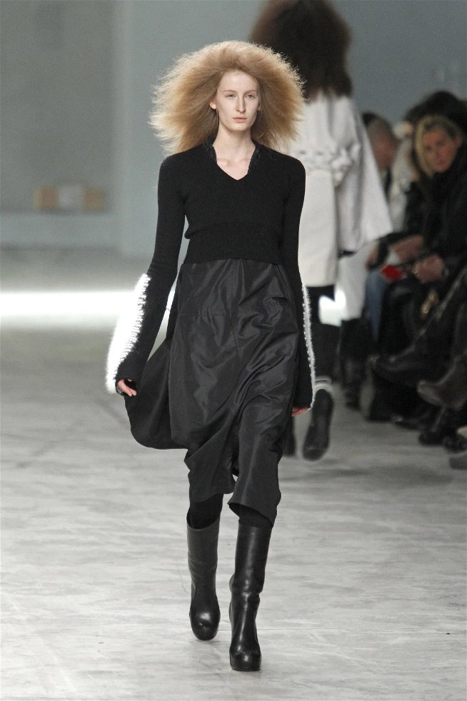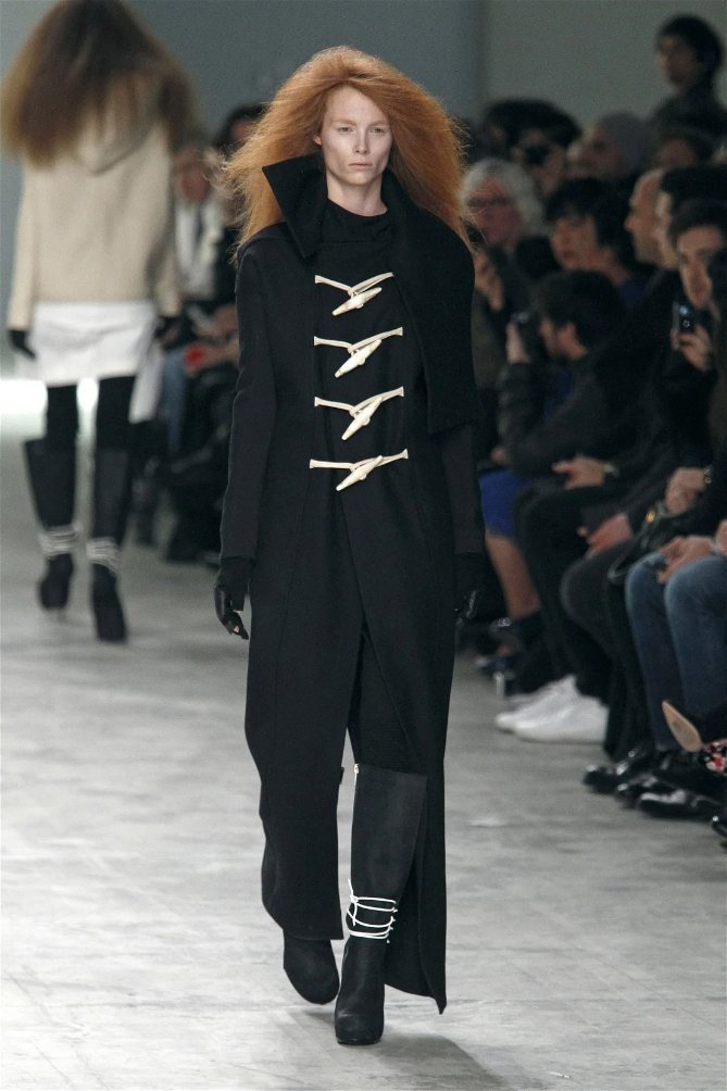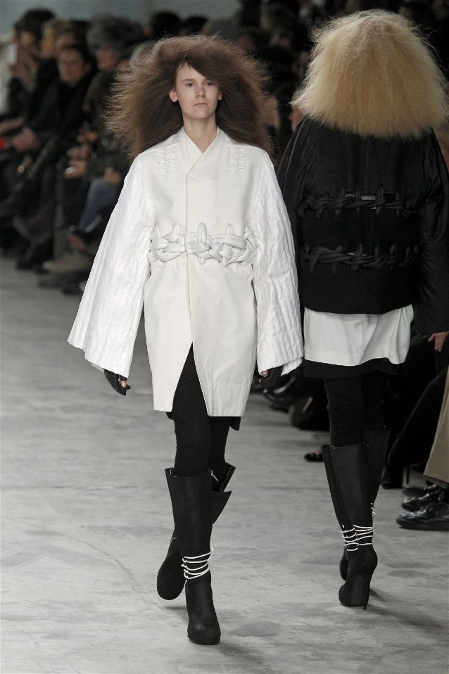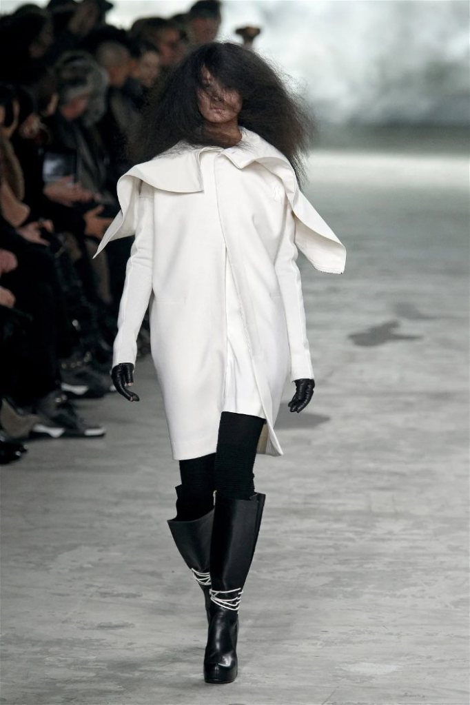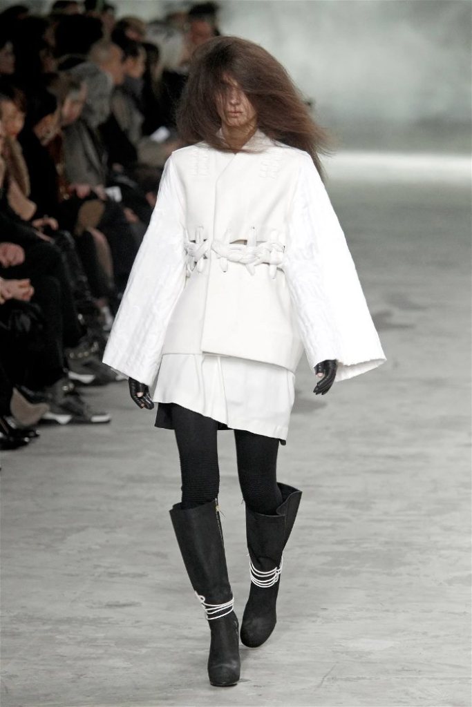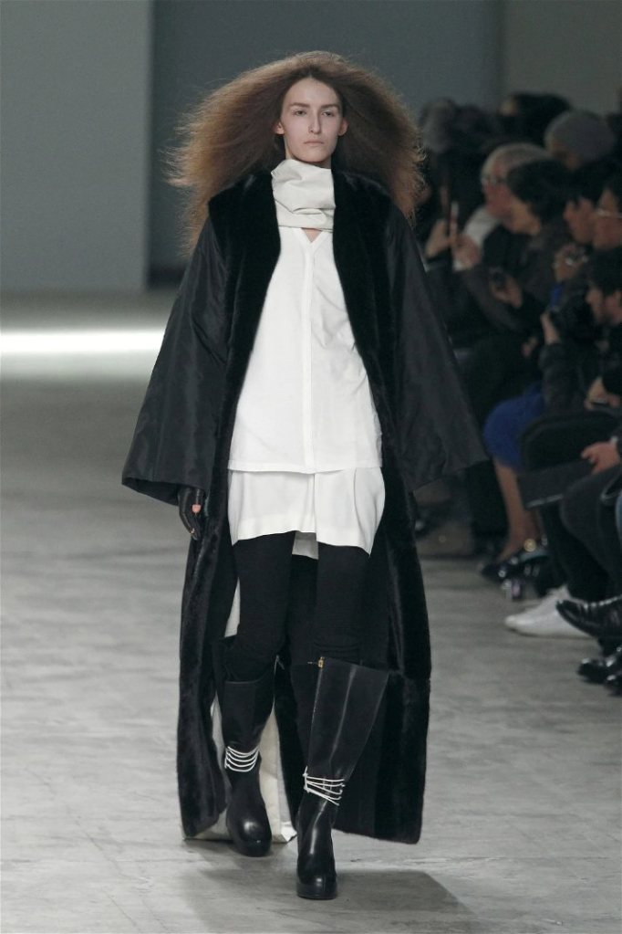 Owens brings in Japanese influences, playing with textures and volumes to create something both bold and beautiful. The show began with steam billowing from behind the models, who stepped out with tousled hair, adding an ethereal touch to the clothing. The pieces focused on layering and volume, with floor-length silhouettes and oversized kimono sleeves. Some of the coats featured unzipped hoods, which draped like soft ruffles, adding a graceful, yet powerful vibe.