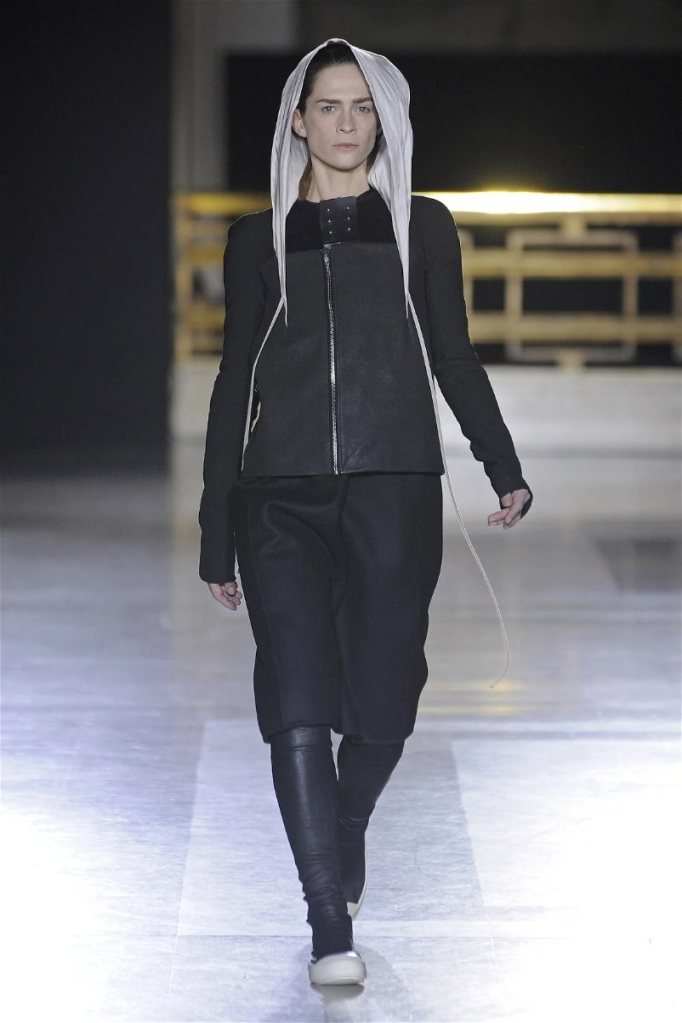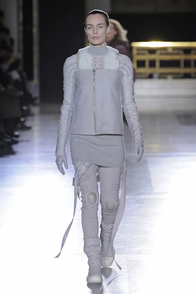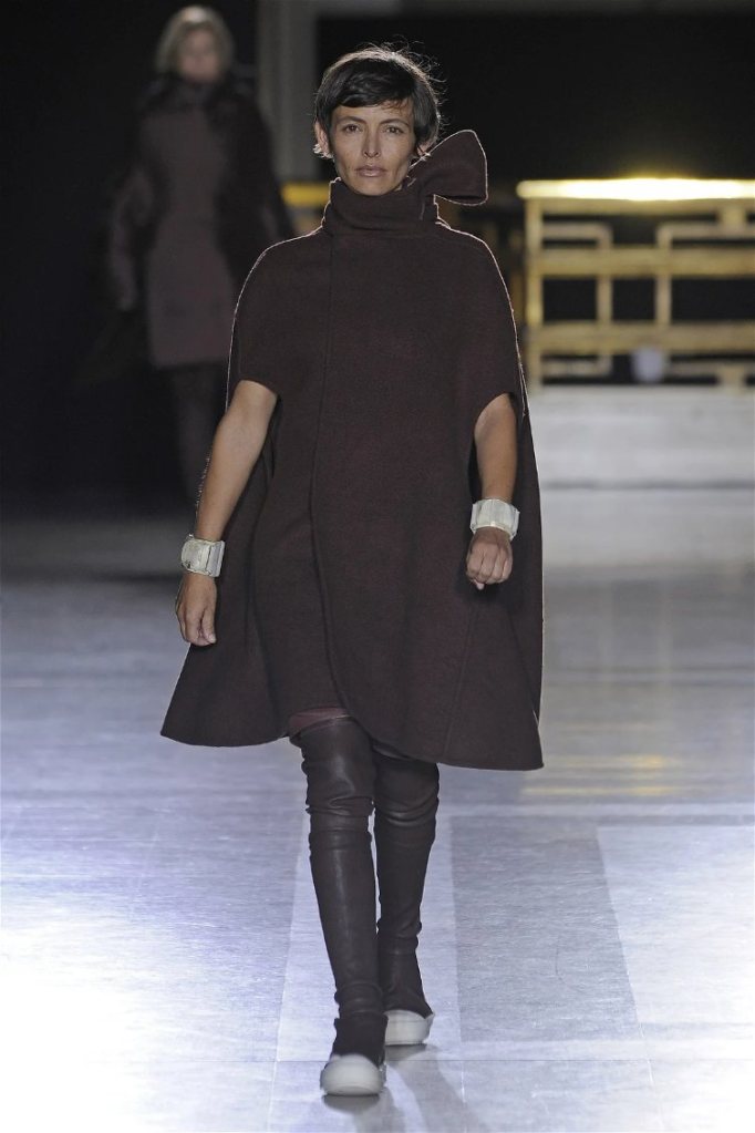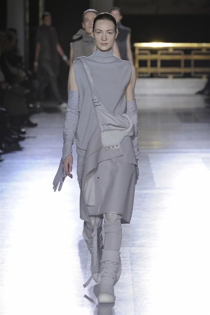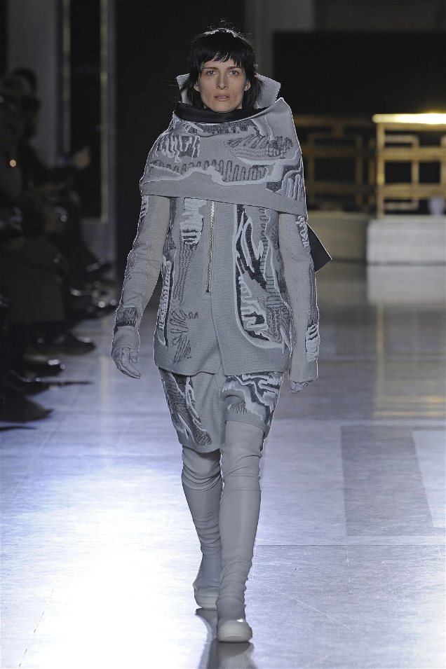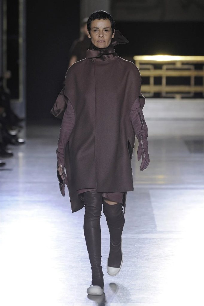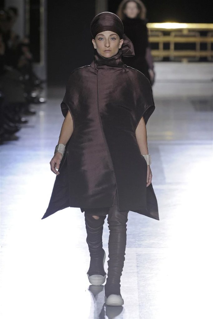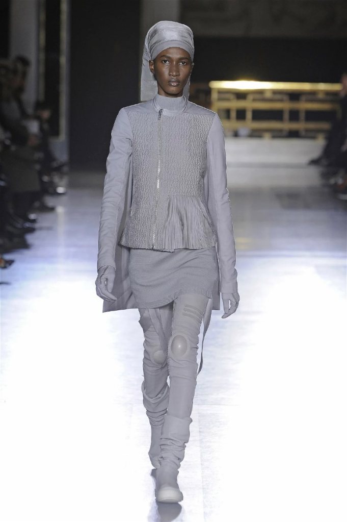The clothes themselves embraced comfort and warmth—think cocooning capes, soft fabrics, and plush onesies. While Owens’ past shows have been known for their edginess, this collection offered something gentler, with a focus on love, protection, and communication. There was still an element of the warrior in the looks, with bold pieces like croc-printed shifts and motocross leather pants, but they were balanced by an overarching theme of family and unity. This collection is a testament to Owens’ ability to blend darkness with beauty,