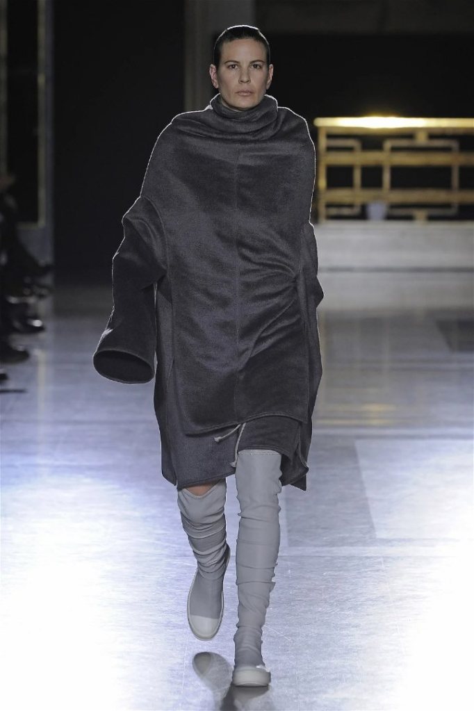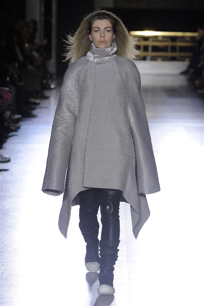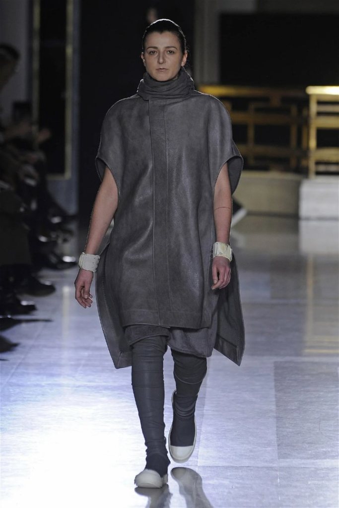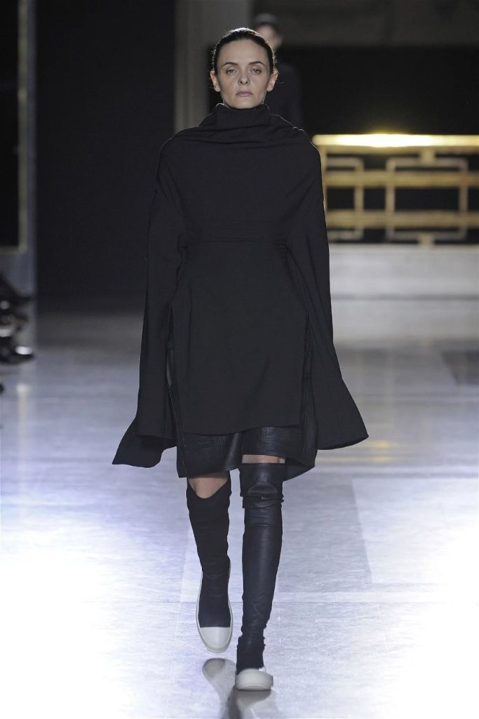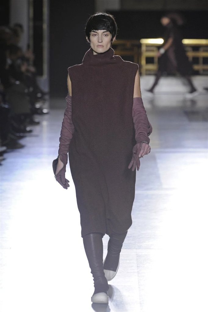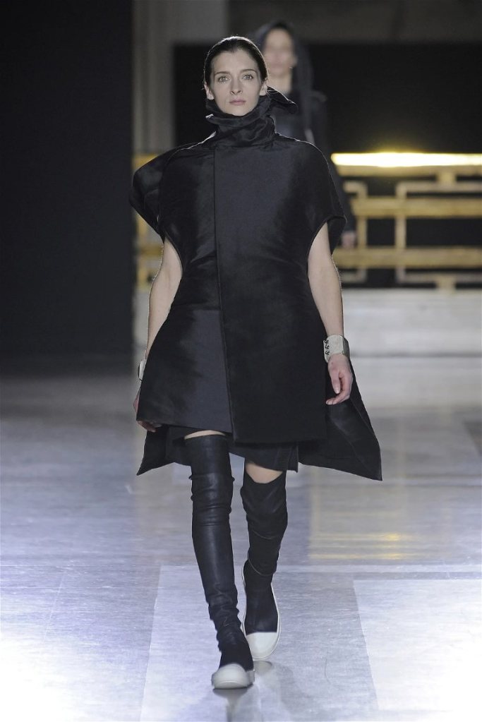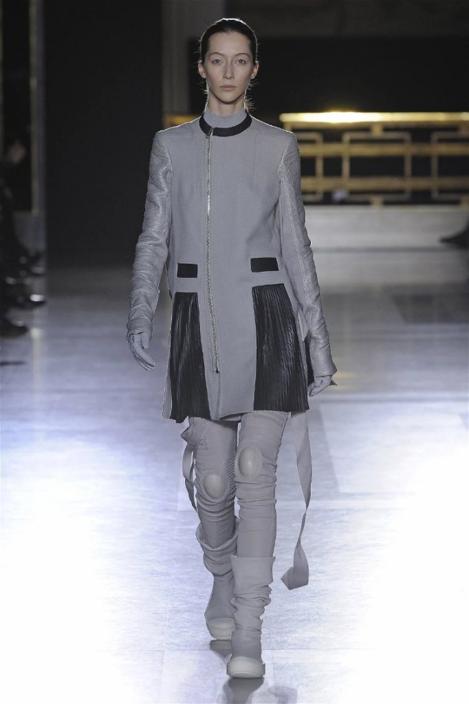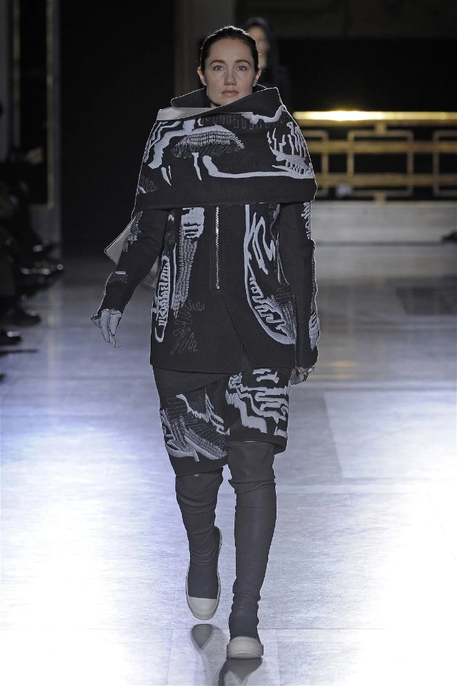 The clothes themselves embraced comfort and warmth—think cocooning capes, soft fabrics, and plush onesies. While Owens’ past shows have been known for their edginess, this collection offered something gentler, with a focus on love, protection, and communication. There was still an element of the warrior in the looks, with bold pieces like croc-printed shifts and motocross leather pants, but they were balanced by an overarching theme of family and unity. This collection is a testament to Owens’ ability to blend darkness with beauty,