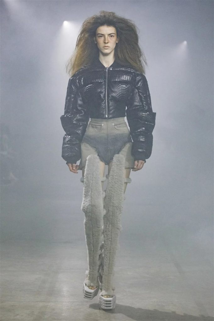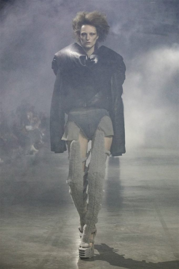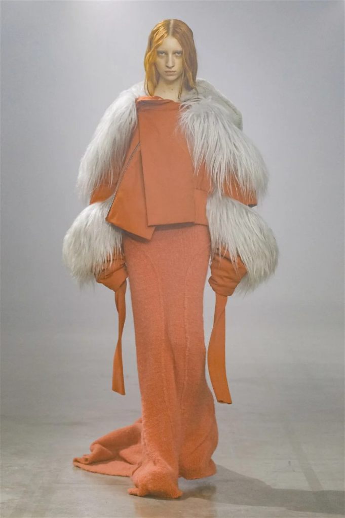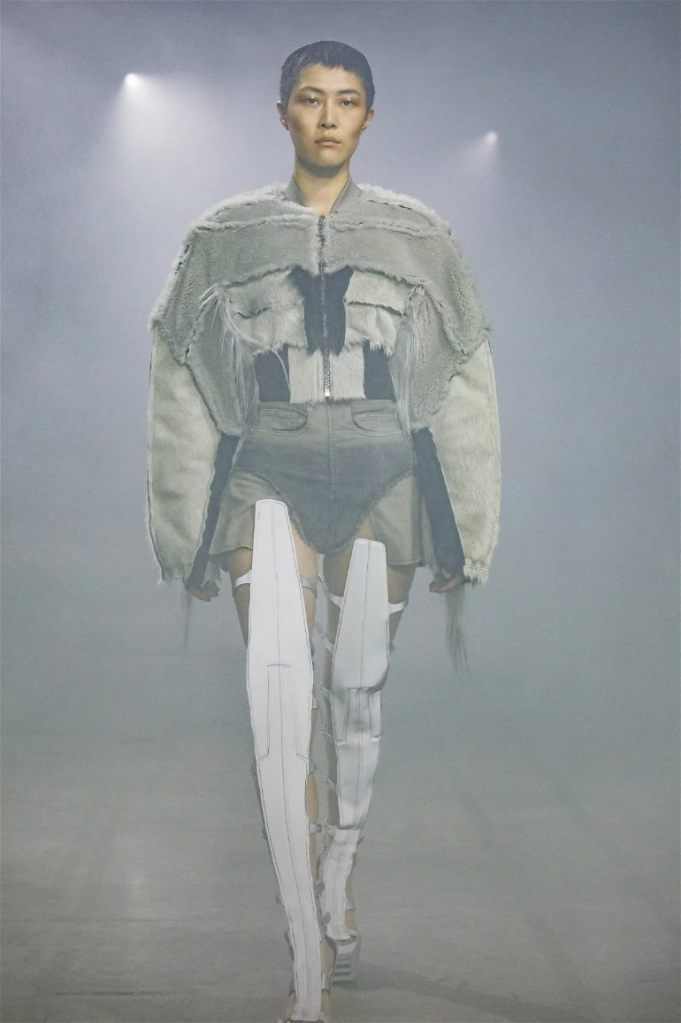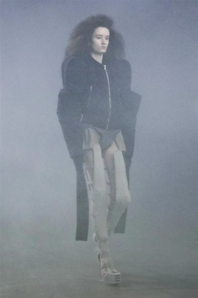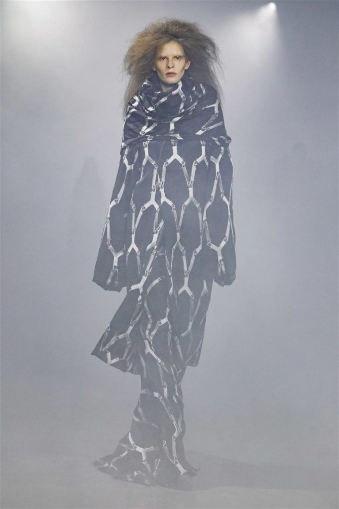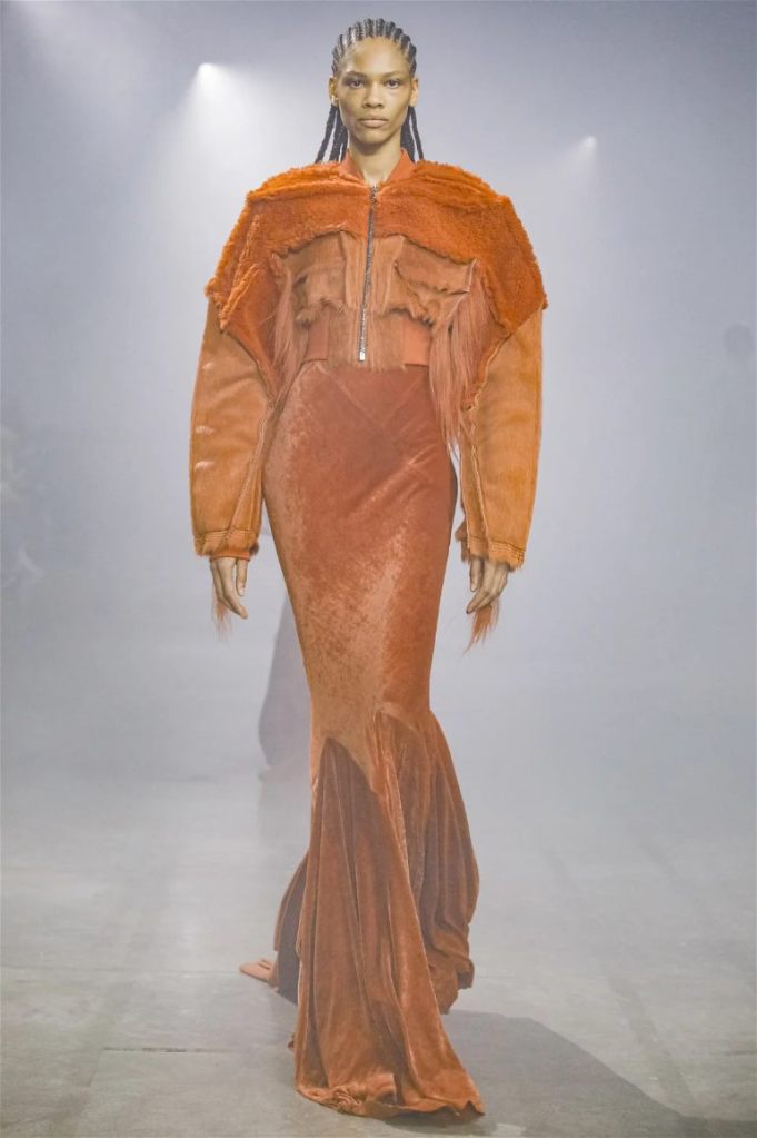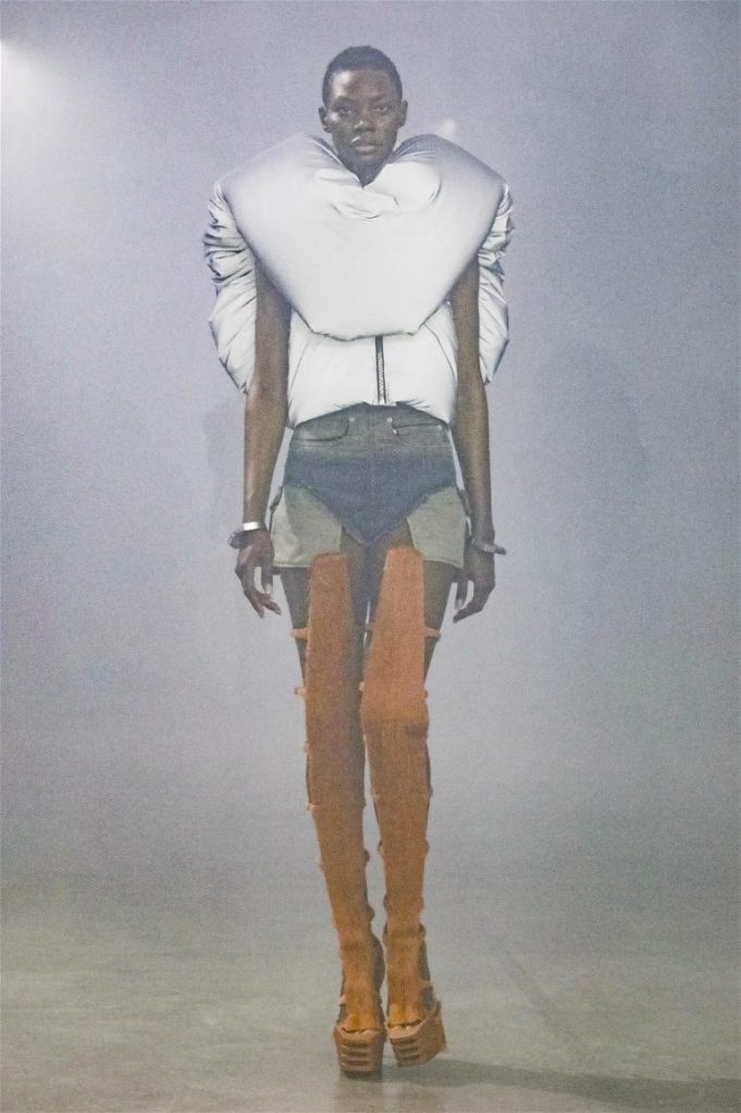 Goth gowns that were elegant, sequins that were not shiny, and colors were not black; a lot is happening in this collection. Anything can happen at Rick Owens something pretty cool did. Sculptural denim and puffer jackets were the biggest takeaway from this collection along with the bias-cut long skirts. The outerwear was simply magnificent; from dramatic capes to structured coats. The models were not just carrying fog machines but a reference to his catholic roots (thurible – an incense burner for religious services). The collection is a master class in restrained drama and glam.