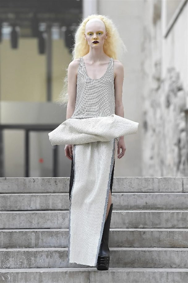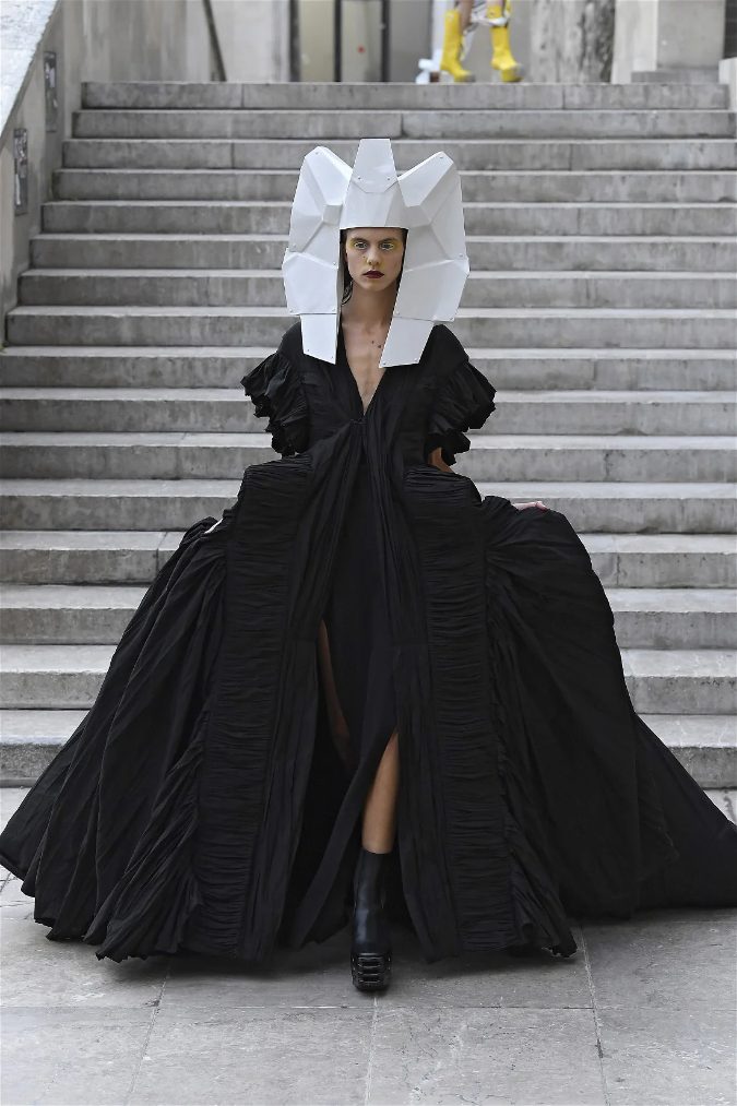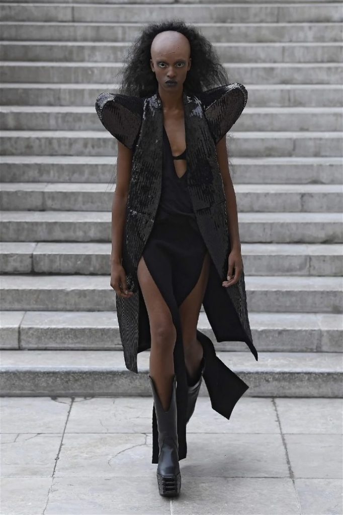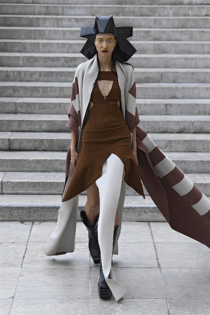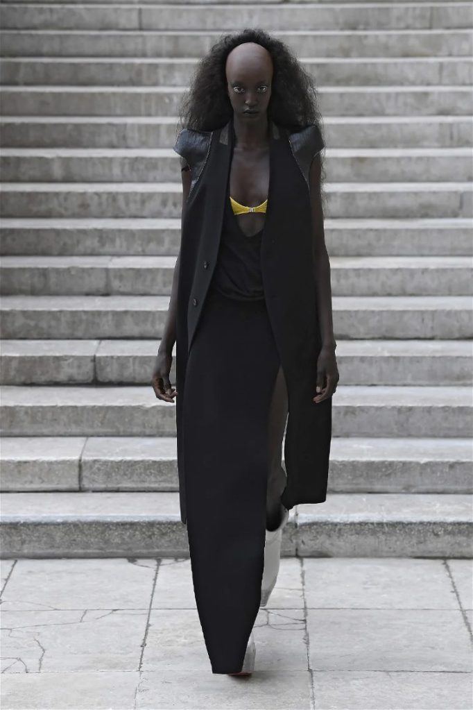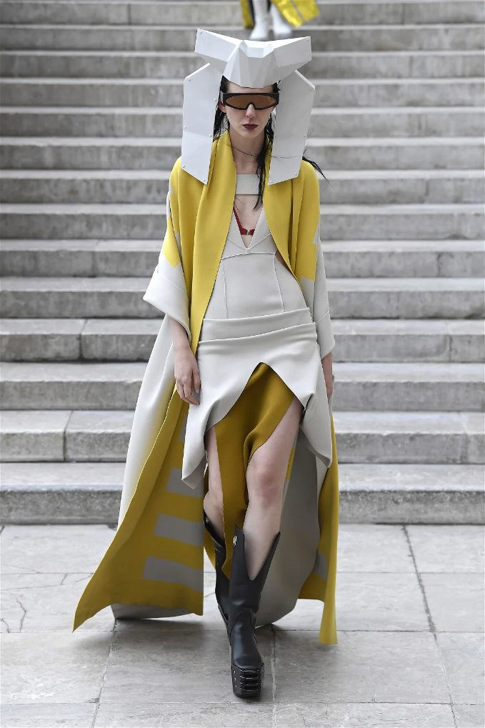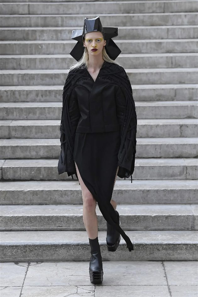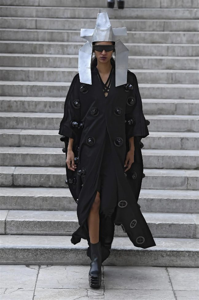 What stands out in this collection is how Owens plays with shapes and forms. His pieces often defy traditional fashion norms, embracing a sculptural quality that captivates the eye. The garments are not just clothing; they are statements that challenge our perceptions of beauty and fashion. This season, Owens continued to explore his signature aesthetic of combining minimalism with theatrical flair, resulting in outfits that feel both avant-garde and wearable.