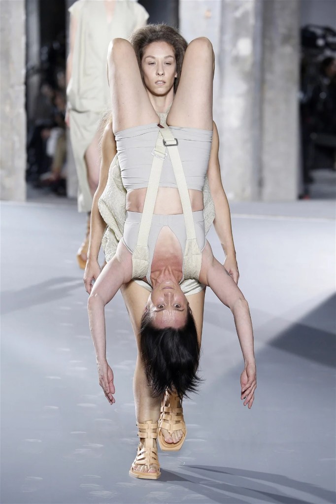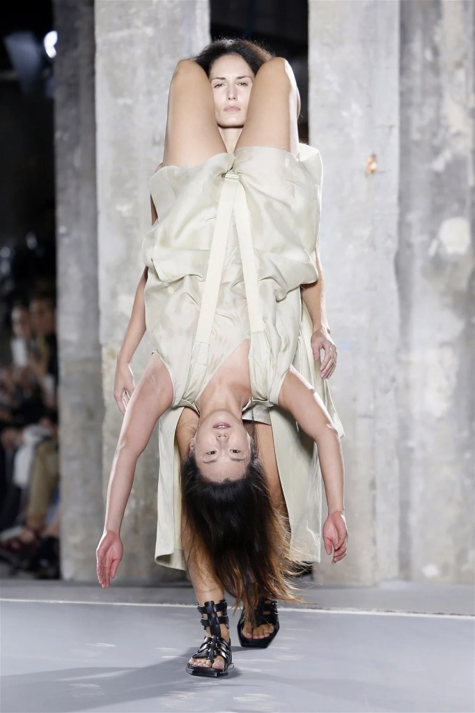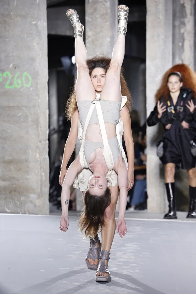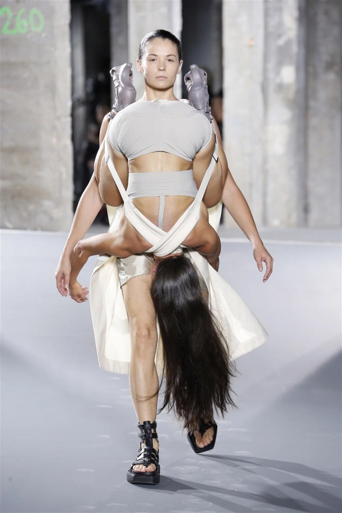 In the brutalist halls of Paris’s Palais de Tokyo, Owens staged a spectacle where gymnasts carried each other down the runway. Some hung upside down, others were cradled or strapped on like backpacks. This wasn’t mere theatrics; it was a poignant metaphor for the unseen labor women often perform—physically, emotionally, and socially. Owens described it as a tribute to “nourishment, sisterhood, motherhood, and regeneration.” Through these physical gestures, he explored the weight women bear and their incredible resilience.