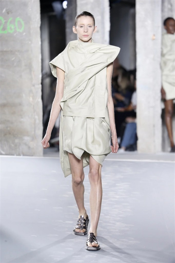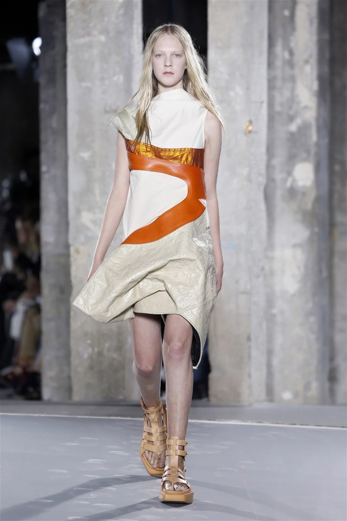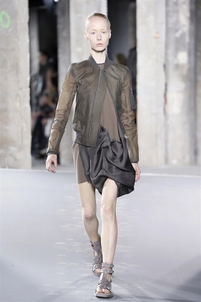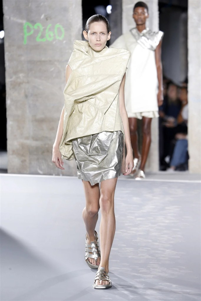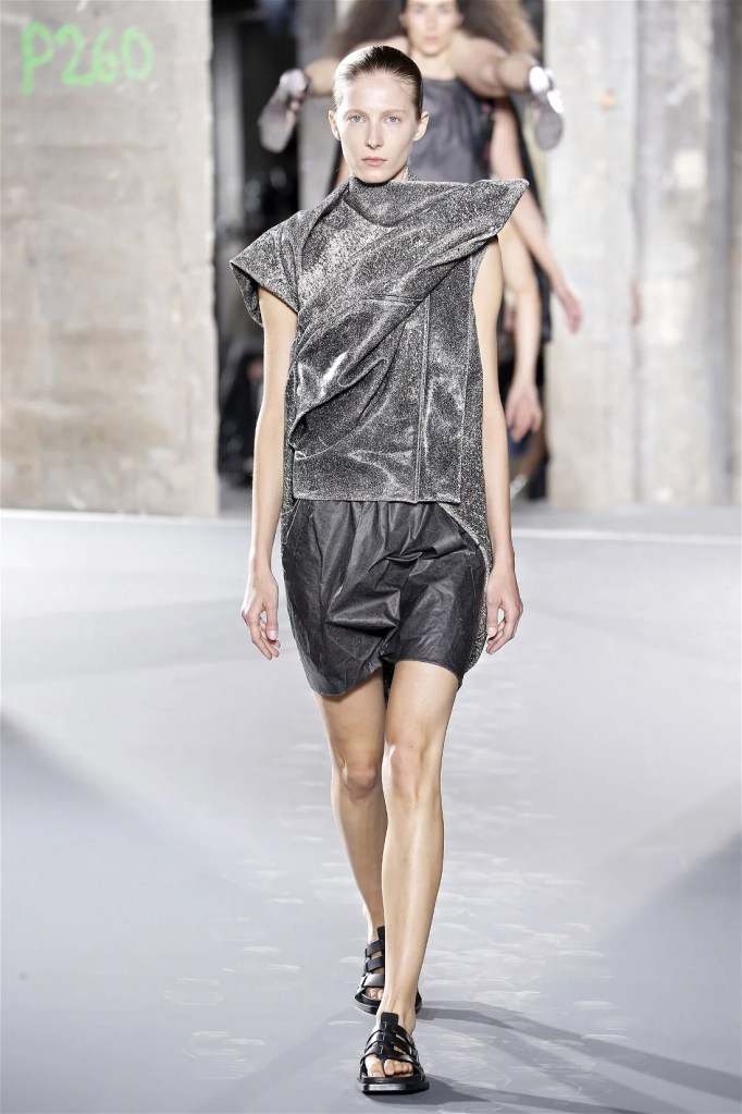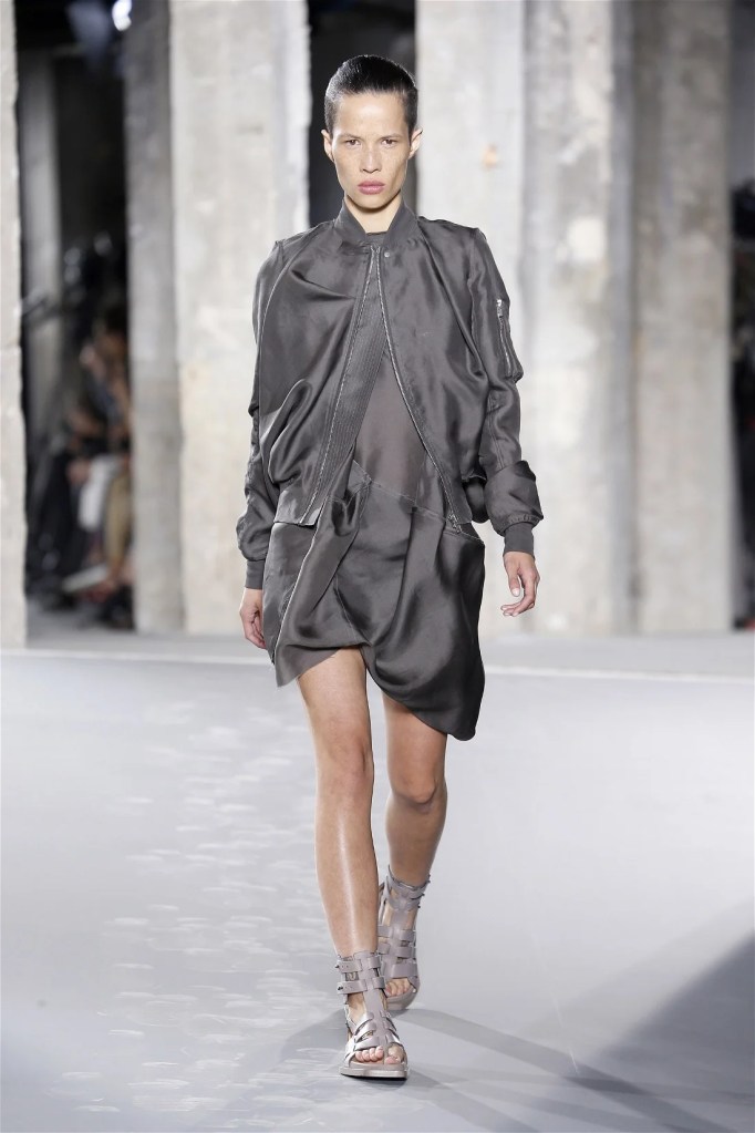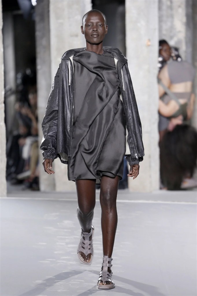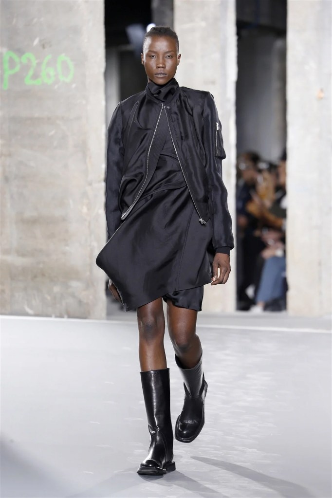 The clothing mirrored this theme. Owens played with exaggerated silhouettes—think voluminous shoulders, flowing organza, and protrusions crafted from metallic leather. These weren’t just bold fashion statements; they symbolized transformation and adaptability. A bomber jacket melting into a cascade of fabric or harness-integrated jackets spoke to the interplay of structure and freedom. Each piece told a story of strength with unsettling elegance, a balance Owens masters so well.