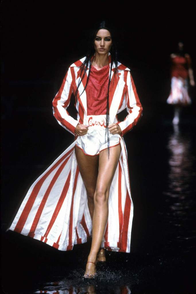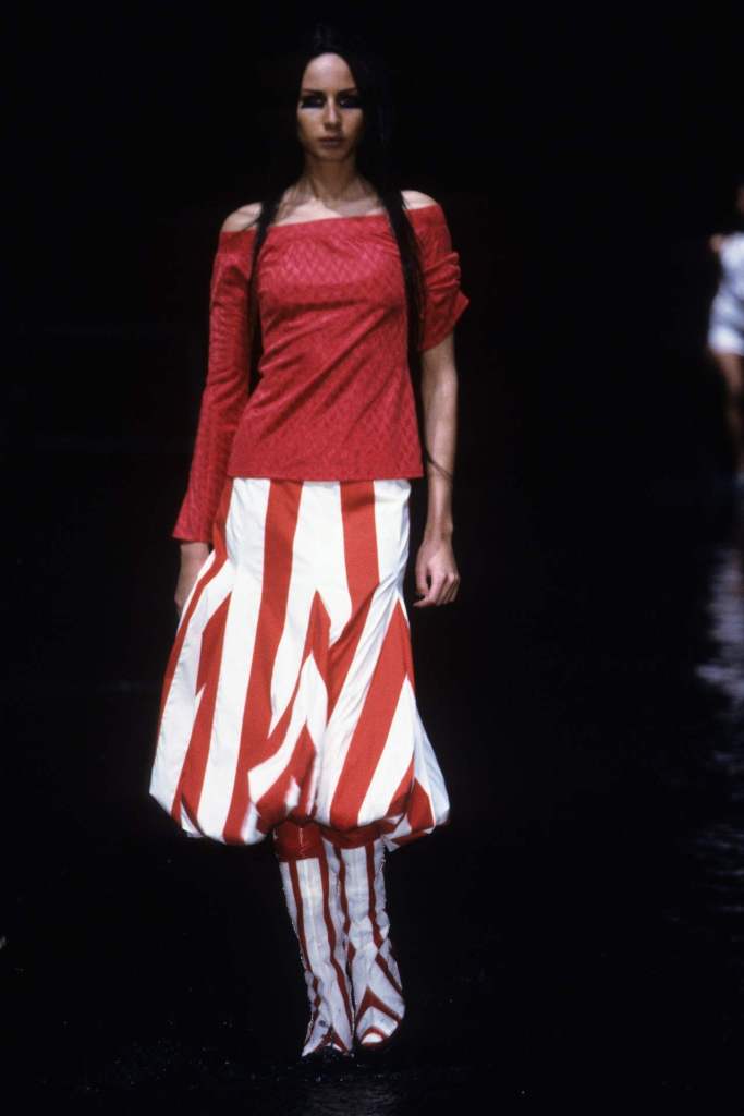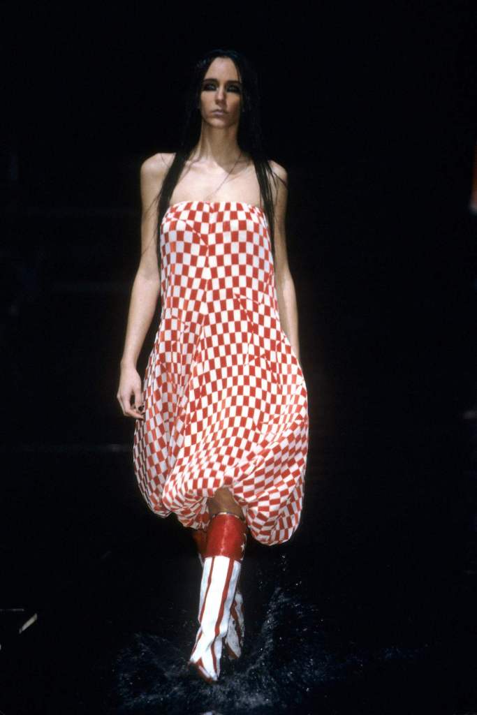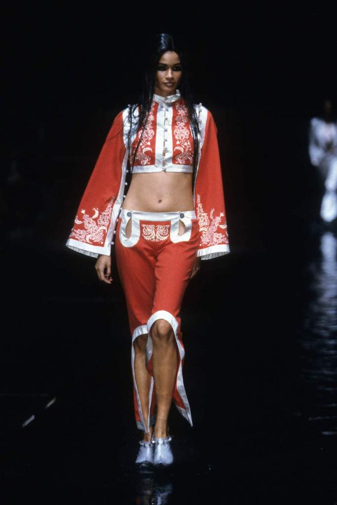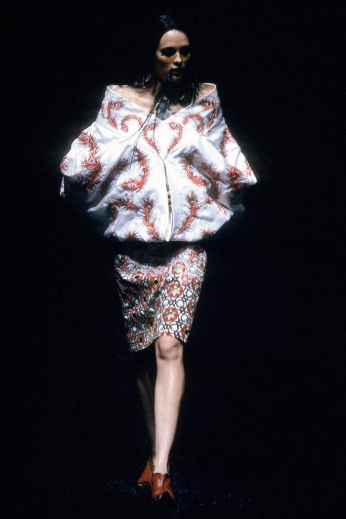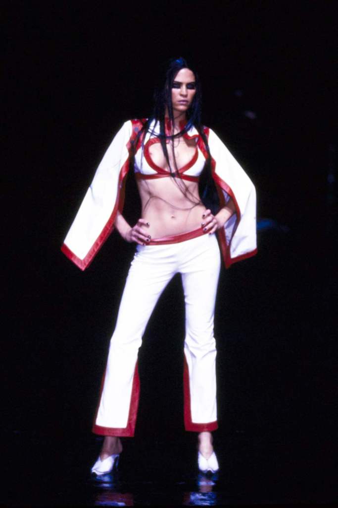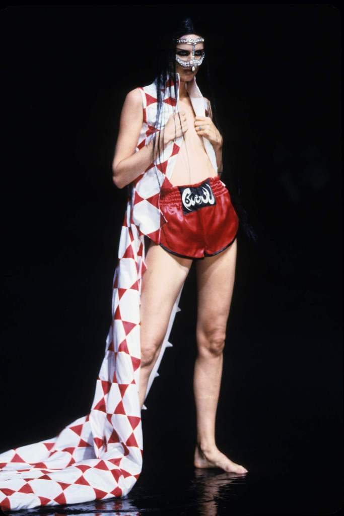 McQueen’s designs oscillated between concealing and revealing the body, a sharp contrast that highlighted cultural tensions. Even McQueen’s cheeky exit, where he revealed American flag boxer shorts, hinted at Western dominance and its complex relationship with the East.