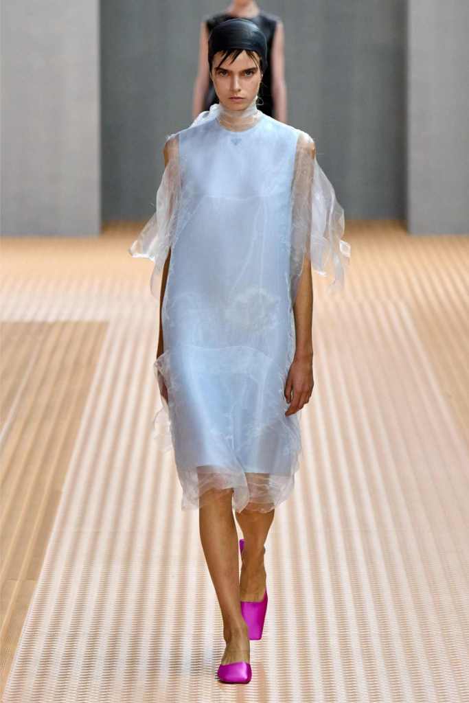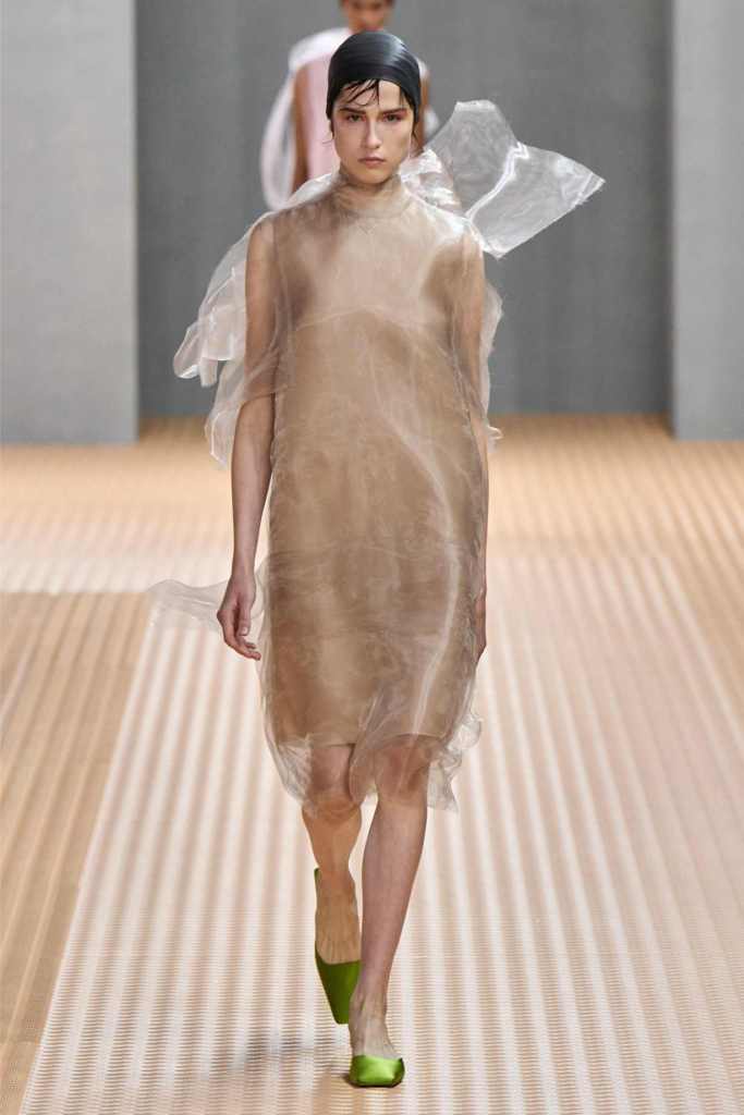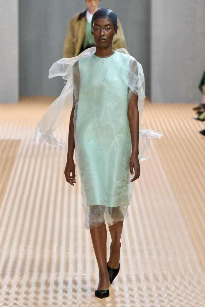 Miuccia Prada and Raf Simons took us on a journey through clashing materials and unexpected silhouettes. The runway was set with peachy-pink mesh steel, with slime dripping down the middle—a striking visual, but not the main story. Both designers emphasized that this season was all about showcasing the work behind the clothes, rather than just big concepts.