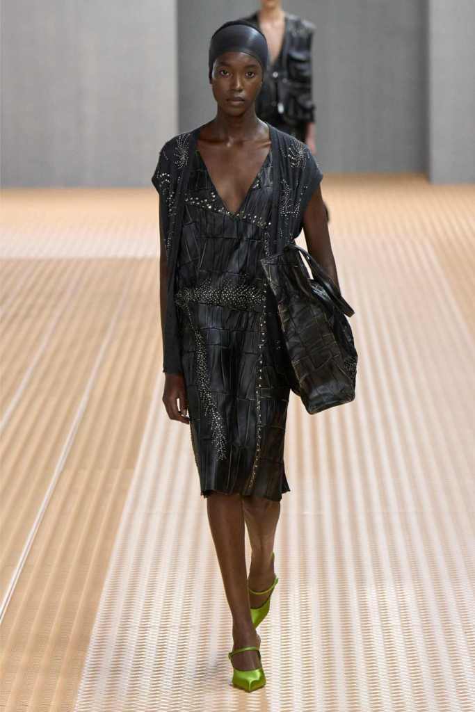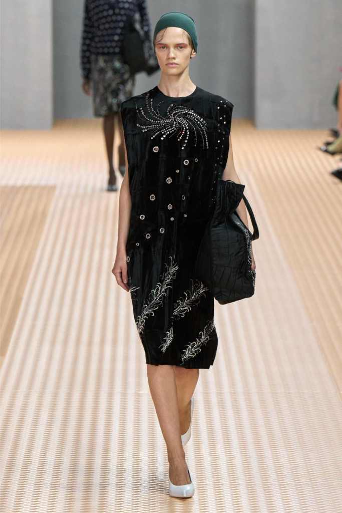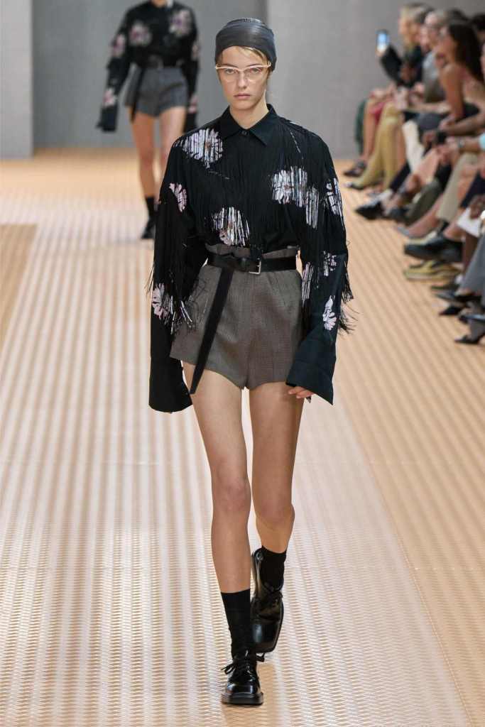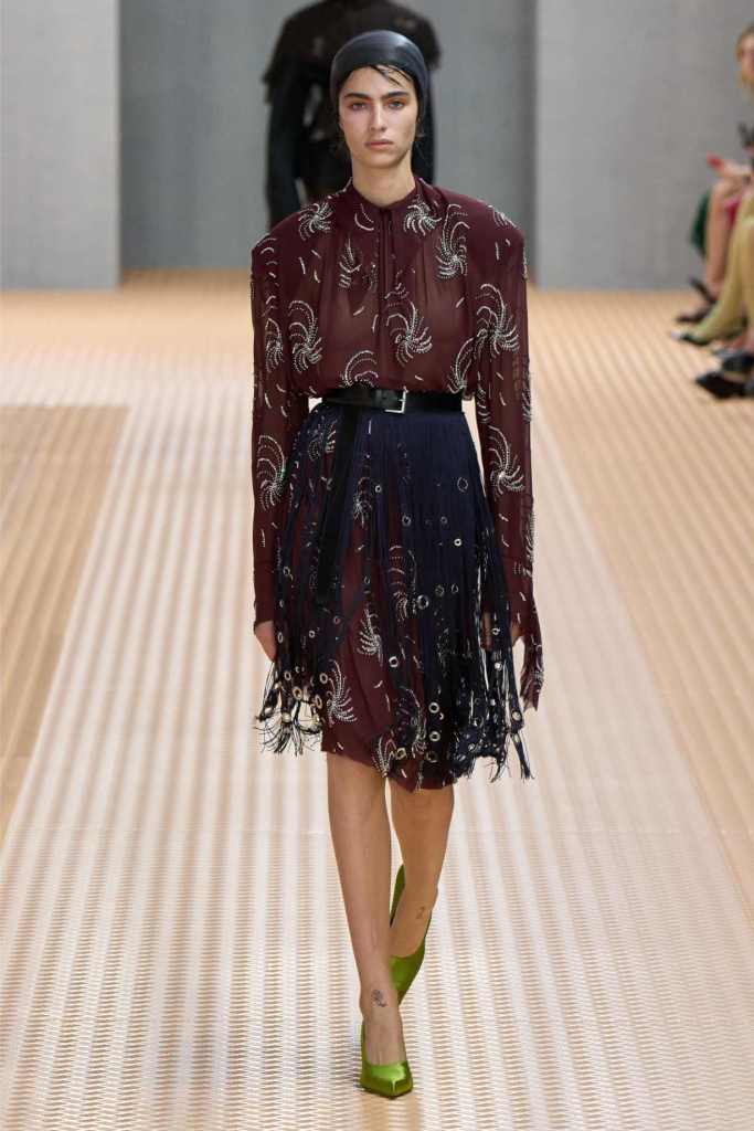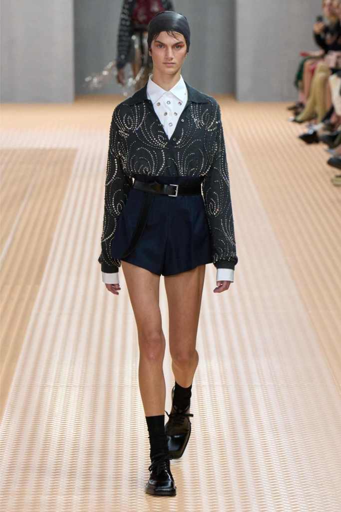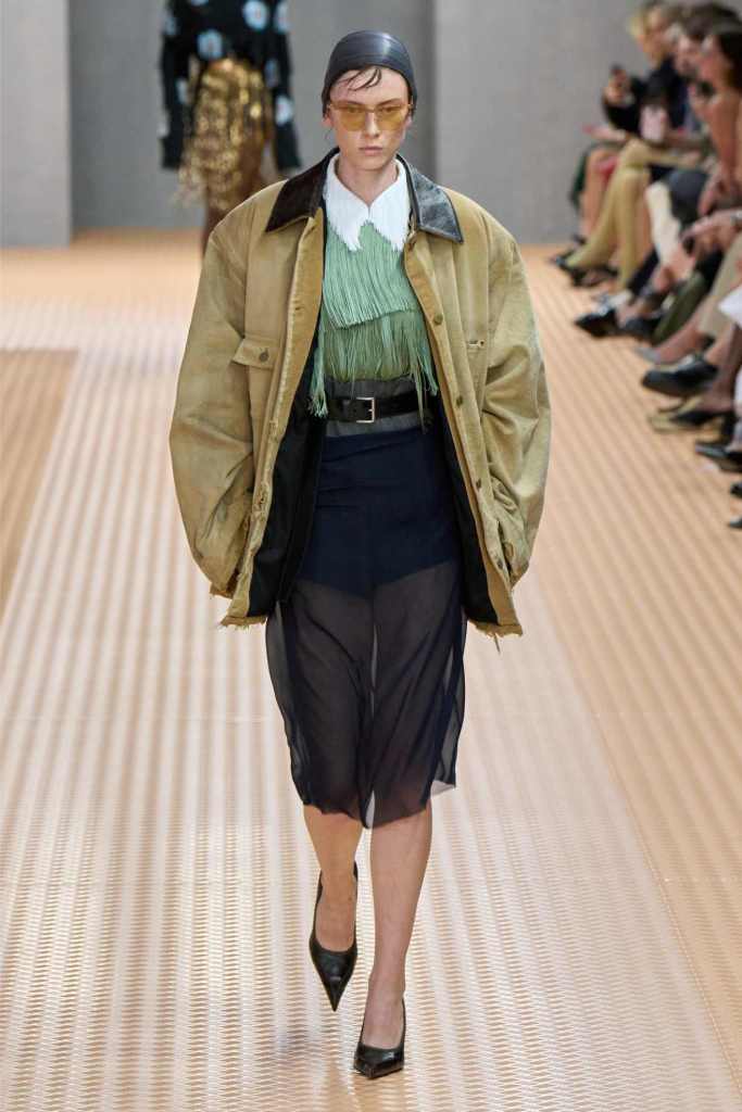 There was a sense of nostalgia in the air, with barn jackets layered over flapper-inspired dresses and bags featuring hand-carved mythological clasps designed by Miuccia’s grandfather. The blend of the old and the new felt like a celebration of Prada’s rich history while also looking forward.